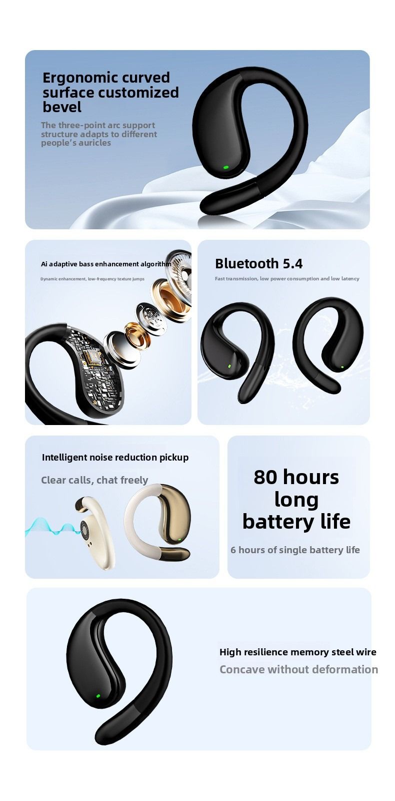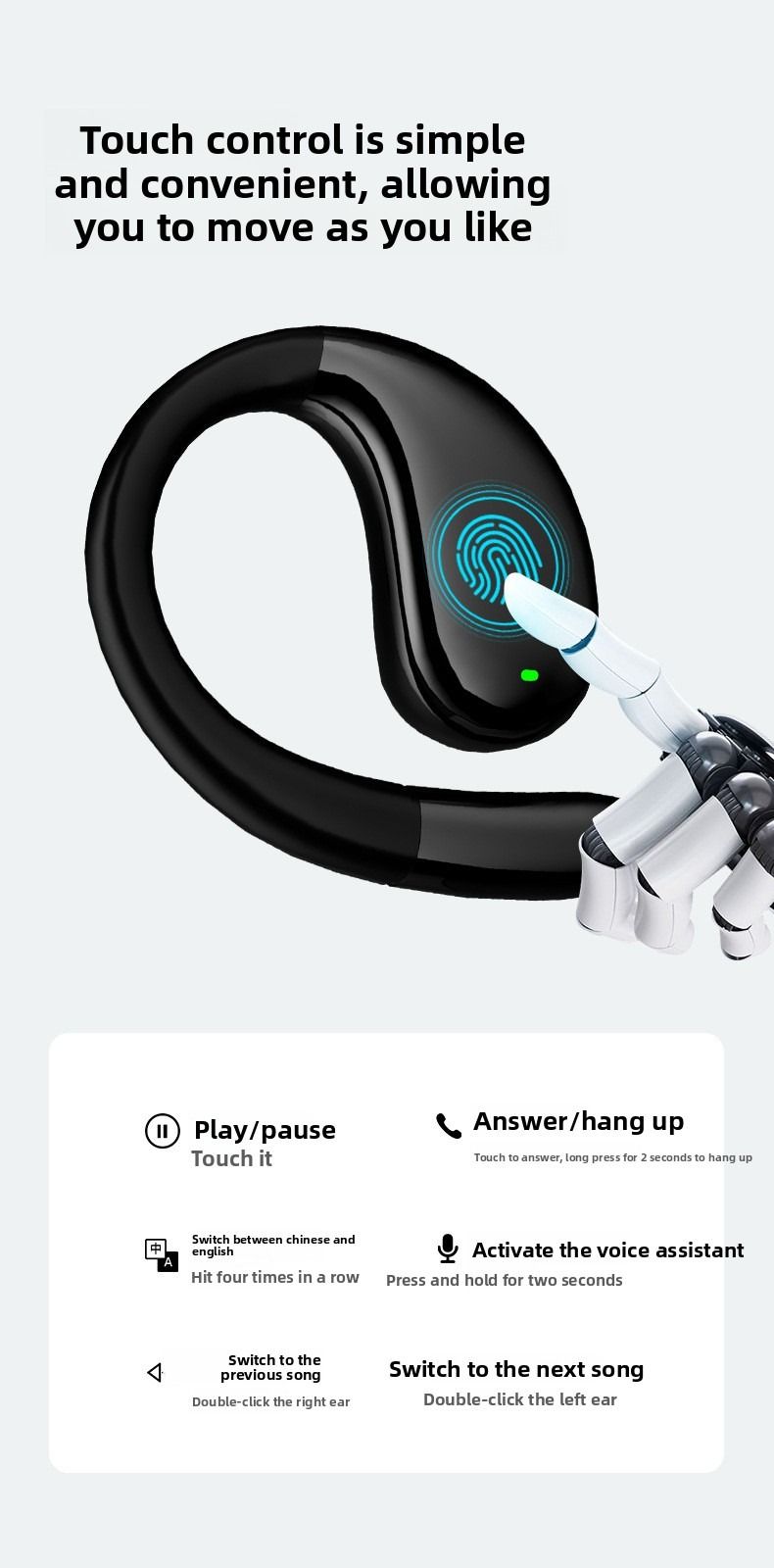 2026 New Arrival Ear Hook Non-in-ear Wireless Sports Headphones, Custom AI Smart Translation Bluetooth Earphones