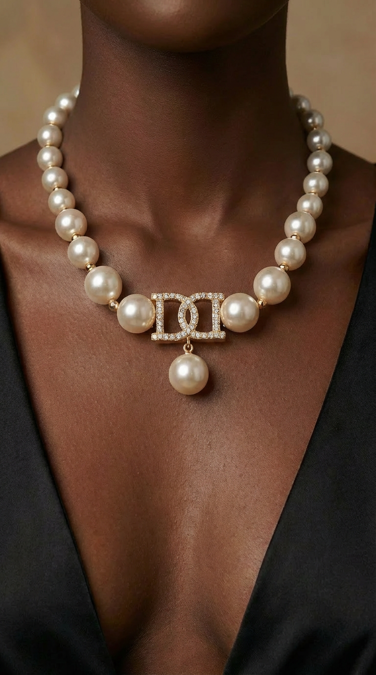 高级感情人节礼物双D珍珠项链锁骨链复古轻奢