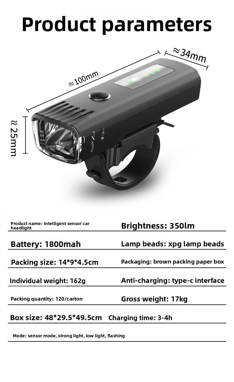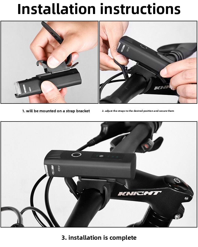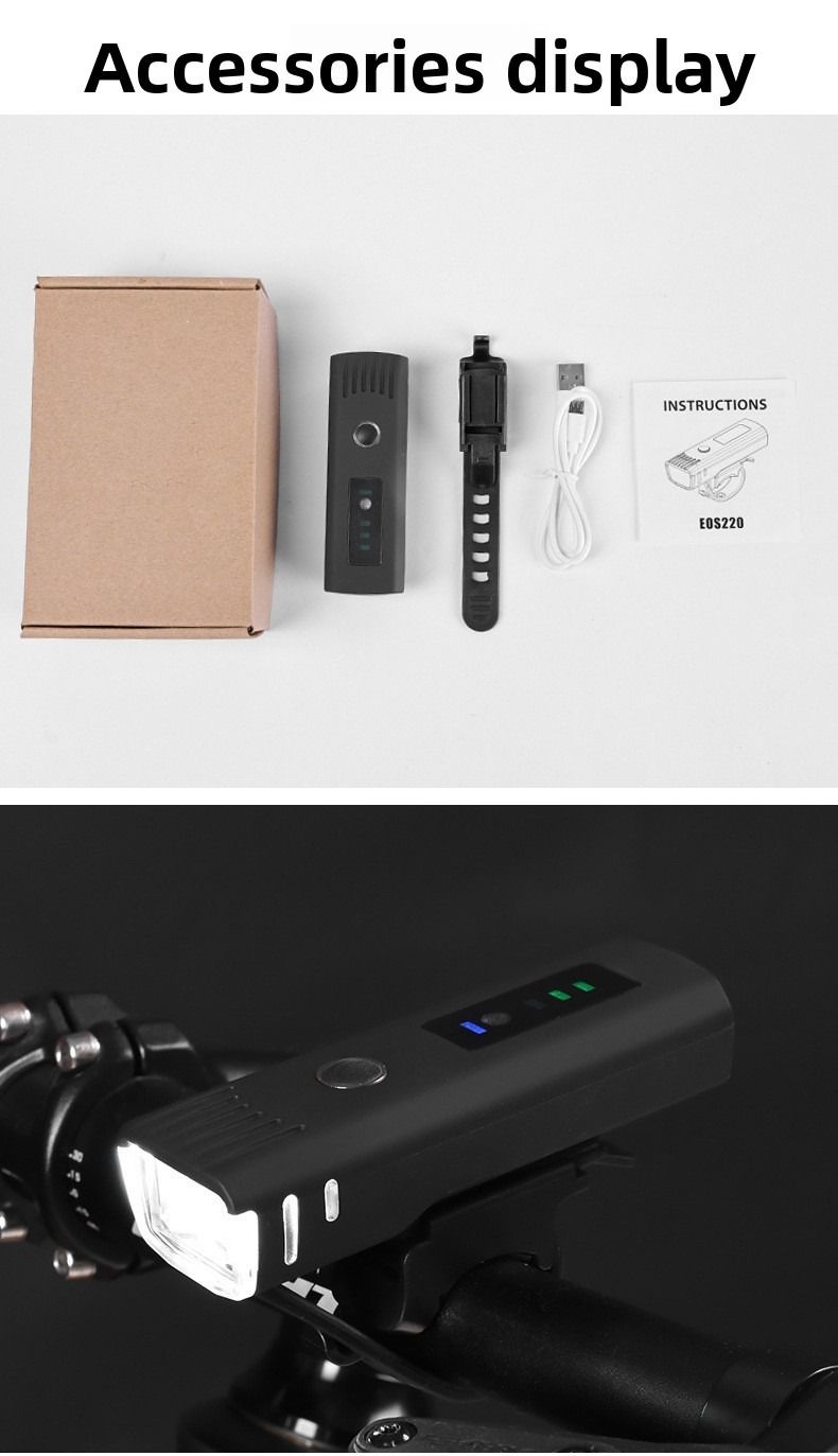 Bicycle lights, outdoor mountain bike headlights, night riding USB rechargeable cycling gear, LED flashlights