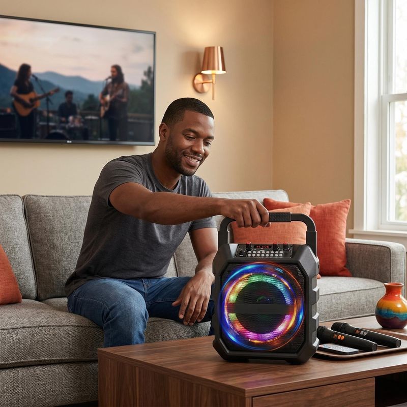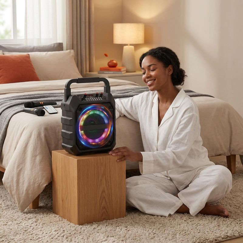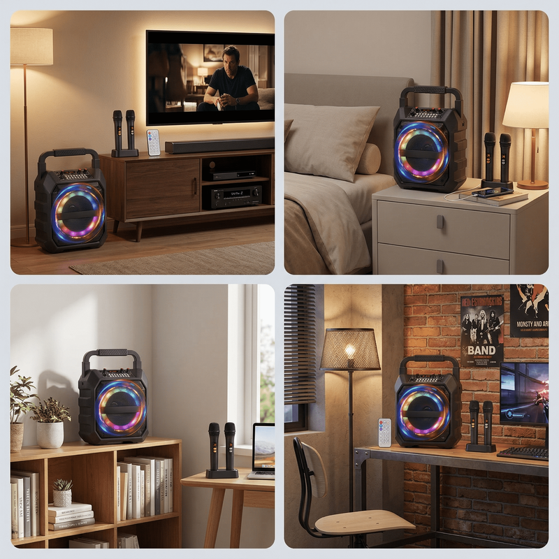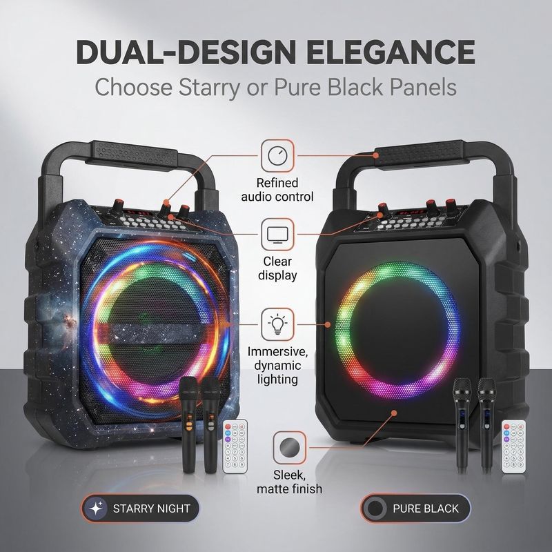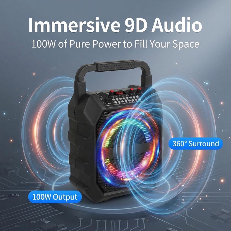 Outdoor speaker, karaoke microphone, all-in-one speaker and microphone, party and home wireless Bluetooth portable speaker.