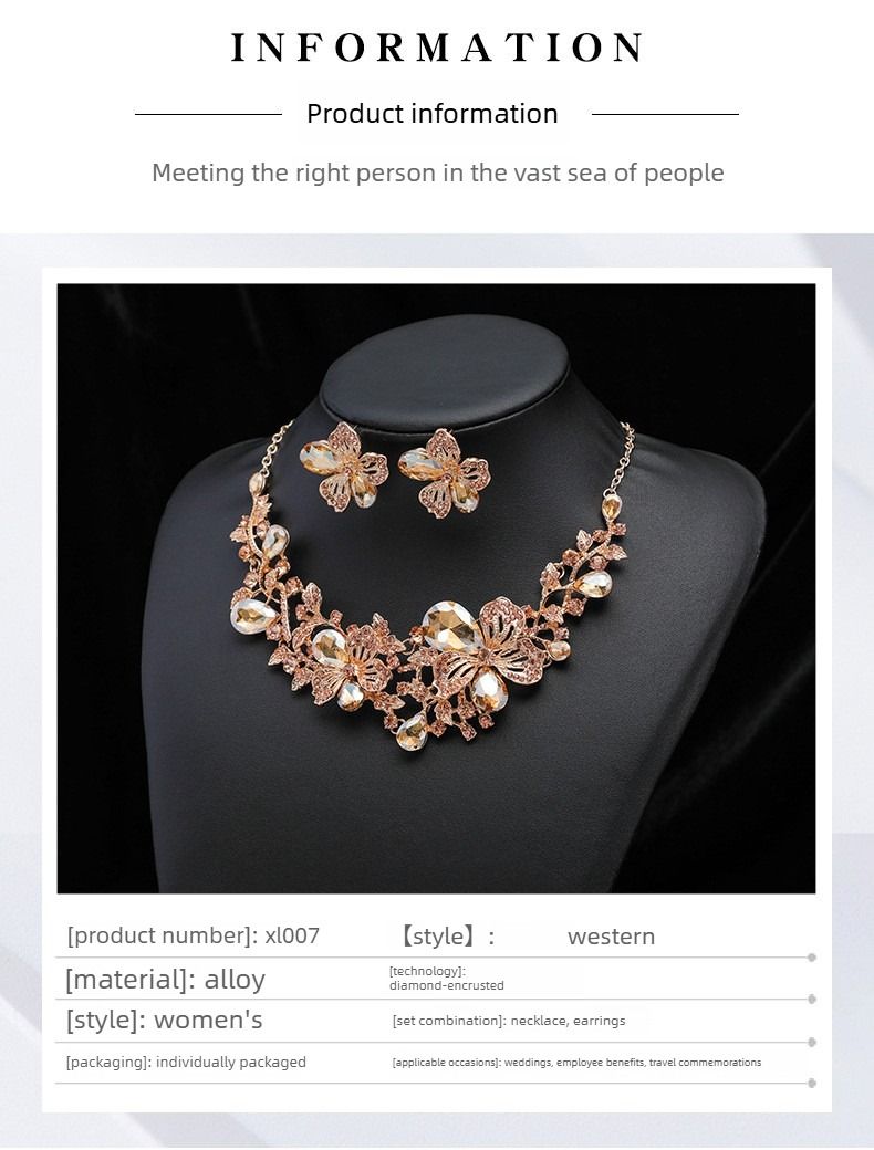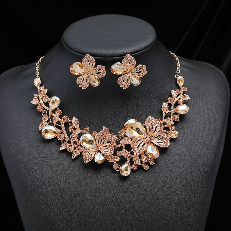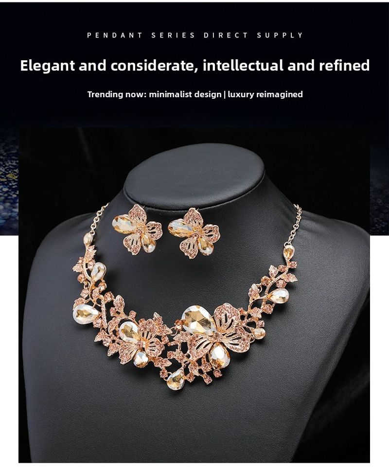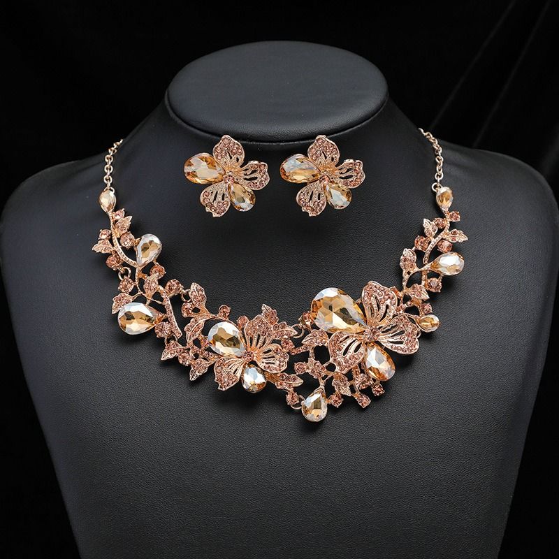 Brown earrings with gold chain and flower necklace set, women's fashion accessories