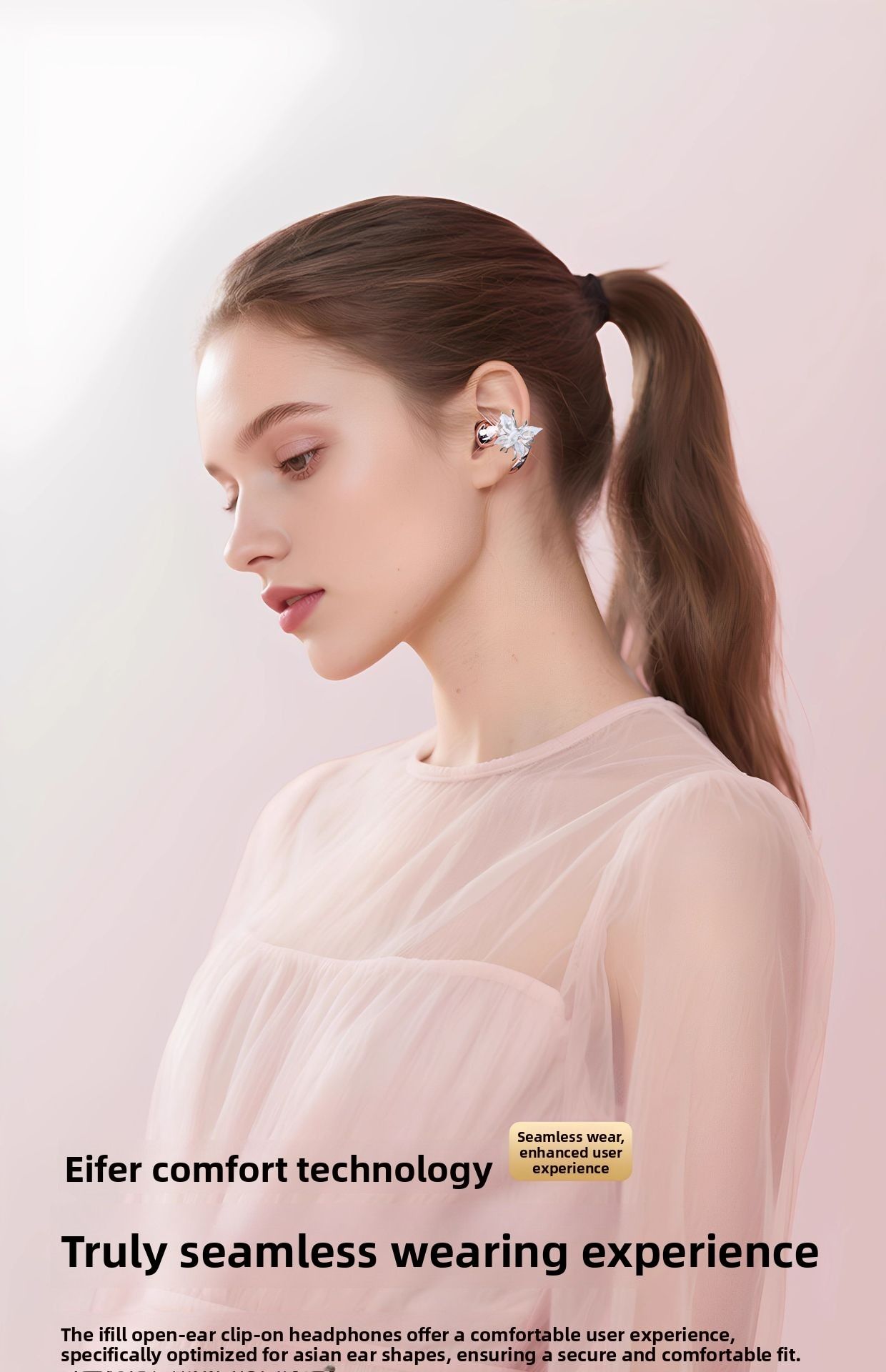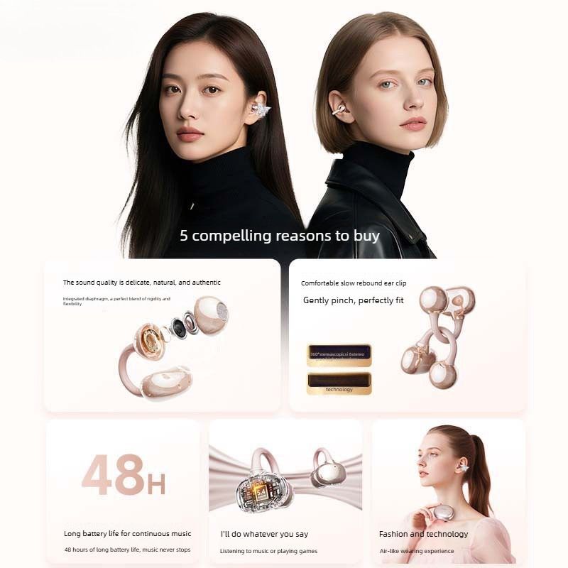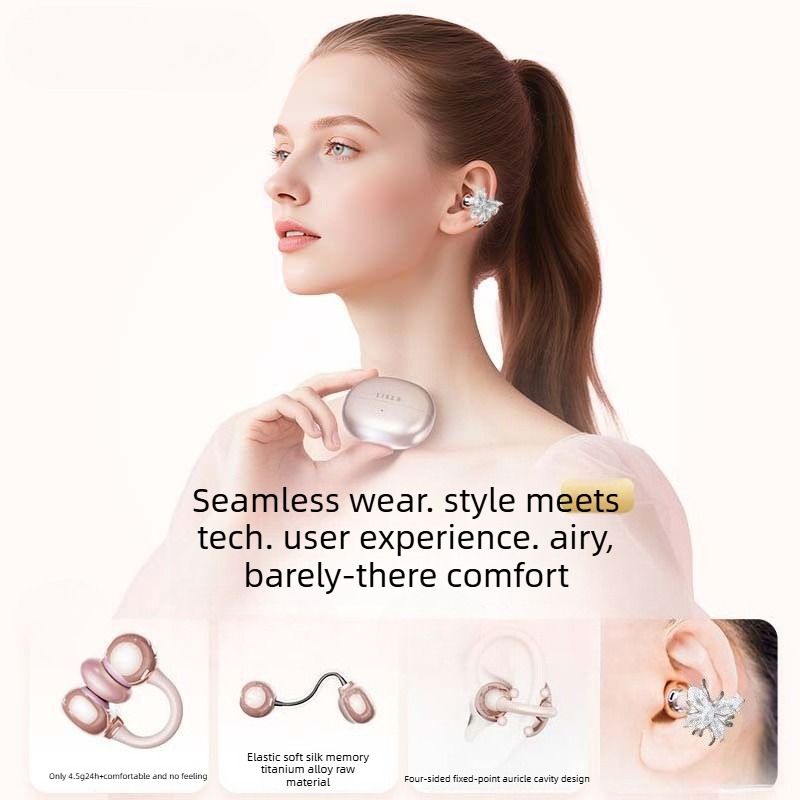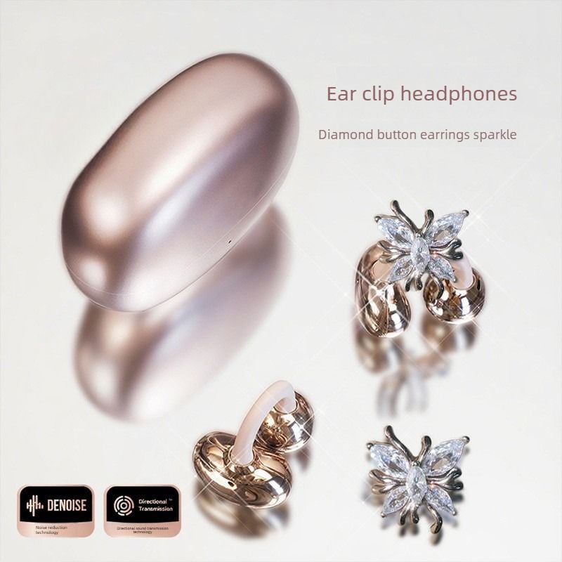 Butterfly Earring Bluetooth Clip-on Wireless Sports Earphones - Stylish Design and Long Battery Life