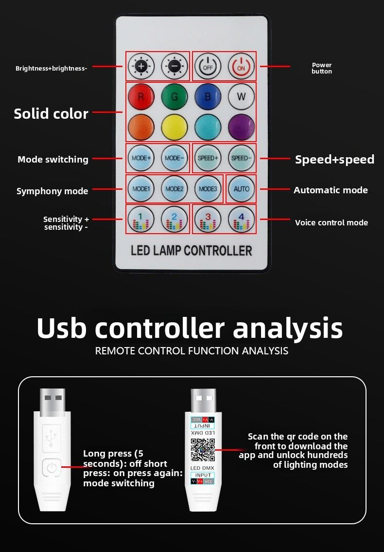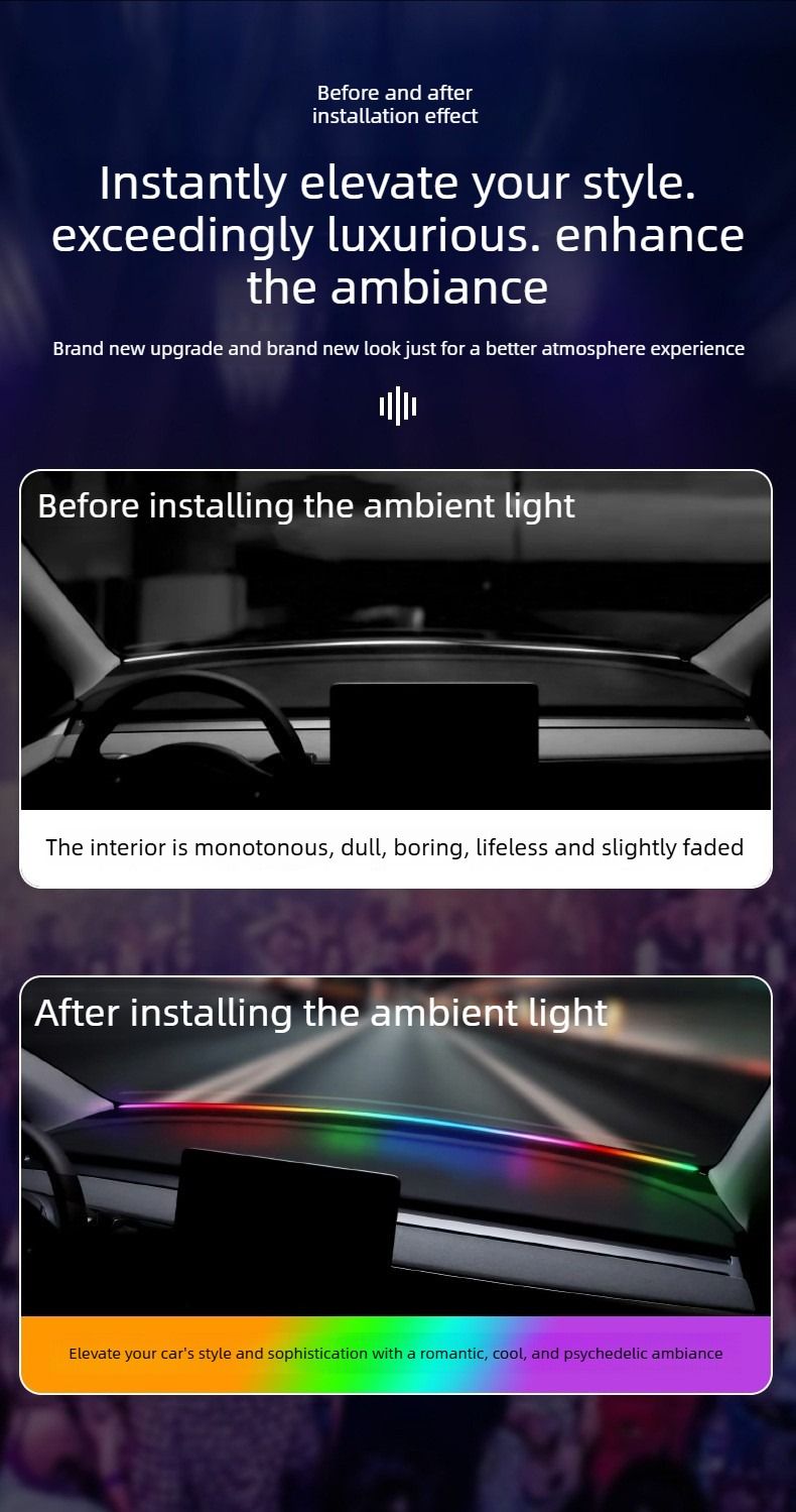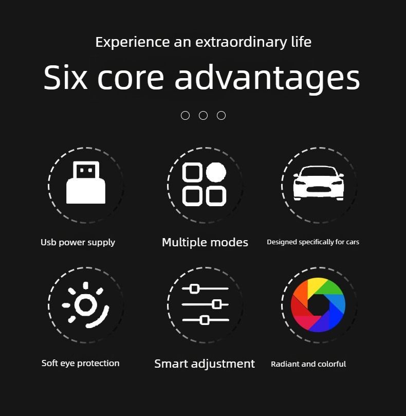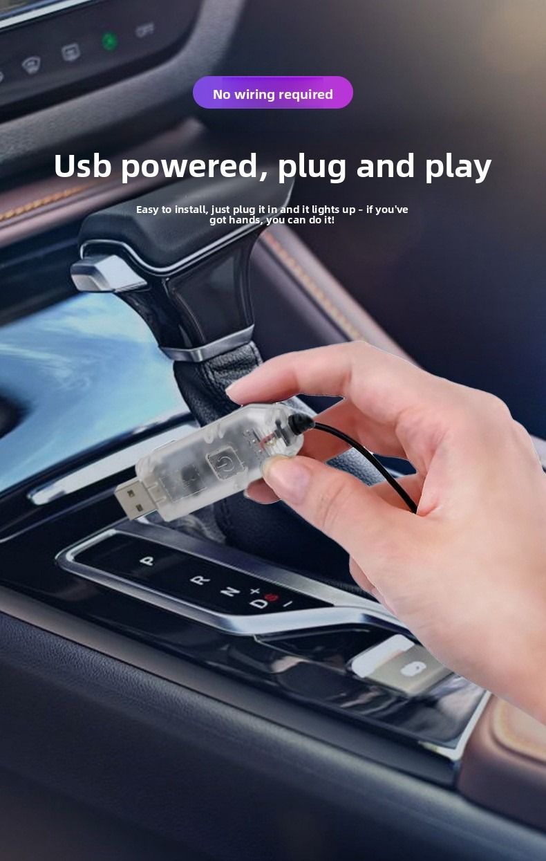 Car LED windshield ambient lighting modification, interior center console ambient lighting, universal USB port decorative ambient lighting