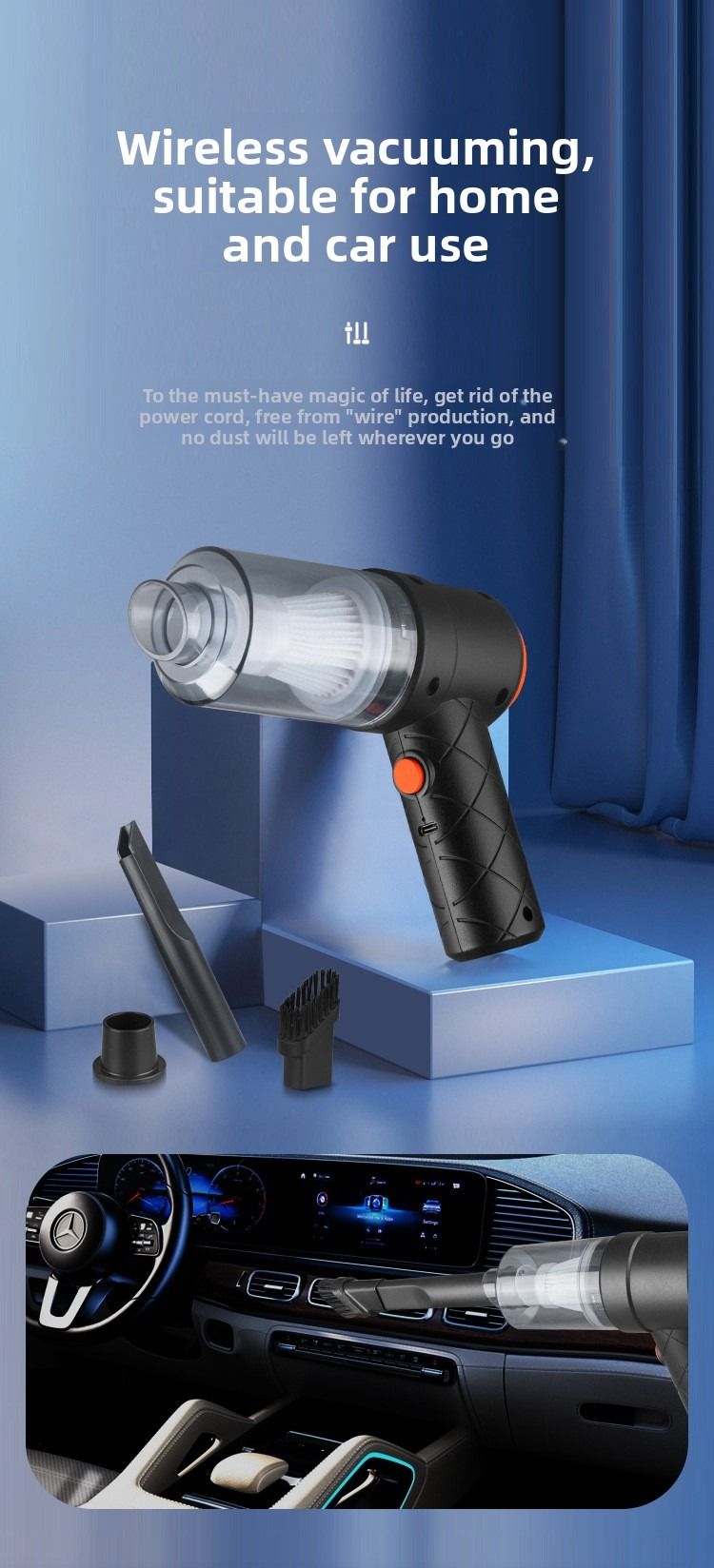 Car vacuum cleaner, cordless car vacuum cleaner, high-power blower, 2-in-1 vacuum and blower, pet hair remover!