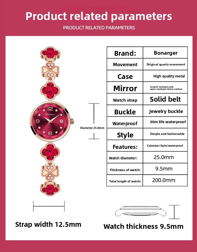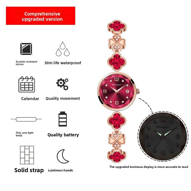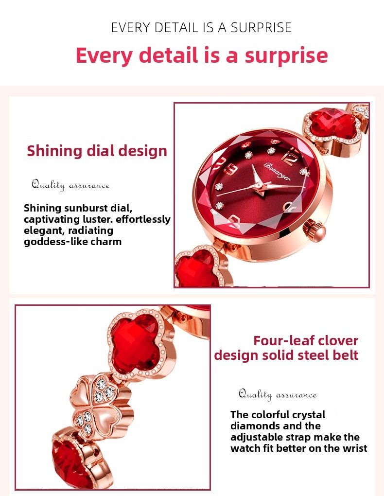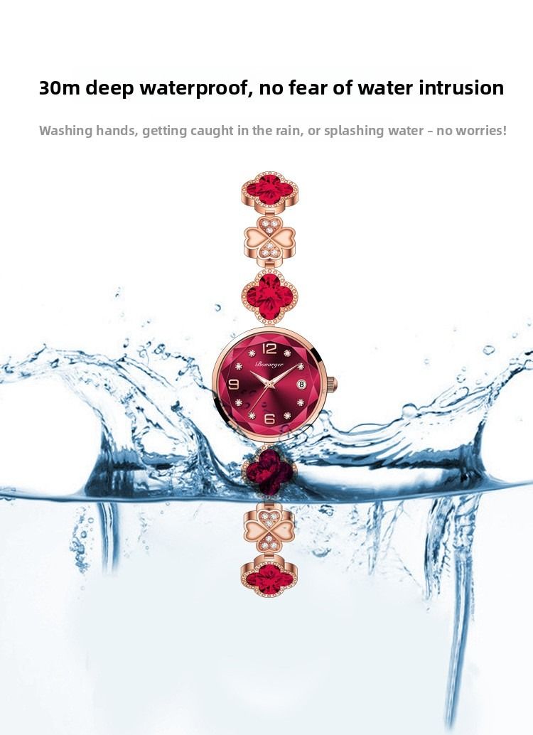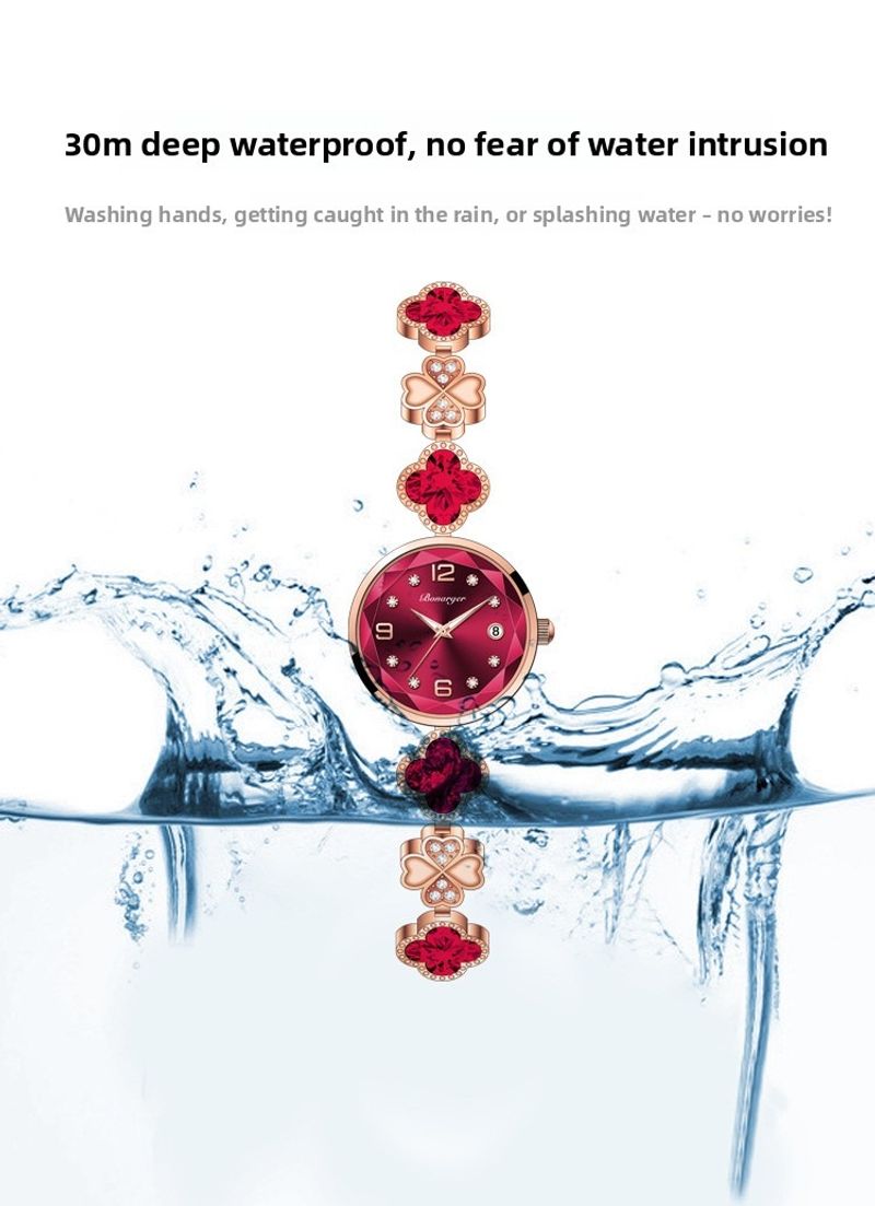 Four-leaf clover waterproof women's watch bracelet, fashionable new style, niche light luxury quartz women's watch.