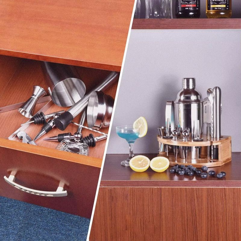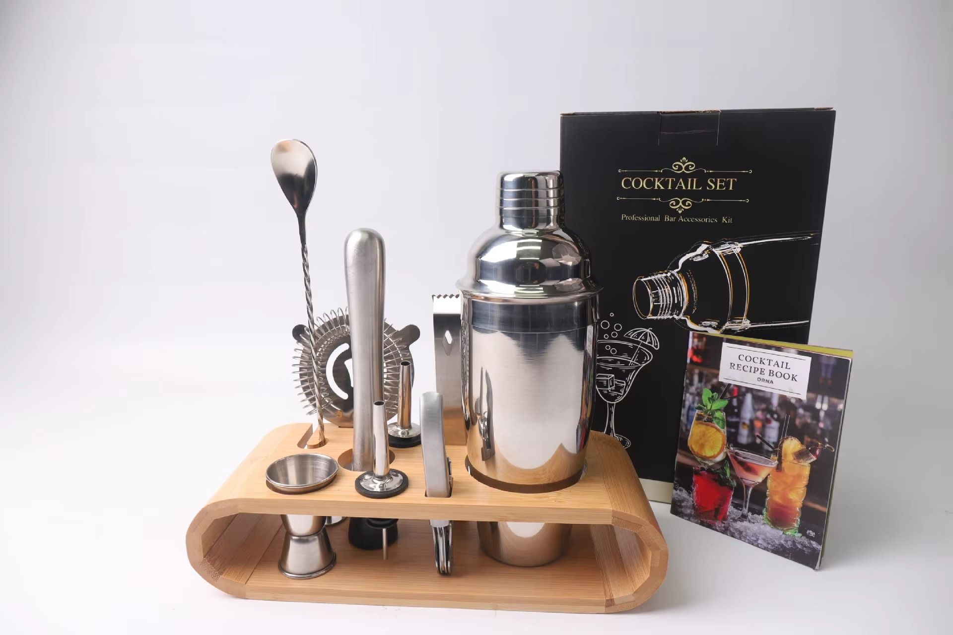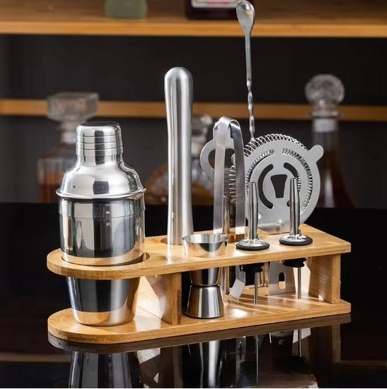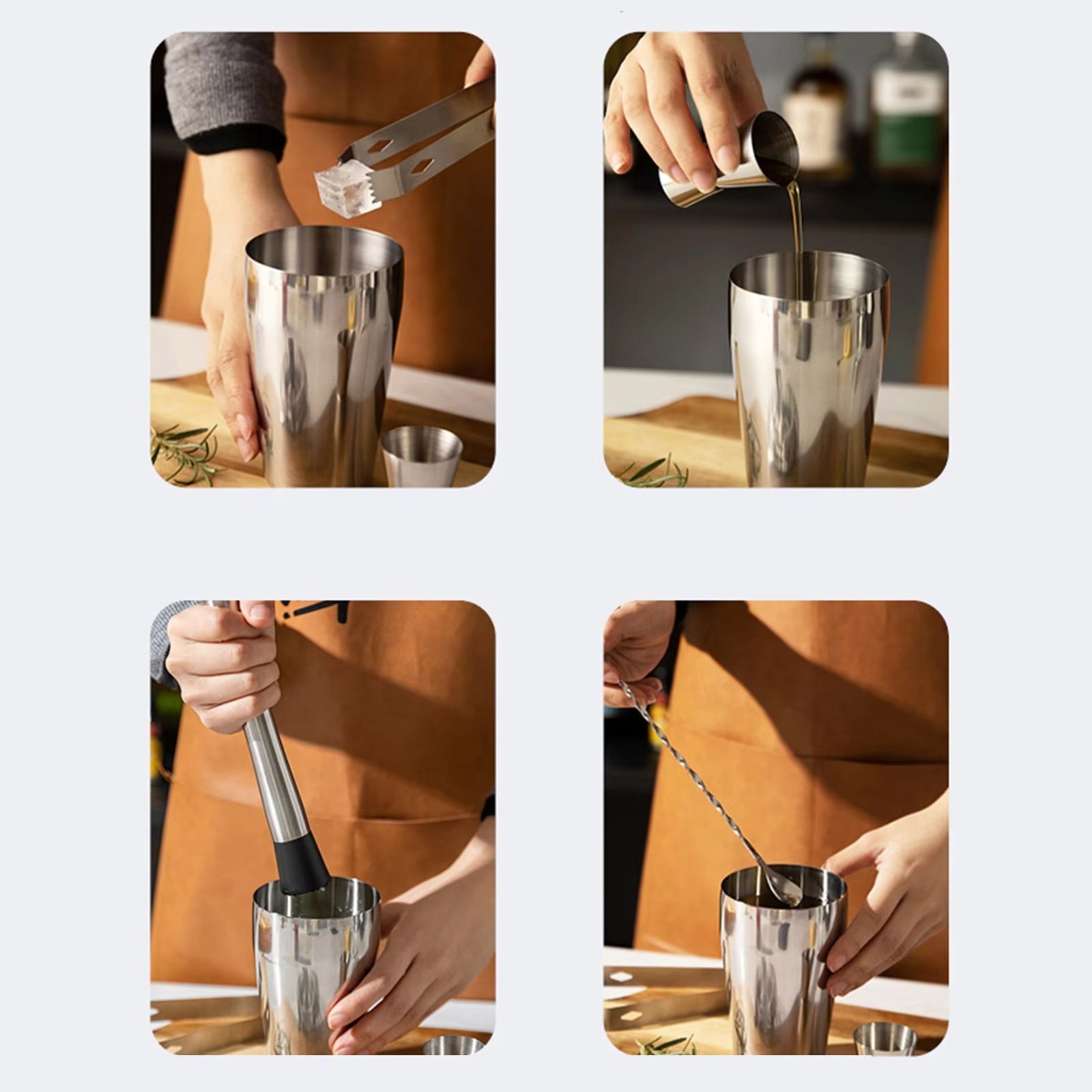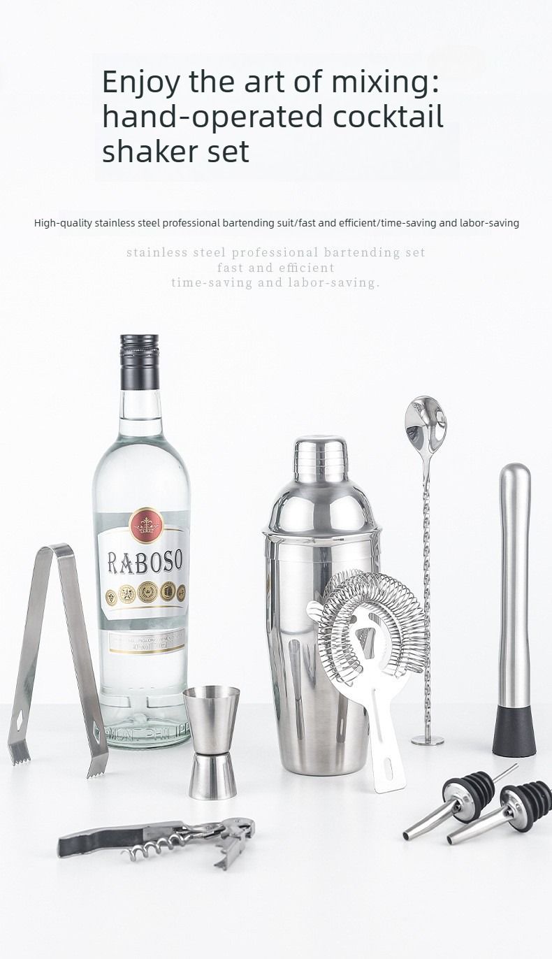 Bartending tool set, 10-piece stainless steel cocktail bartender set, cocktail glasses, wine glasses and bartenders.