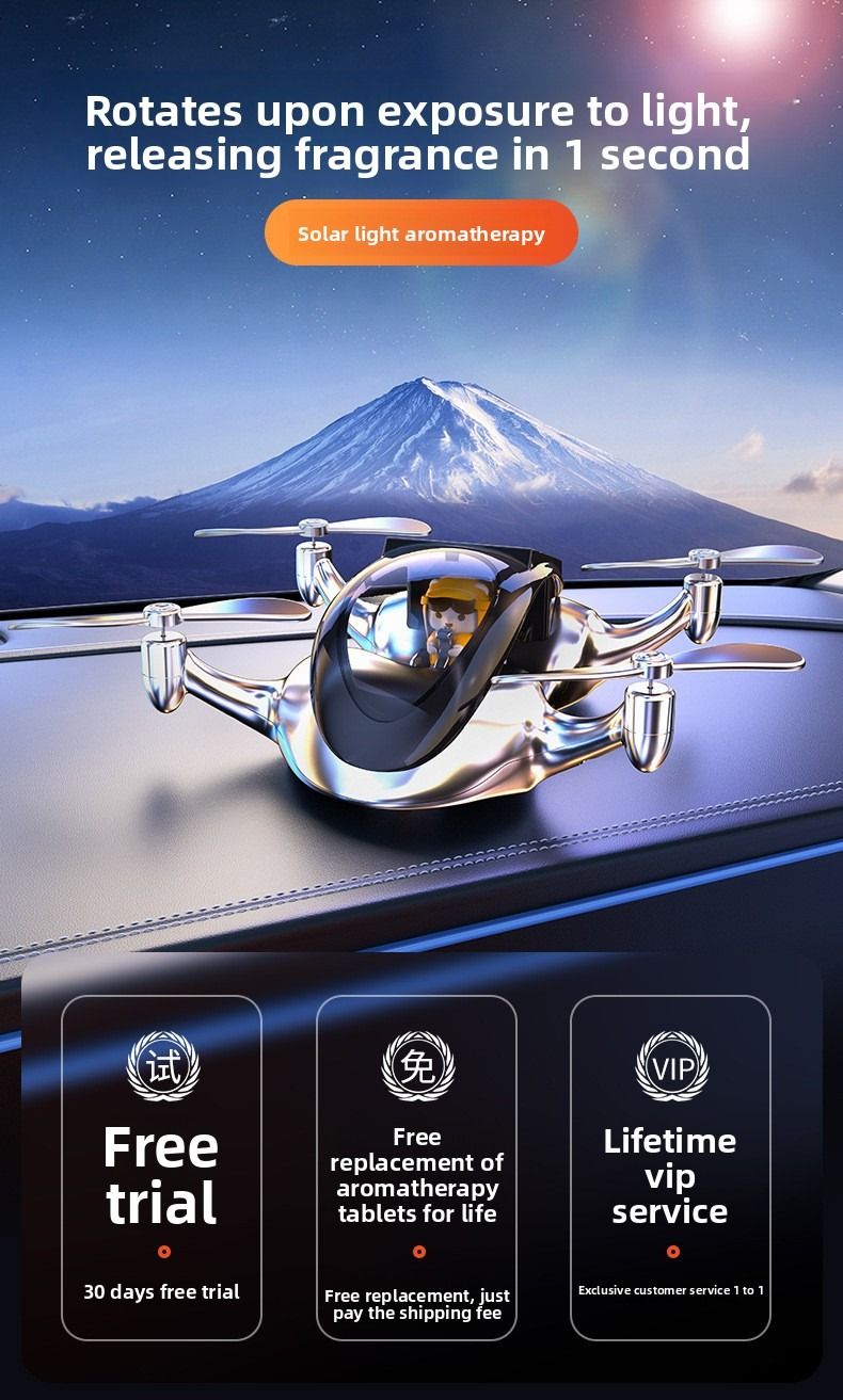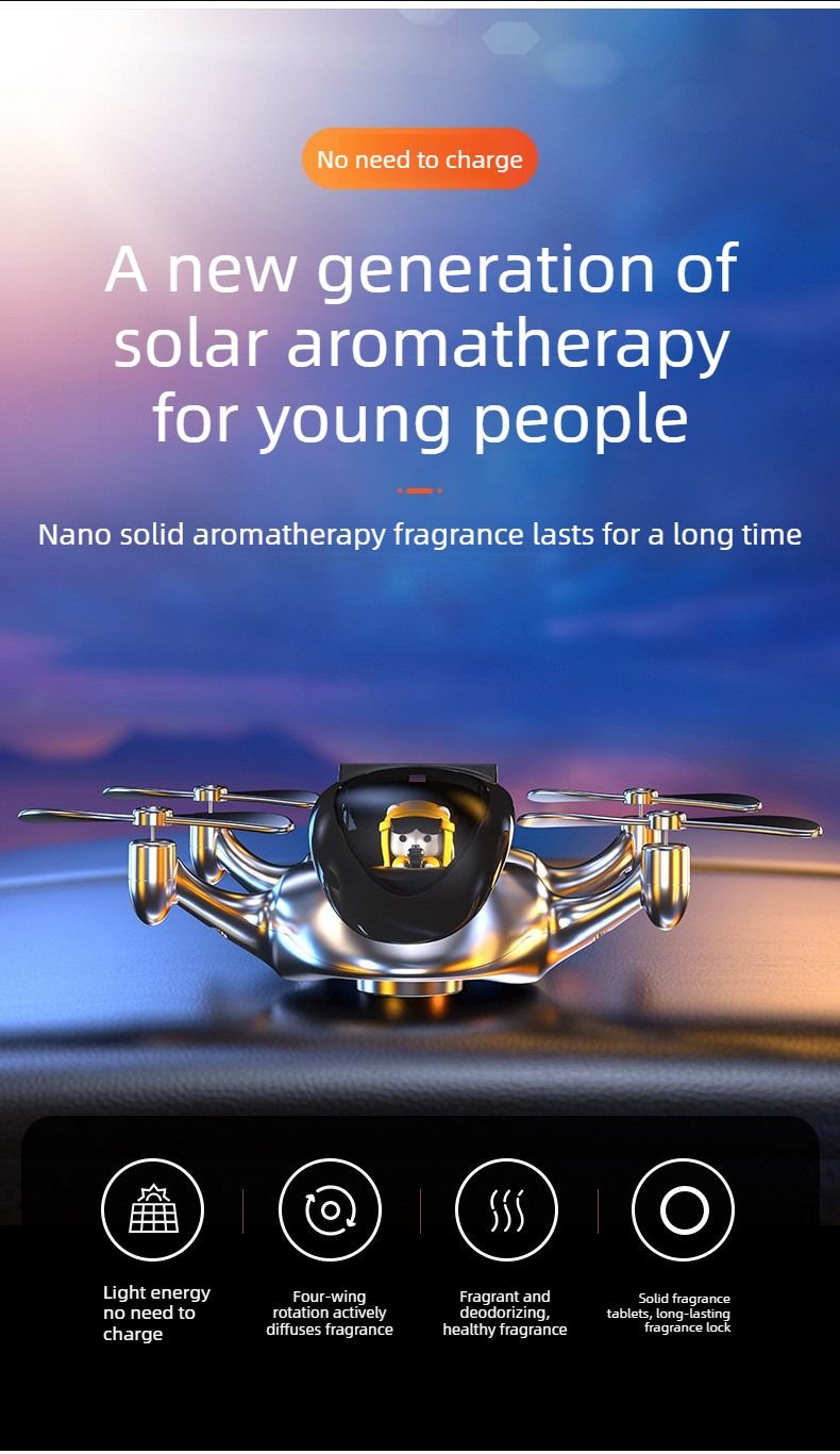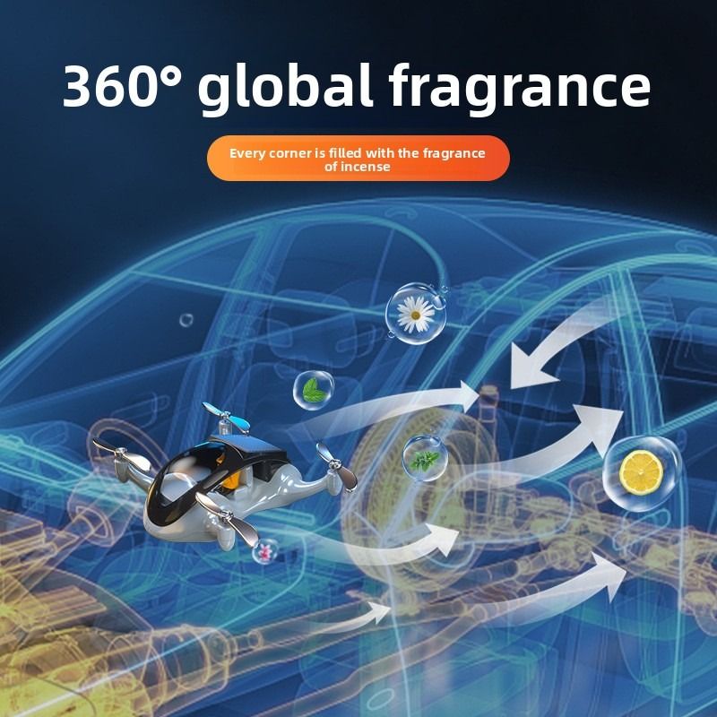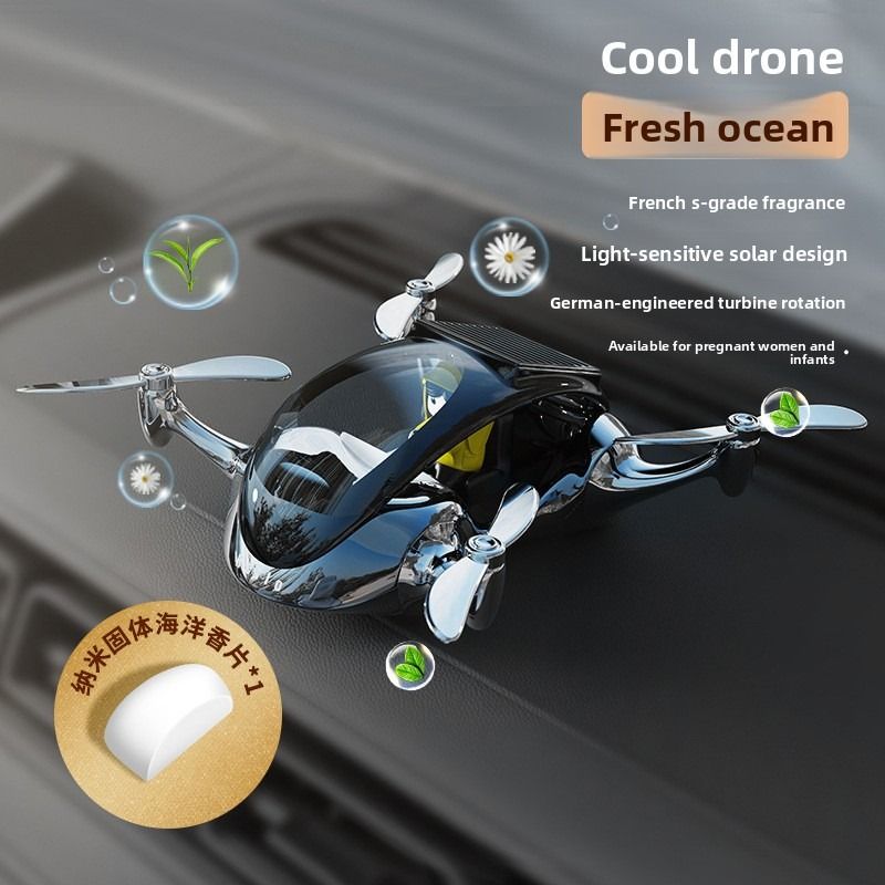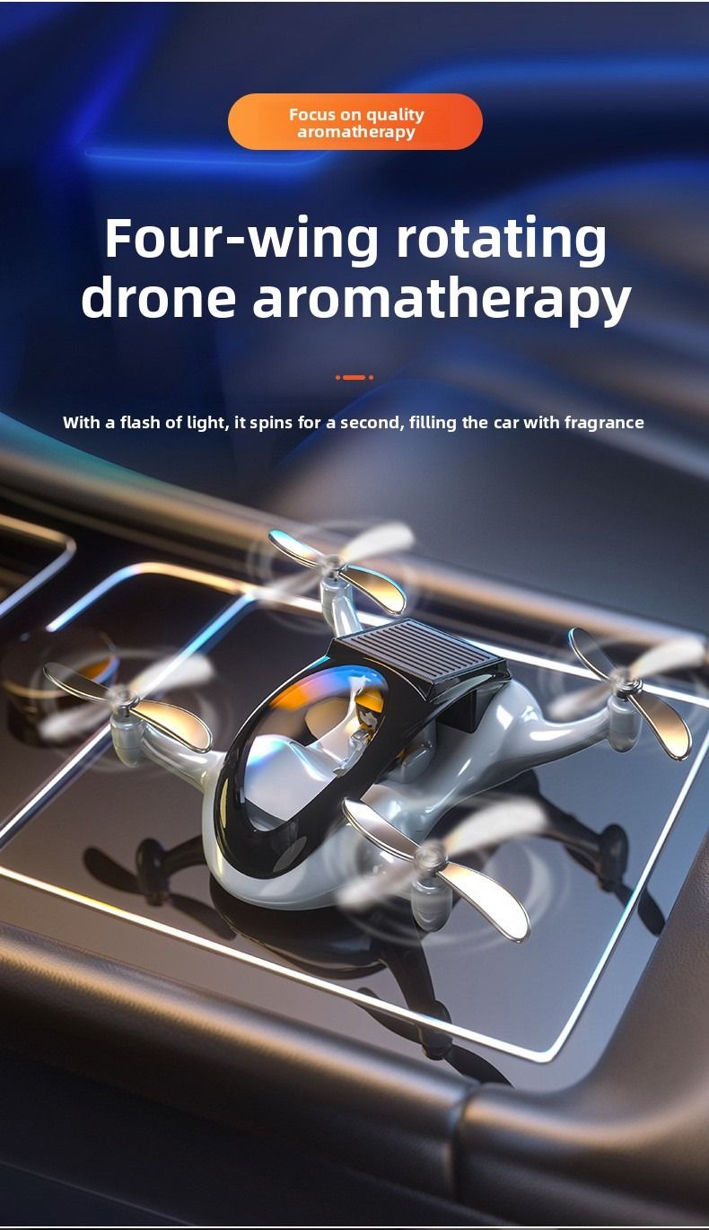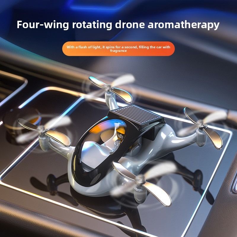 Creative drone based car air freshener solar powered rotating airplane interior decoration for luxury cars.