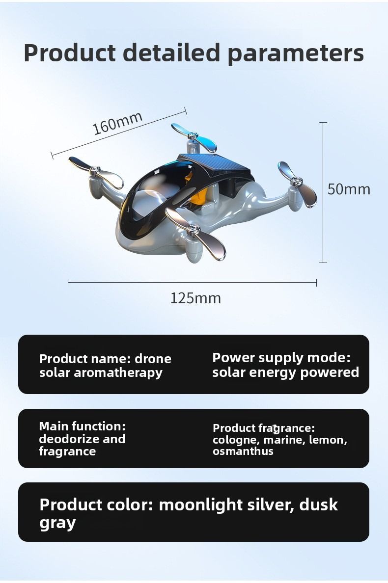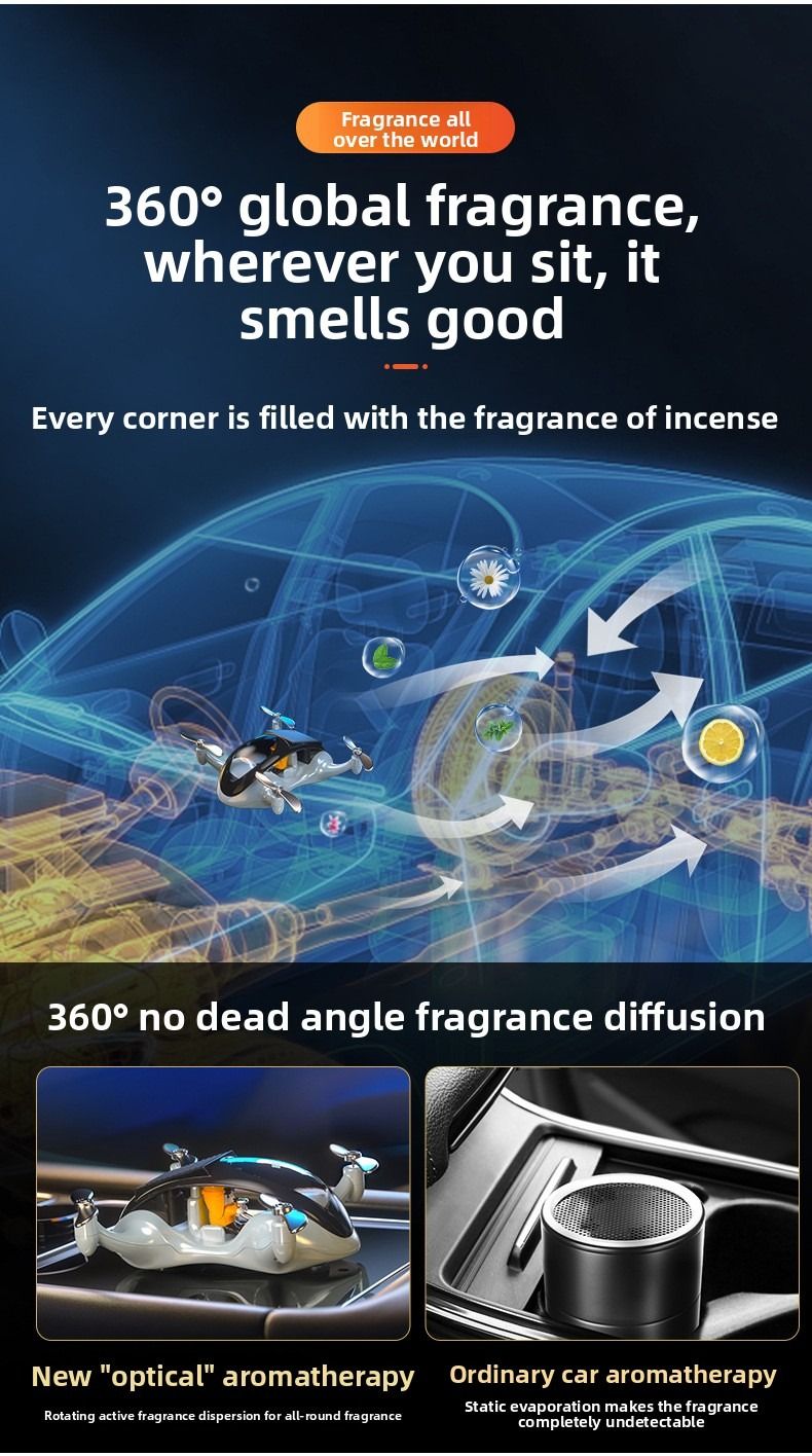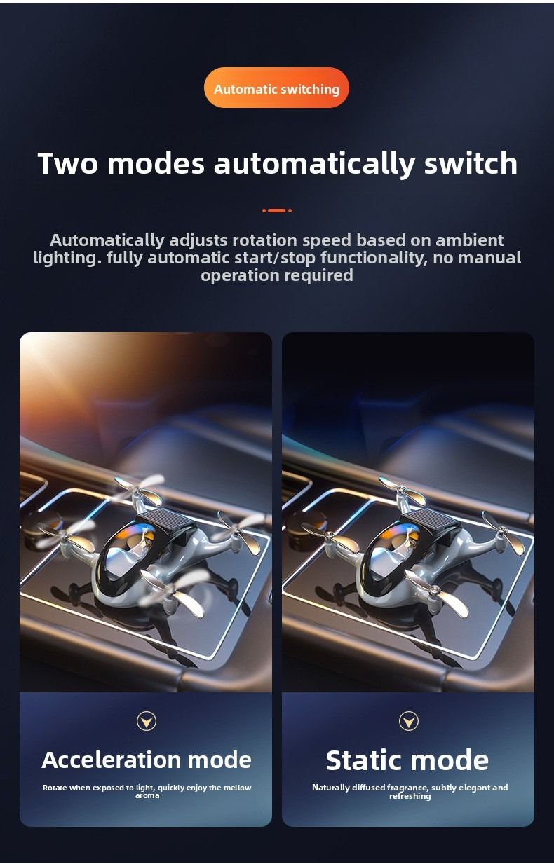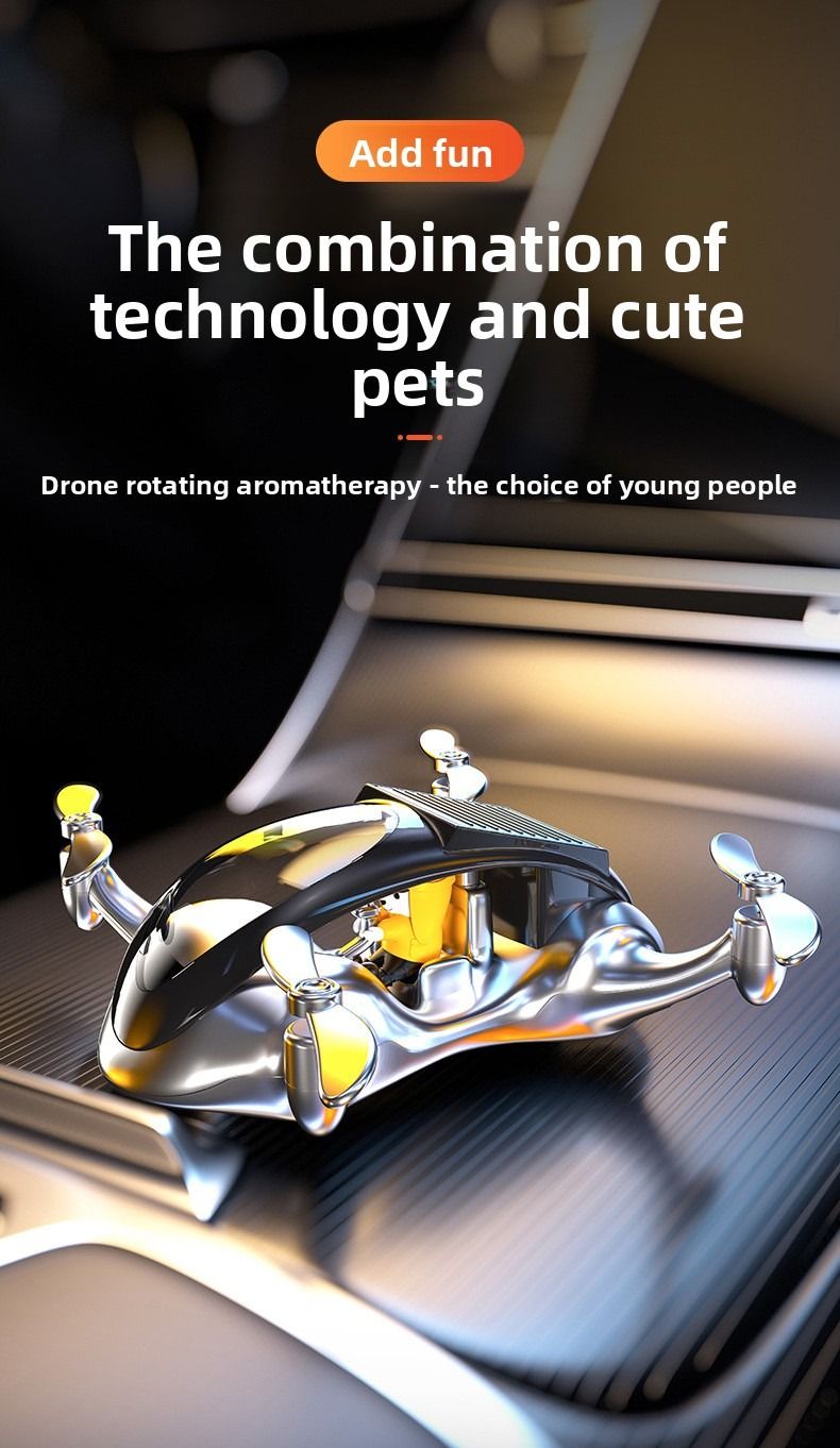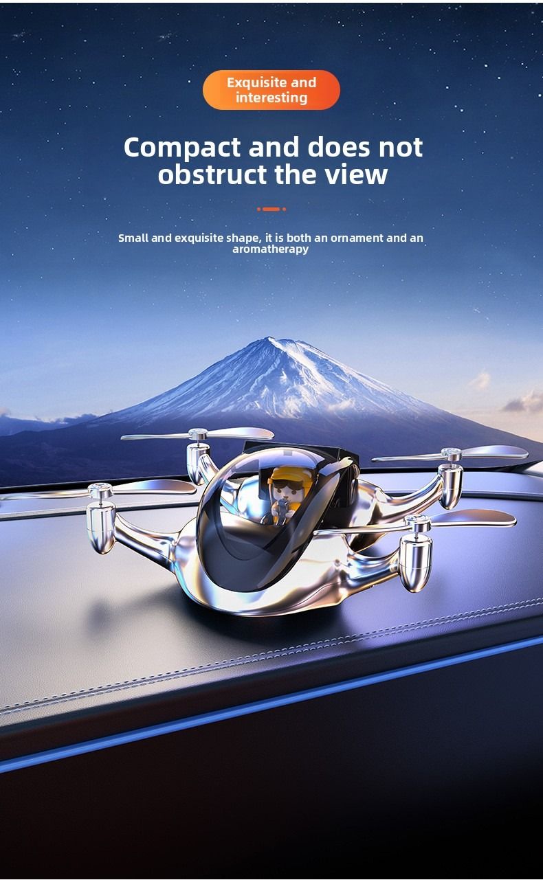 Creative drone based car air freshener solar powered rotating airplane interior decoration for luxury cars.