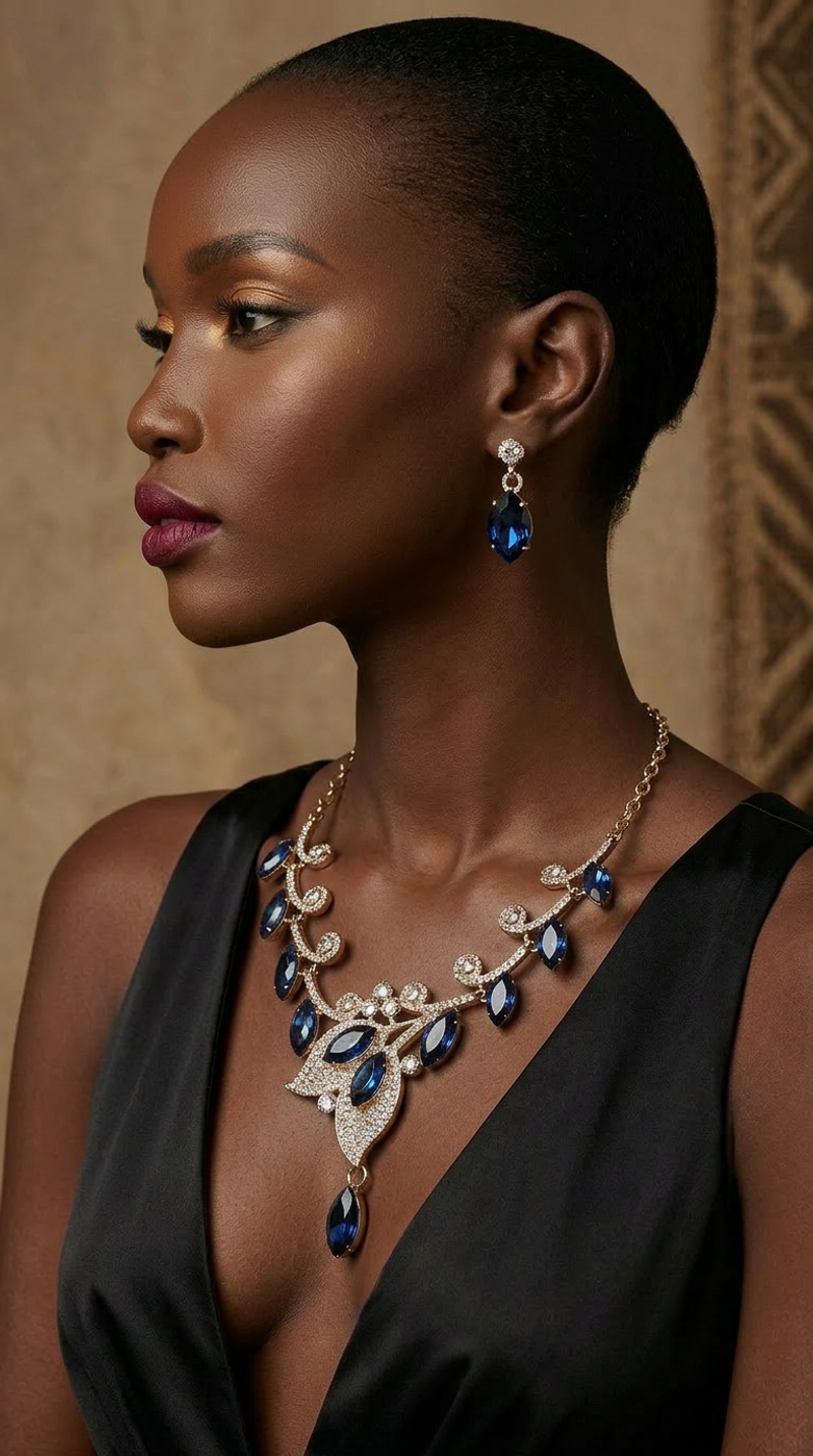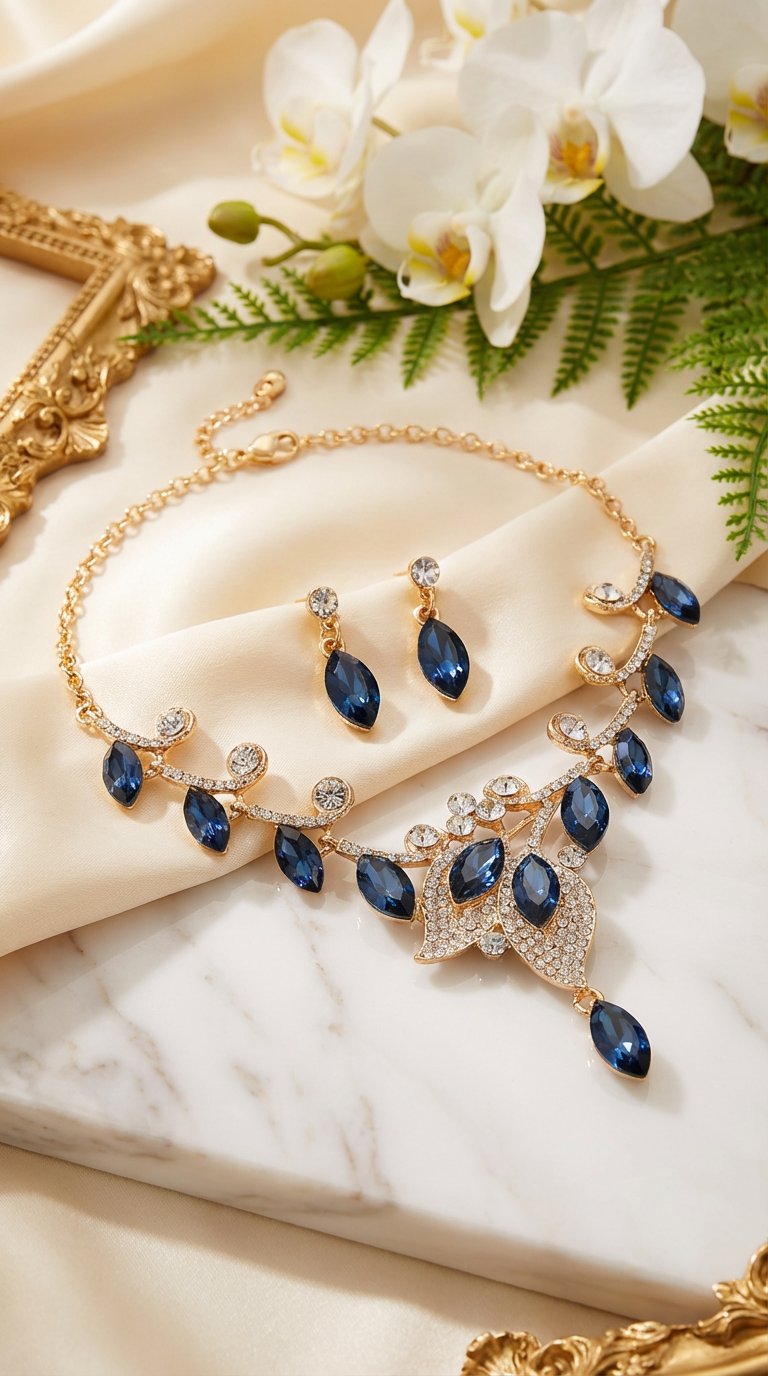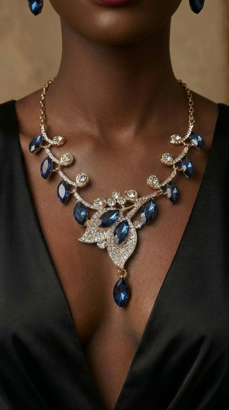 Exaggerated Vintage Necklace Set for Women, Luxury Crystal Banquet Dress Accessories, Clavicle Chain