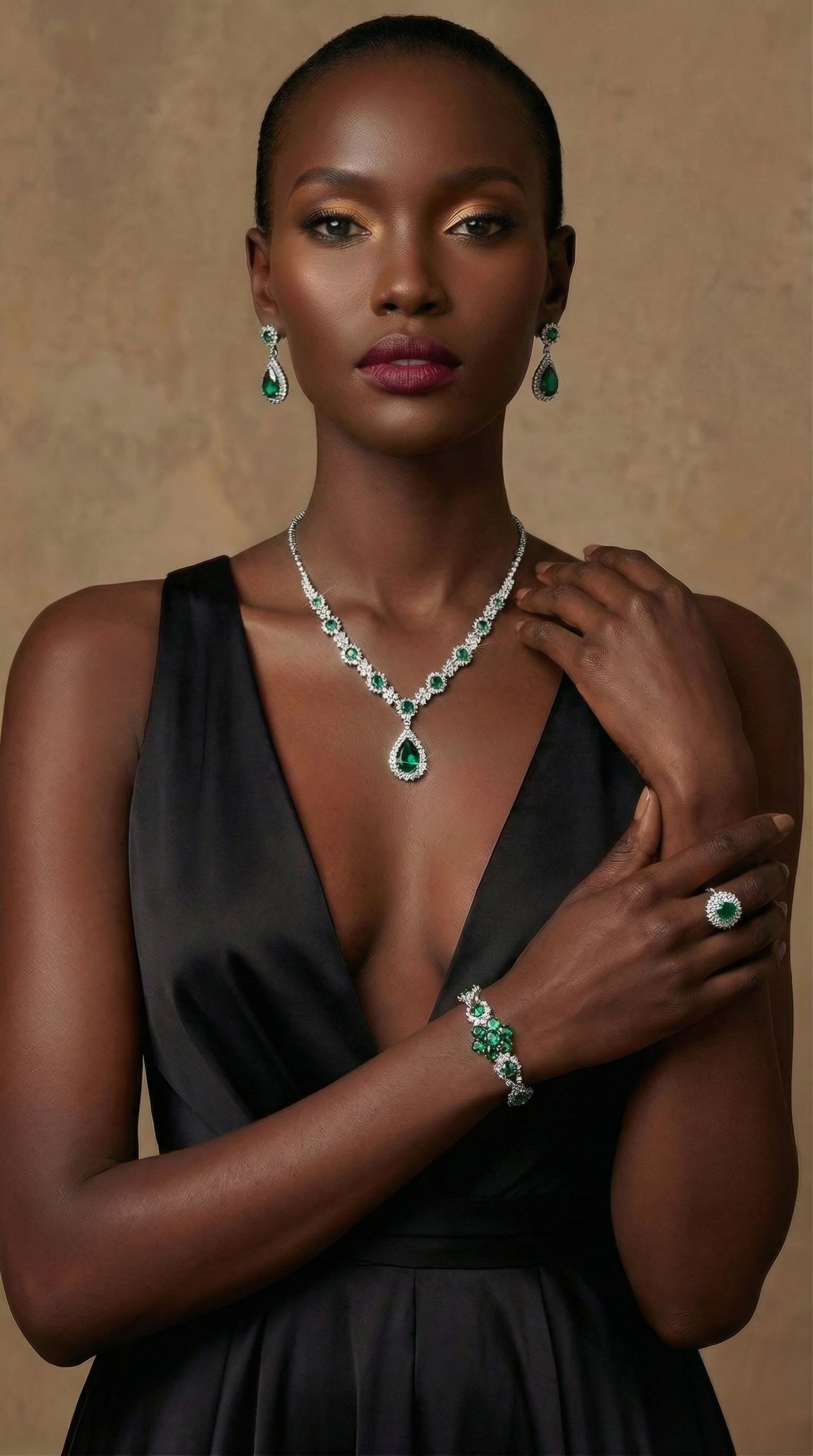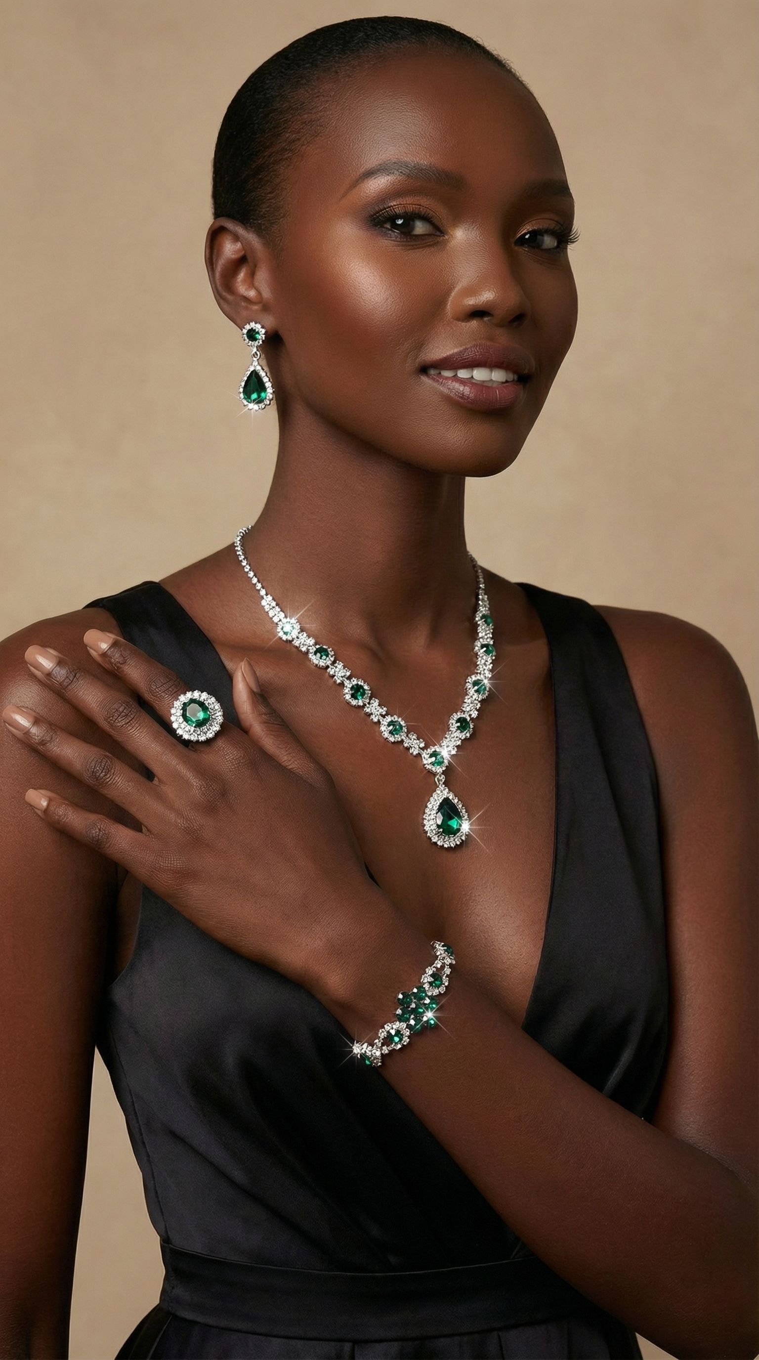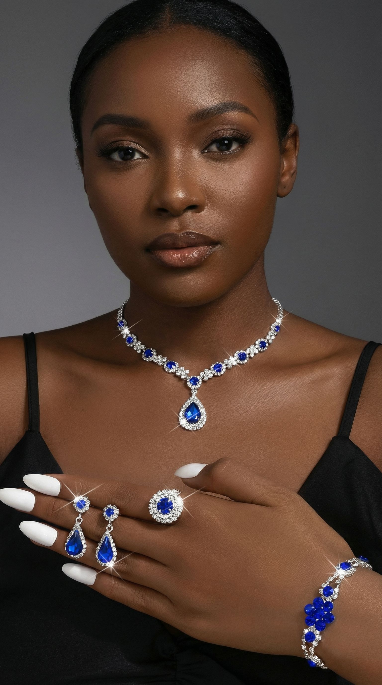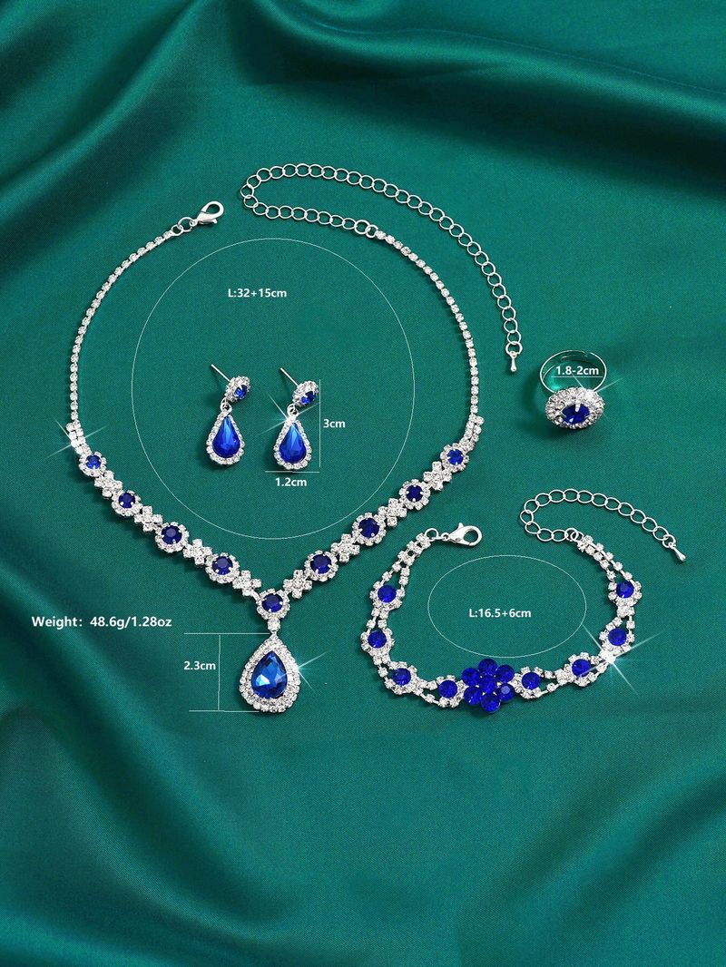 Fashionable European and American style new jewelry set, high-end crystal gemstone women's teardrop necklace, earrings, bracelet and ring set