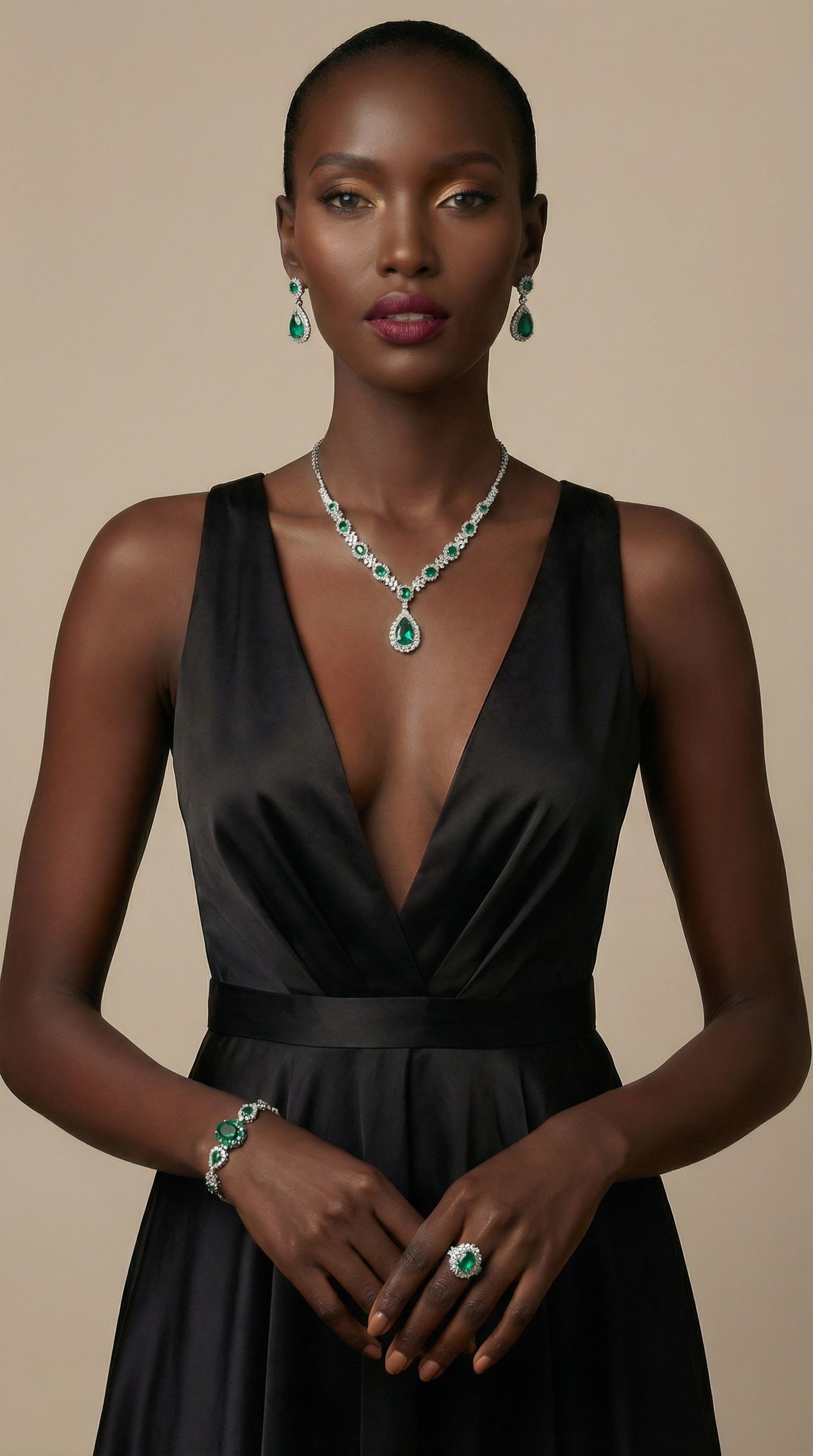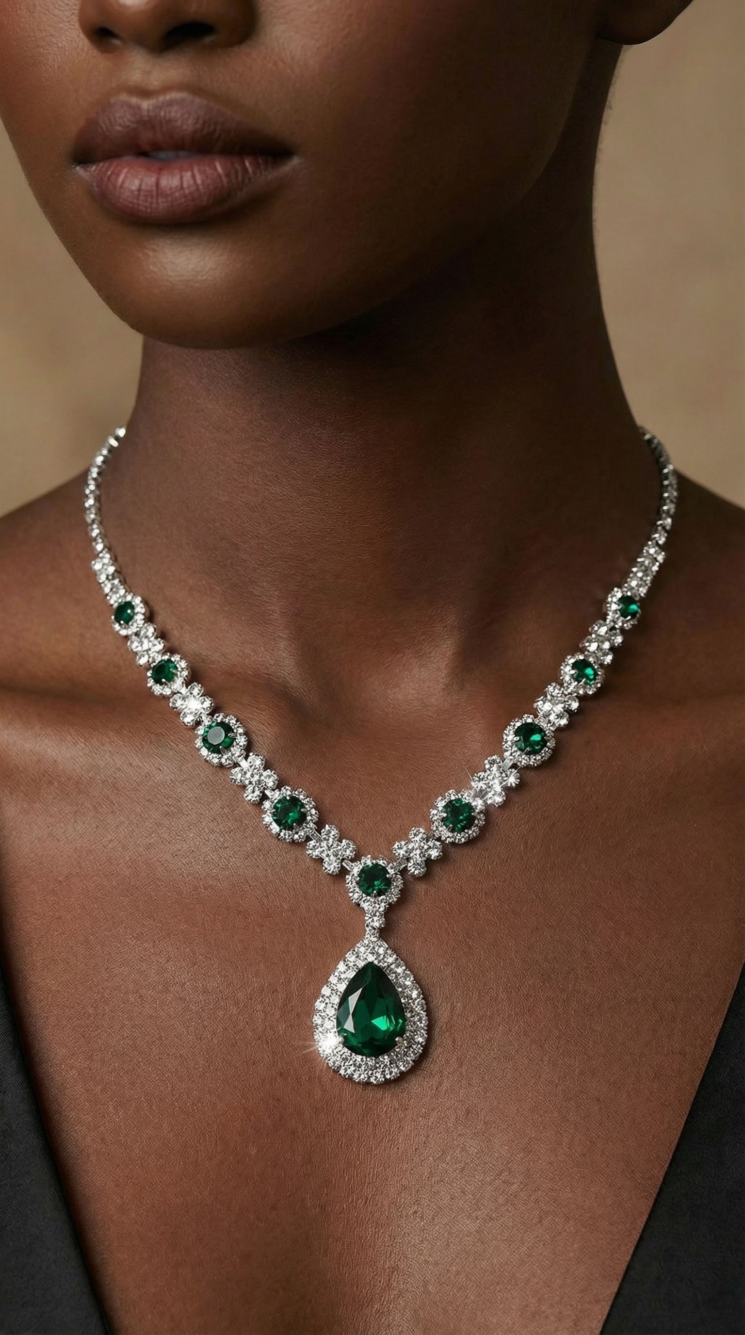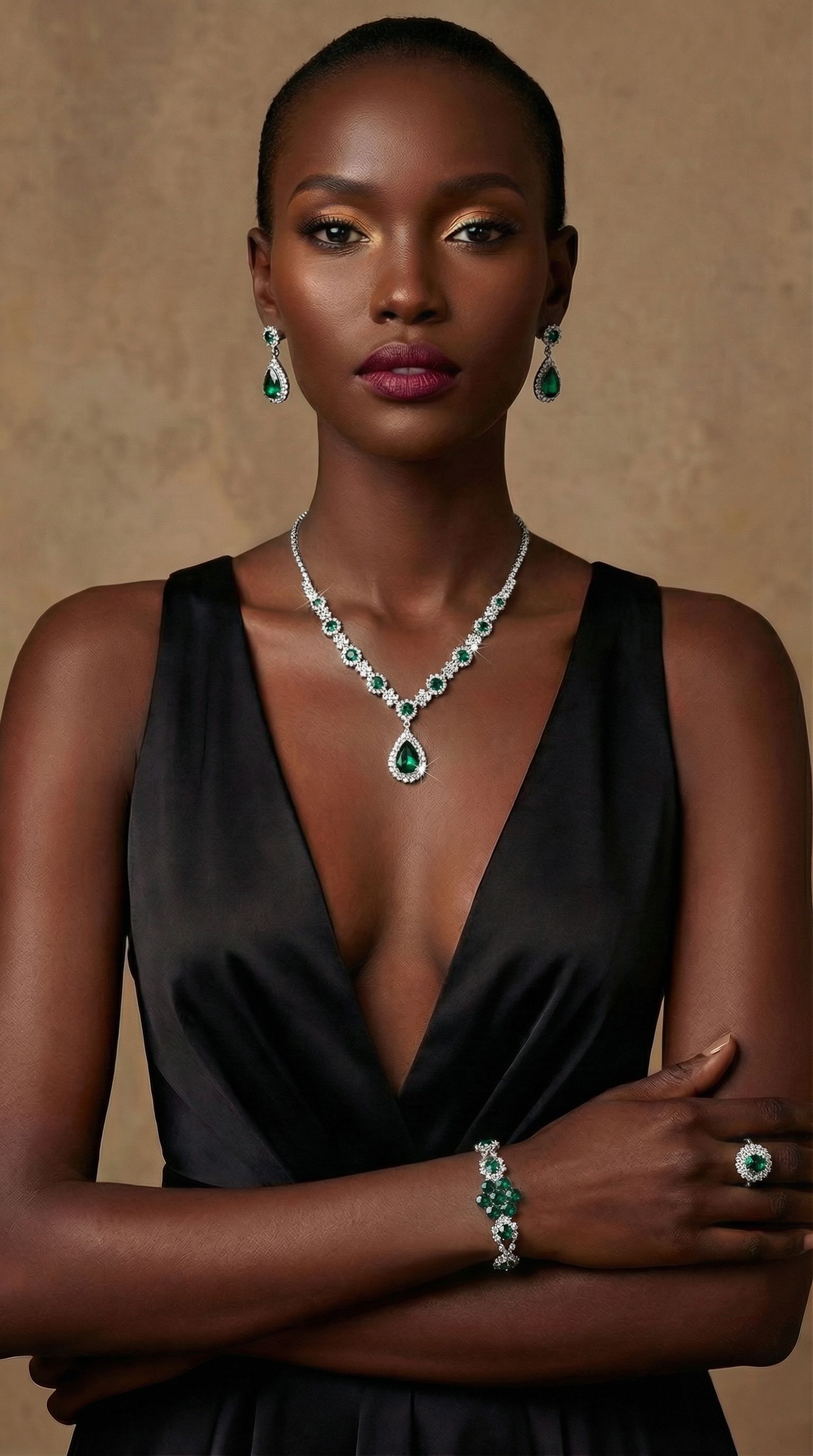 Fashionable European and American style new jewelry set, high-end crystal gemstone women's teardrop necklace, earrings, bracelet and ring set