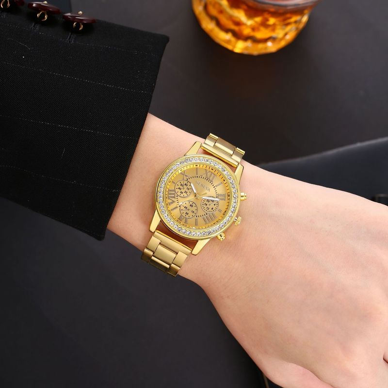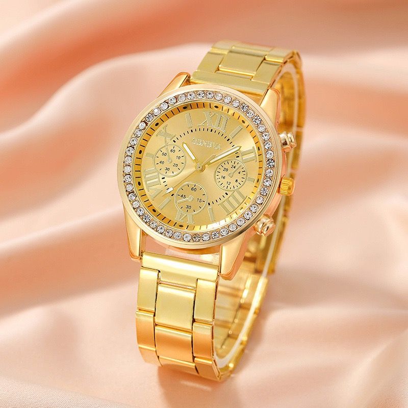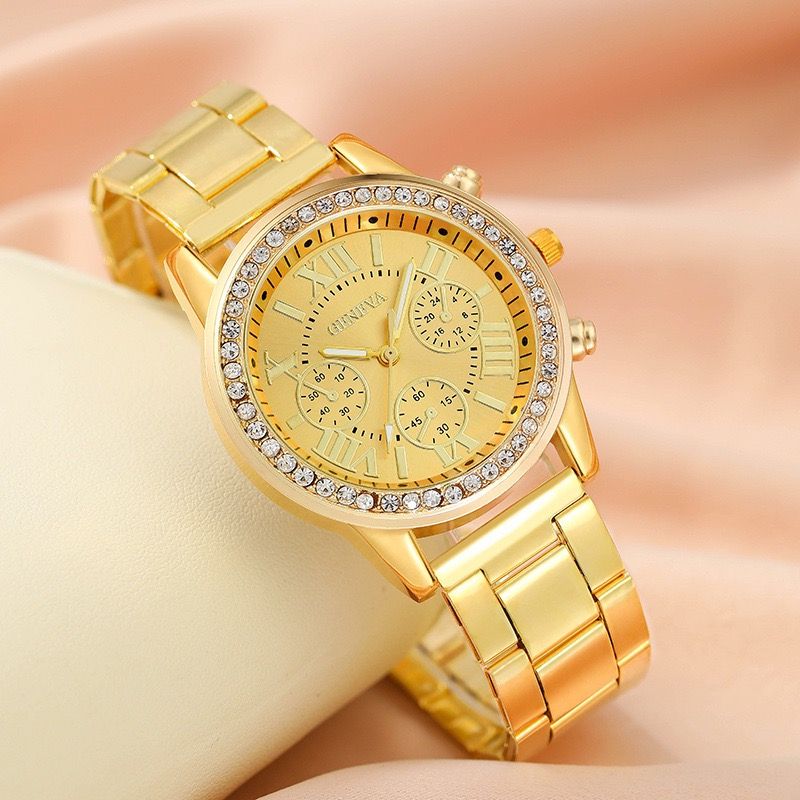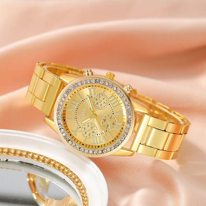 Gift first choice New watch Luxury Vintage quartz Roman dial gold steel strap watch