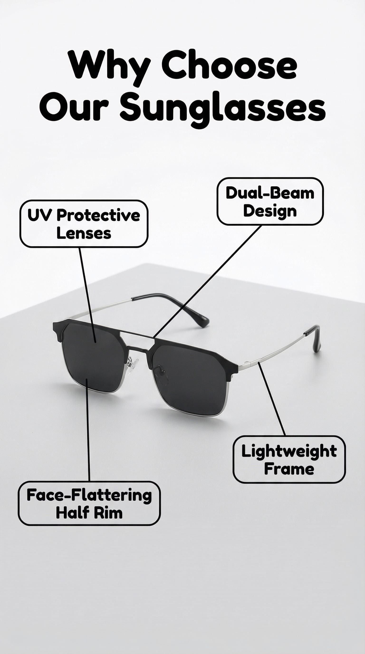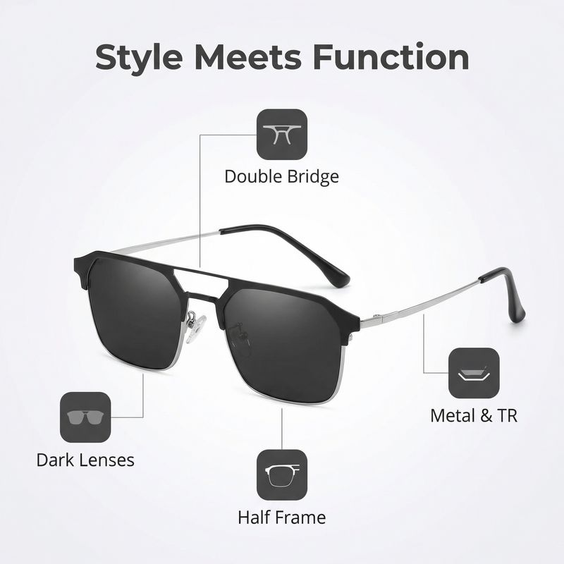 Half-rimmed prescription sunglasses, driver-specific sunglasses with strong light protection and UV protection