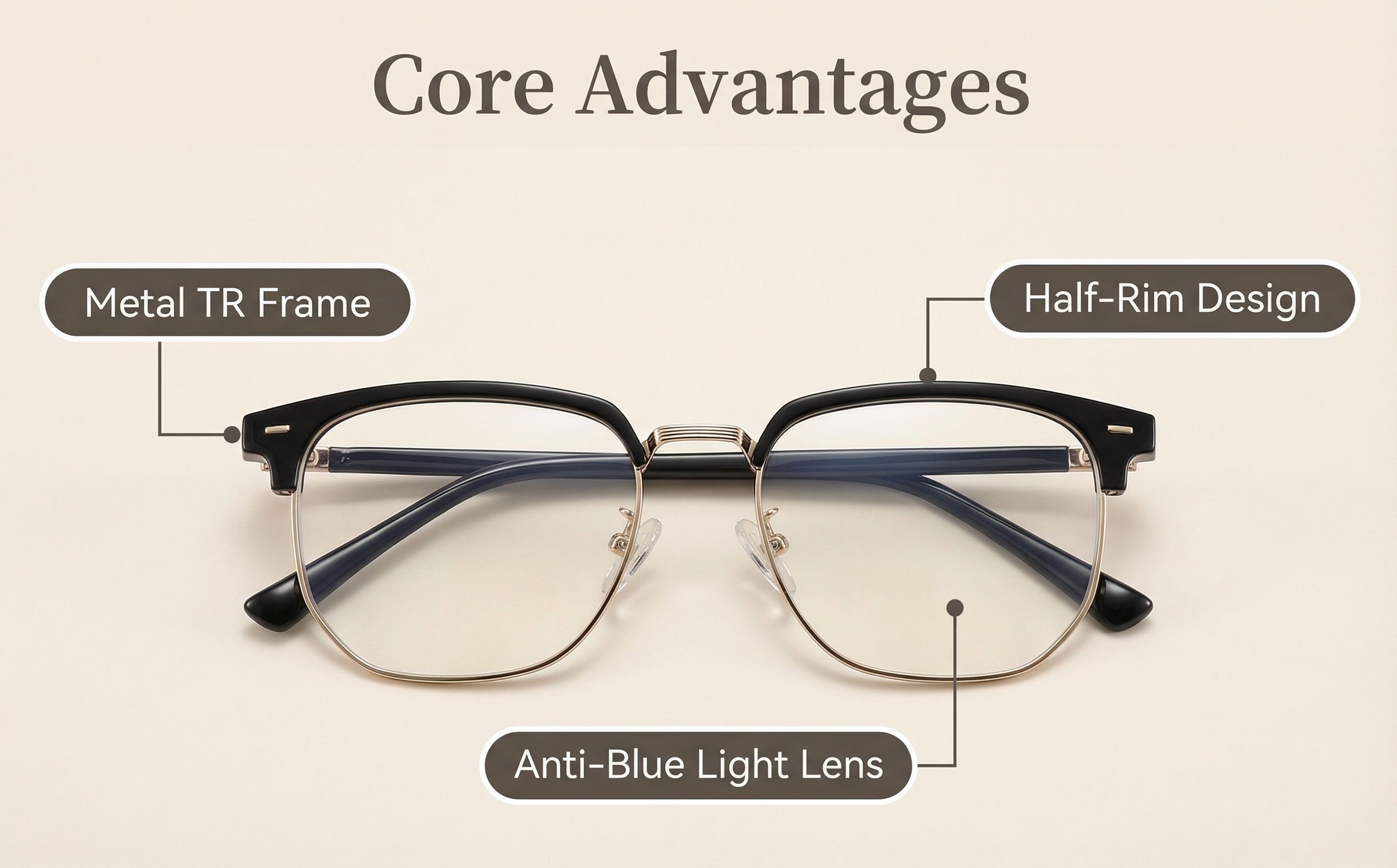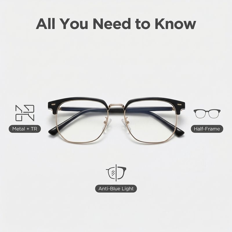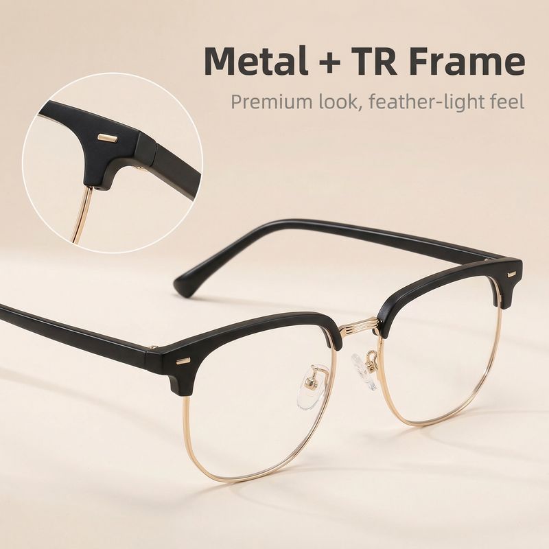 Stylish Vintage Half-Frame Glasses – Lightweight & Elegant (3 Colors Available)