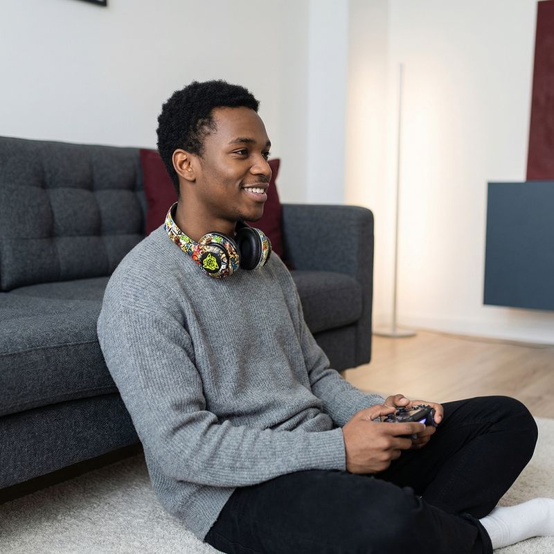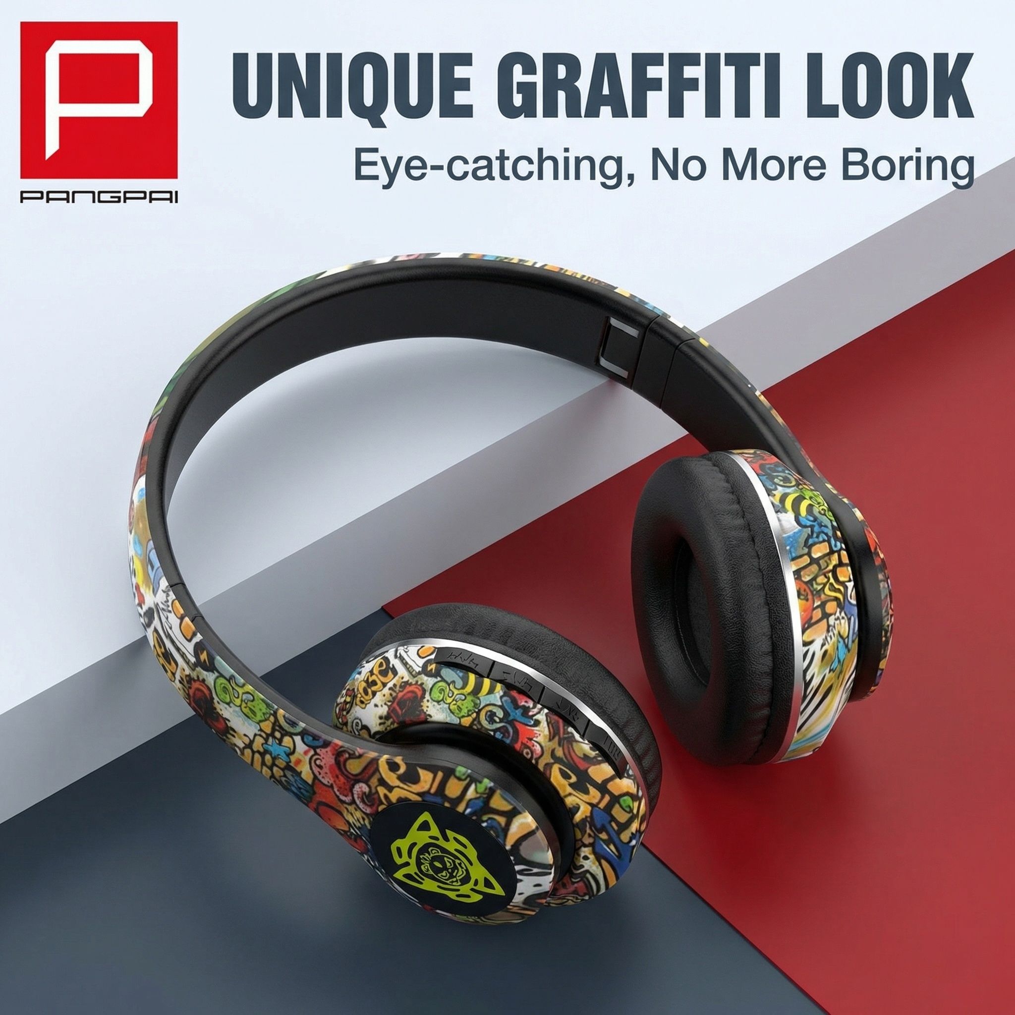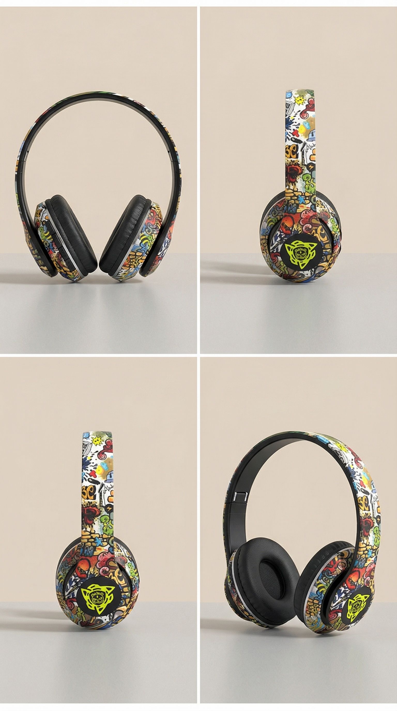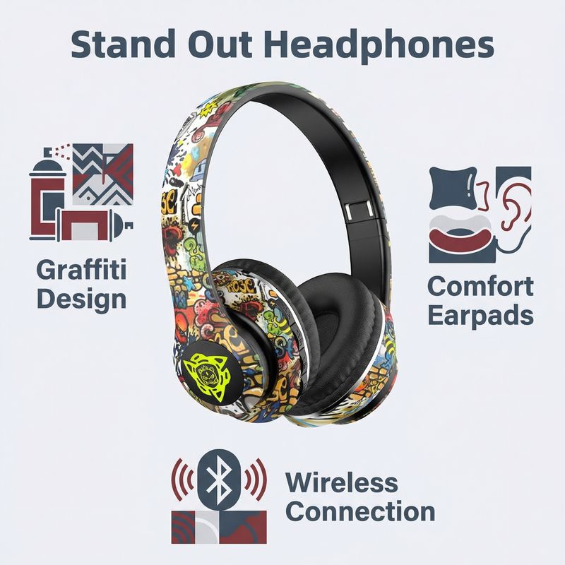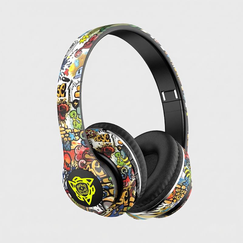 Graffiti-style over-ear Bluetooth headphones, illuminated wireless sports and gaming headset