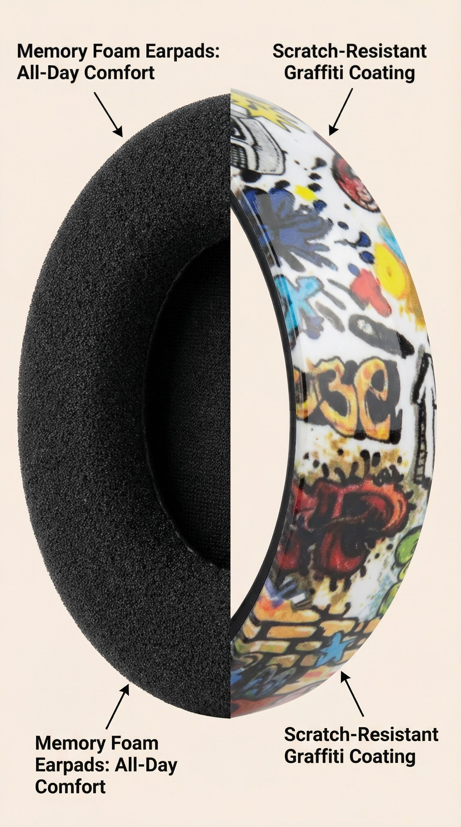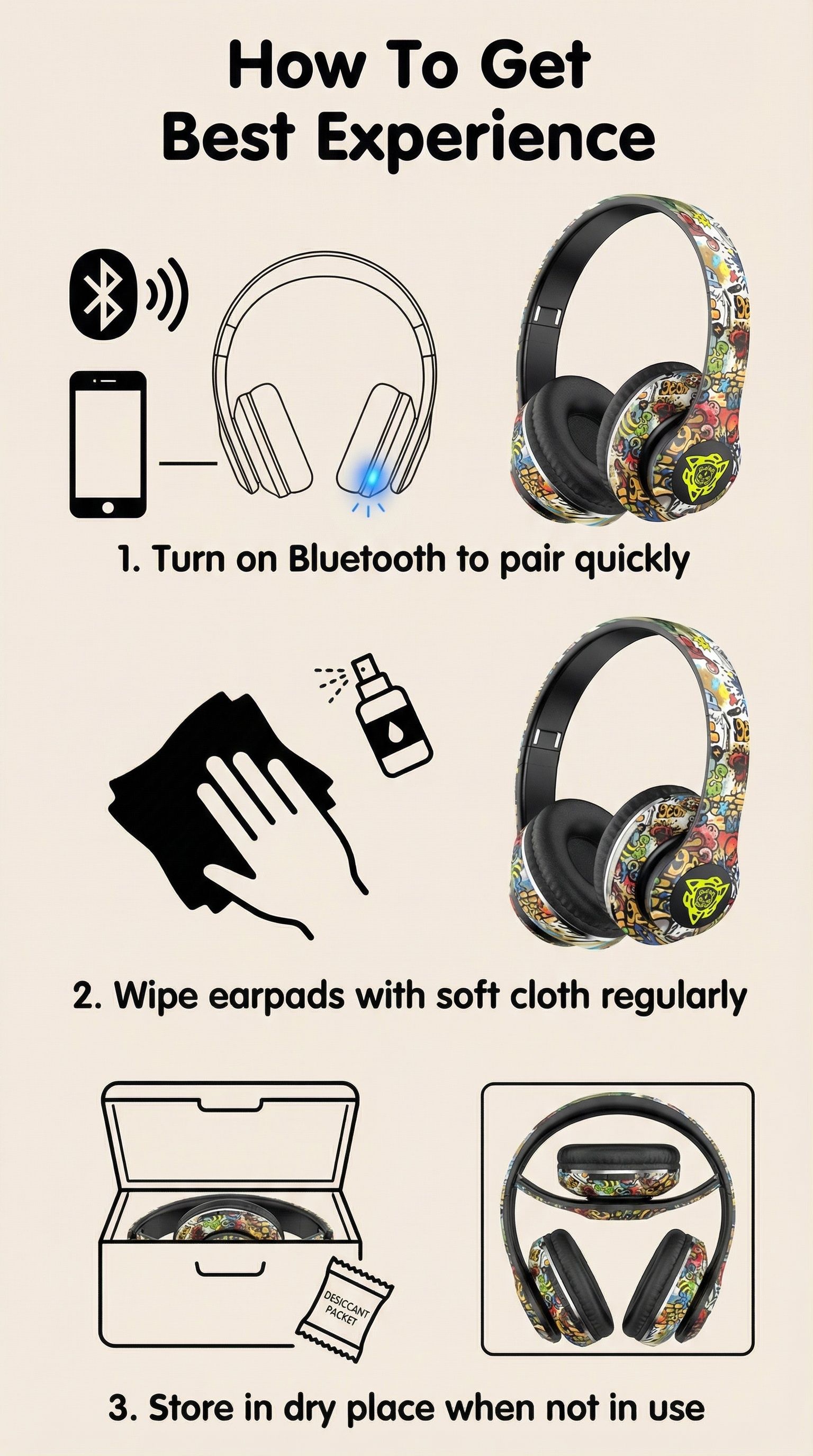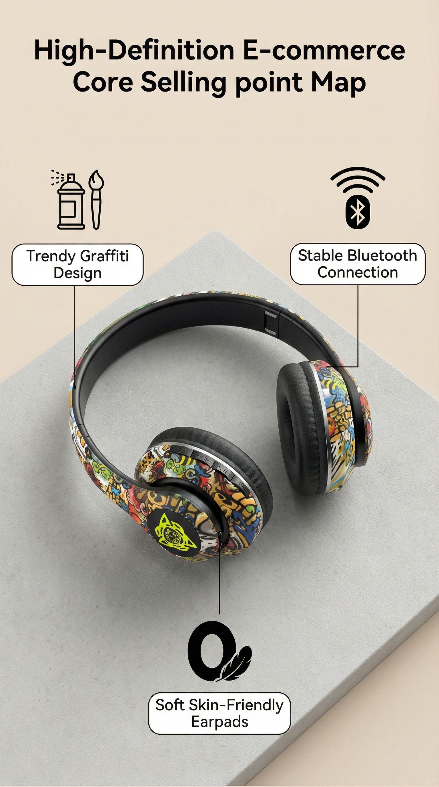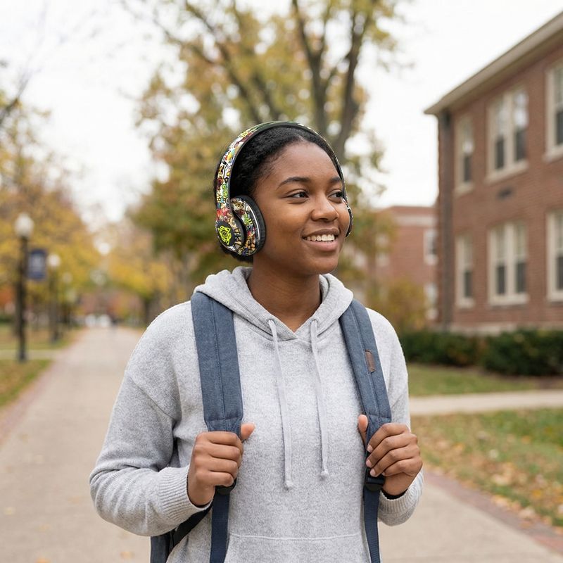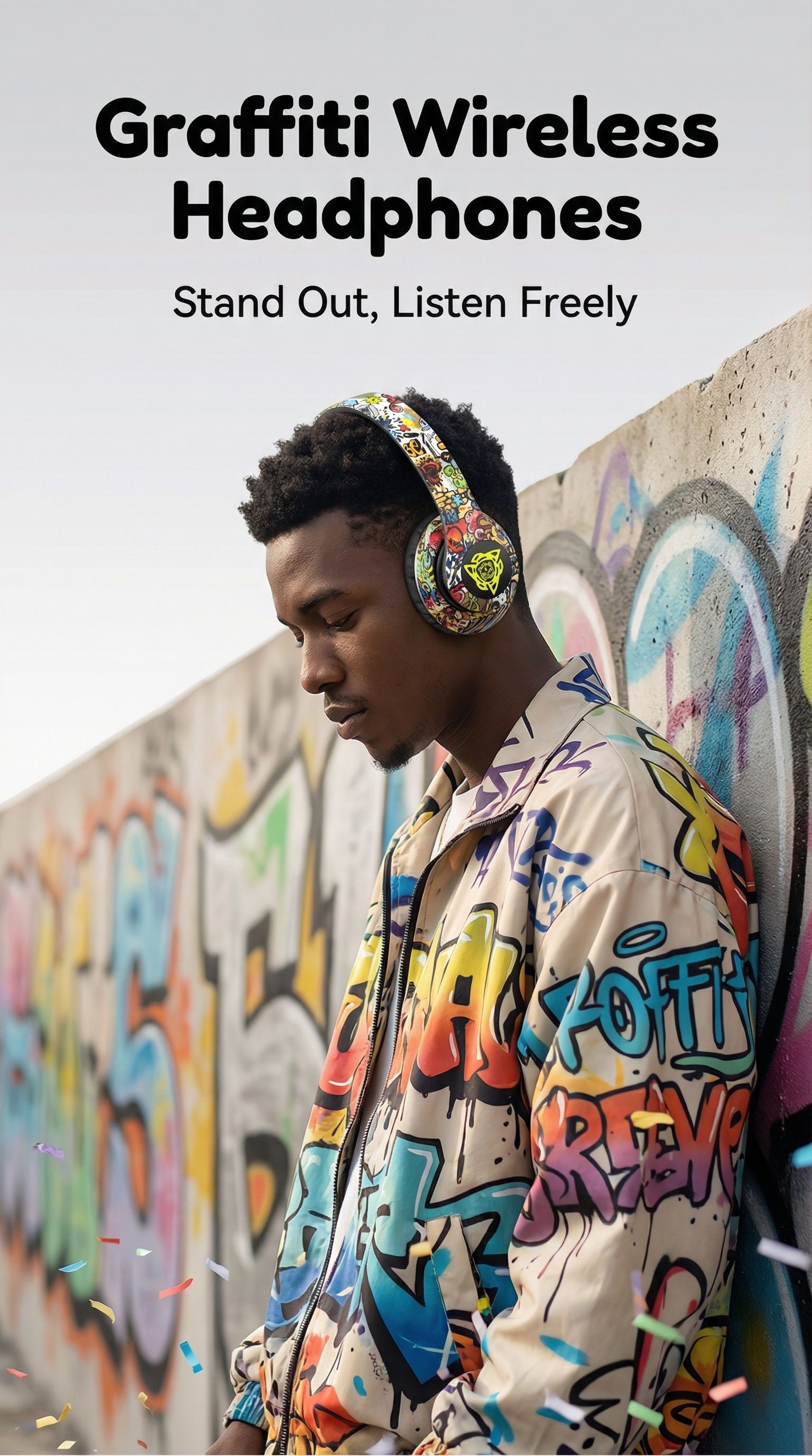Graffiti-style over-ear Bluetooth headphones, illuminated wireless sports and gaming headset