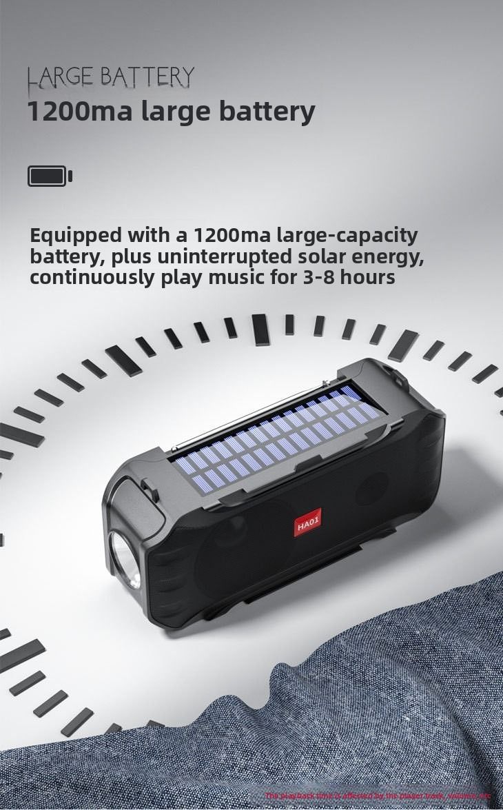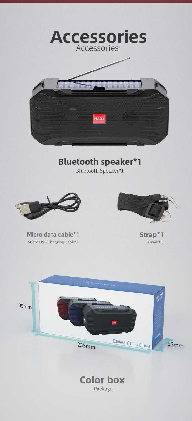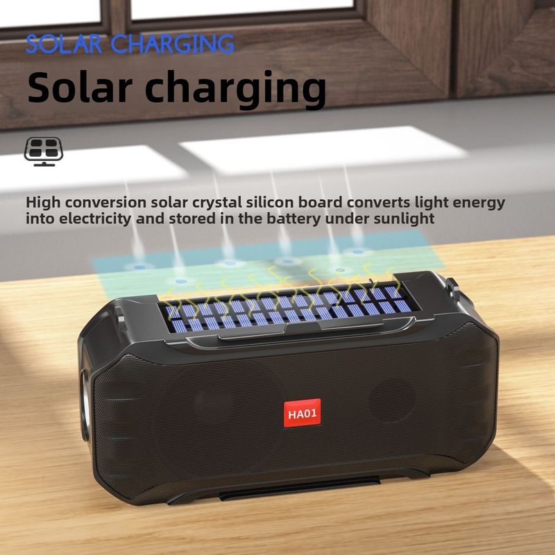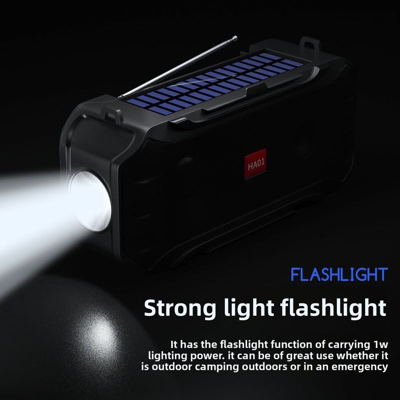 HA01 Solar Wireless Bluetooth Speaker FM Radio Flashlight Handheld Portable Outdoor Sound System