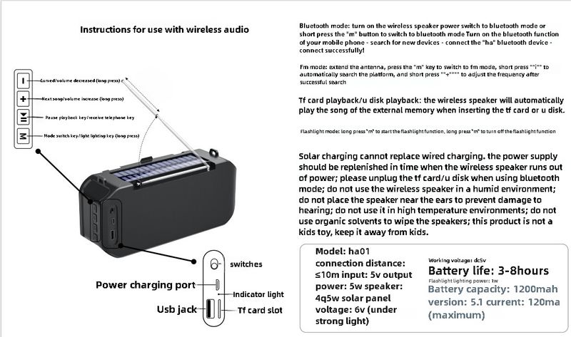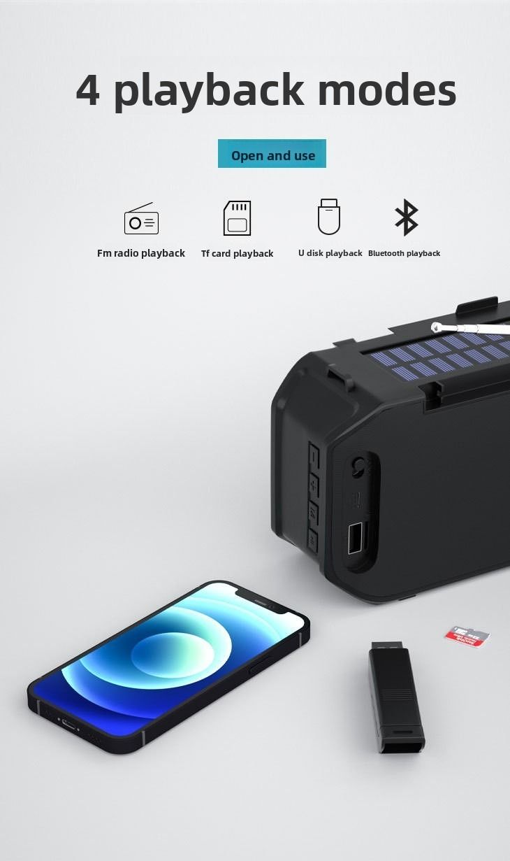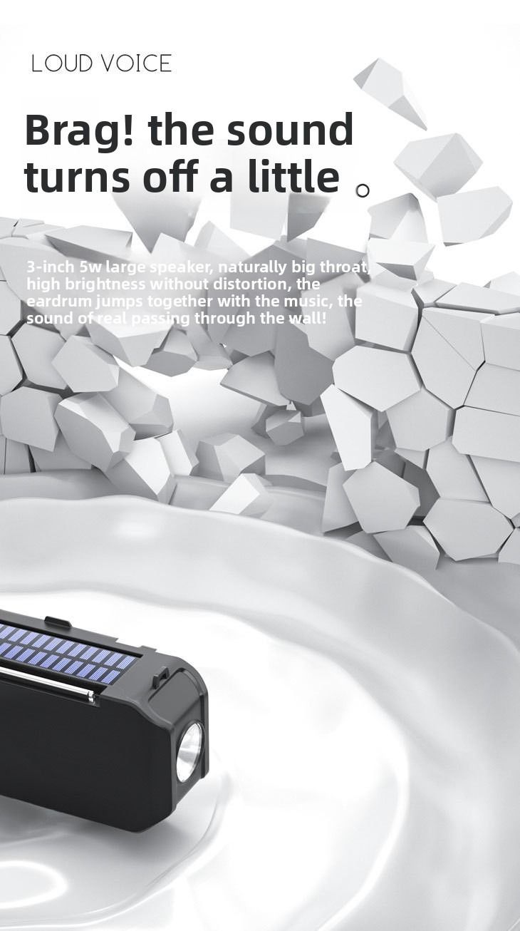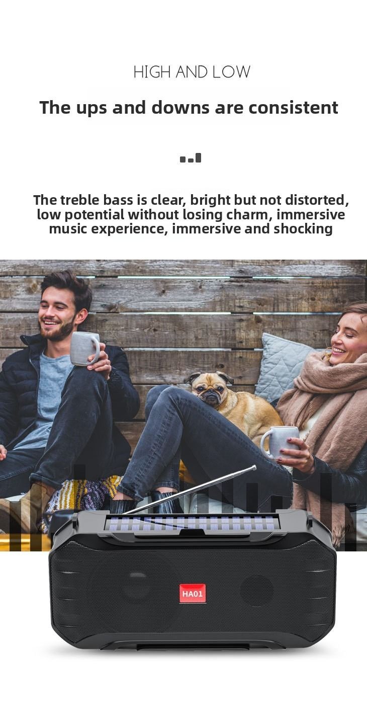 HA01 Solar Wireless Bluetooth Speaker FM Radio Flashlight Handheld Portable Outdoor Sound System