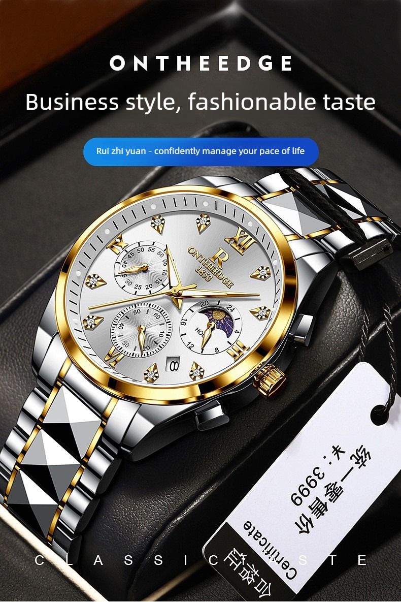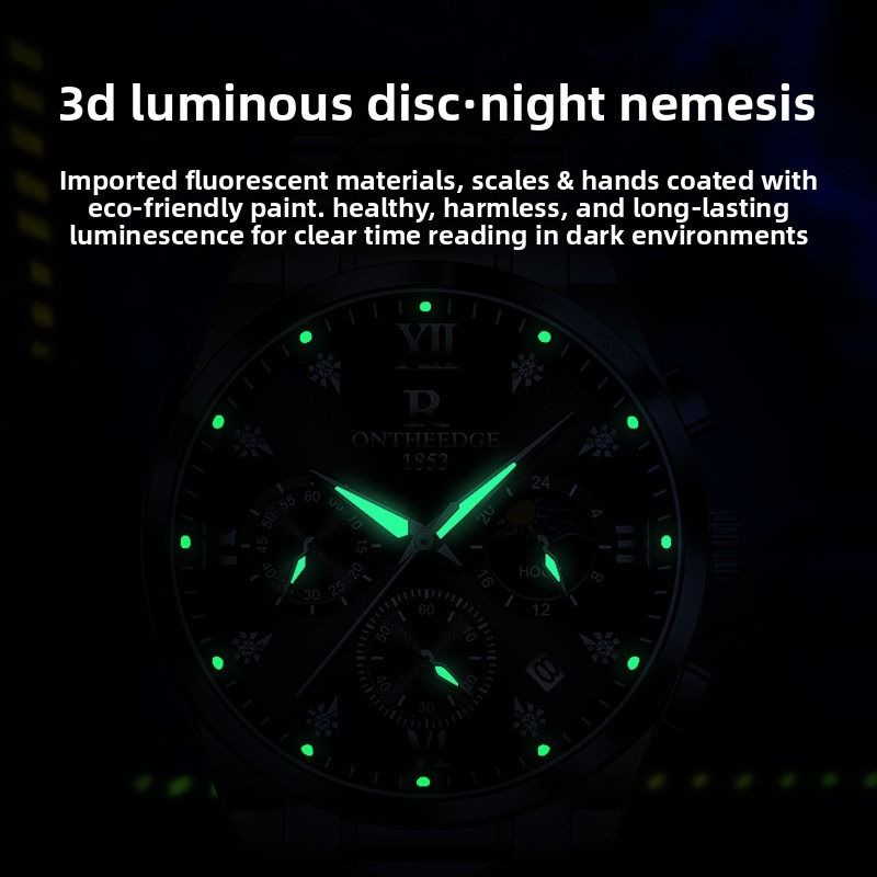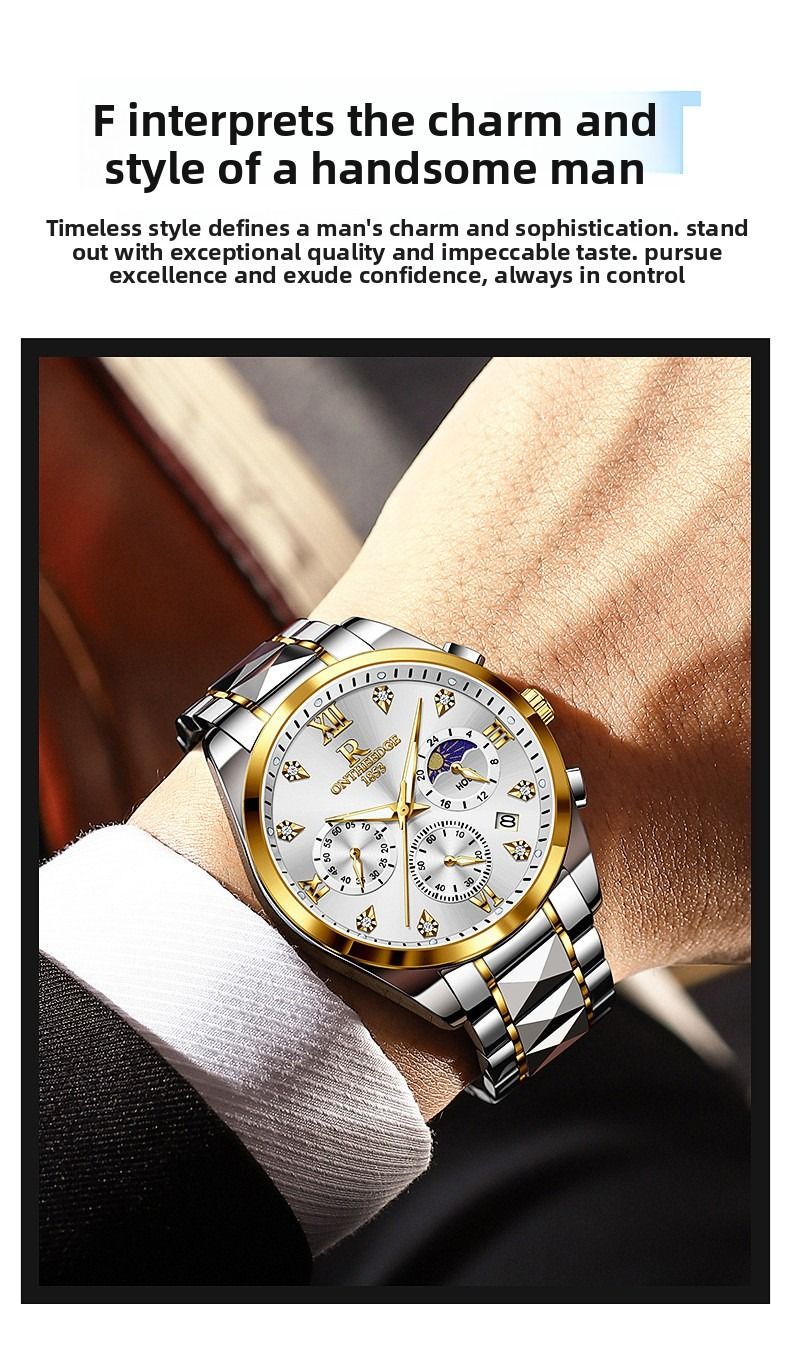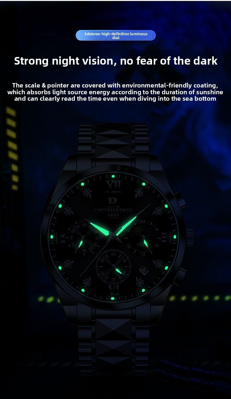 Luxury waterproof wristwatch, men's luminous quartz watch.