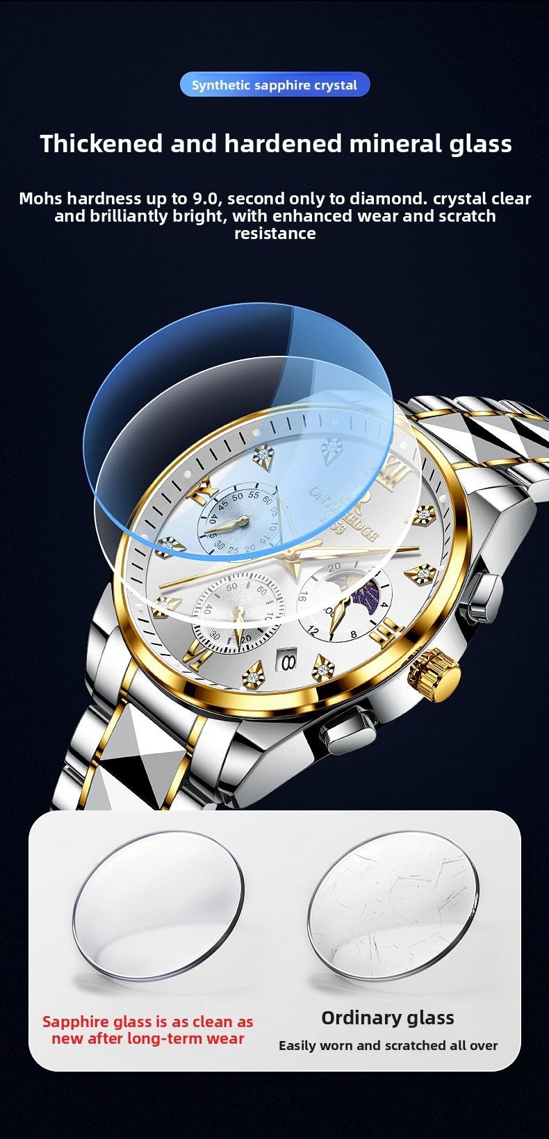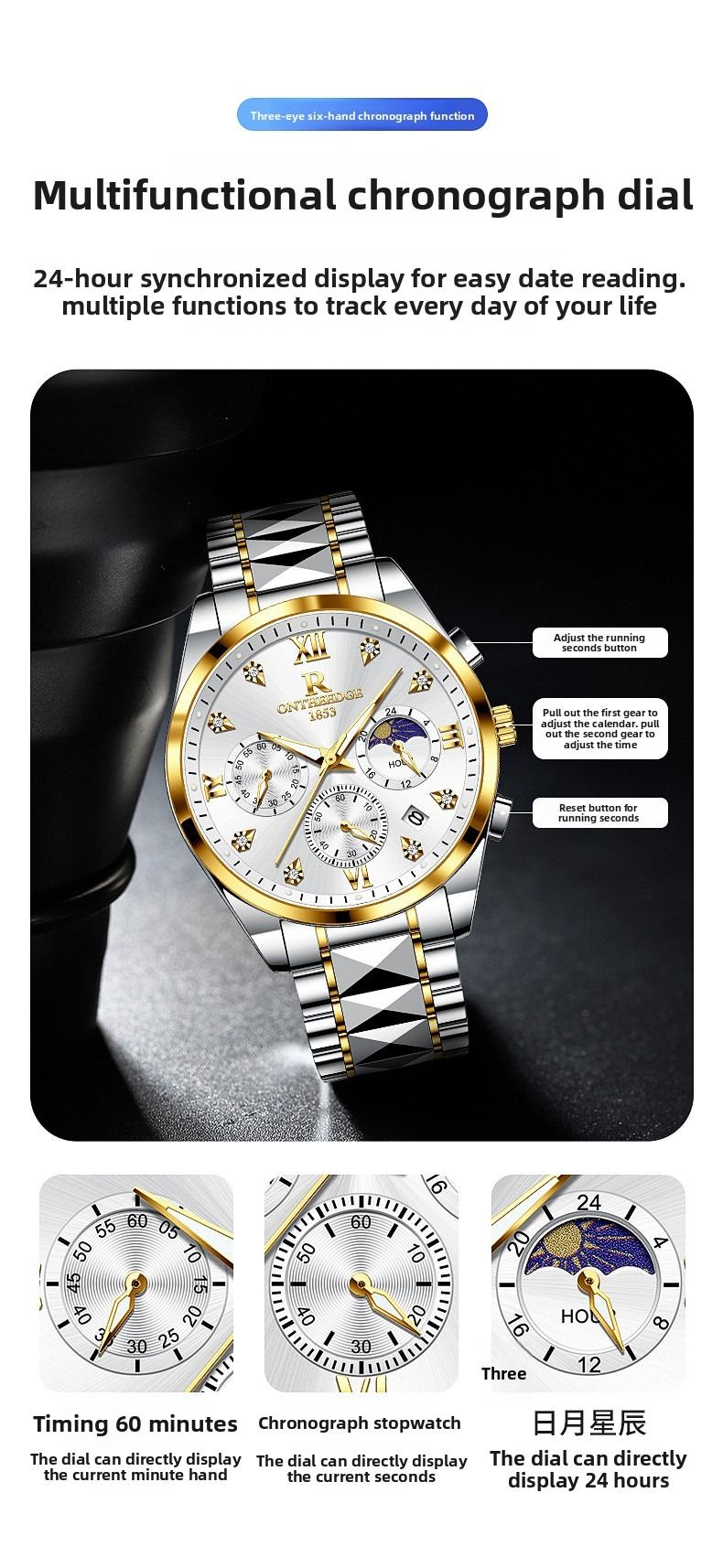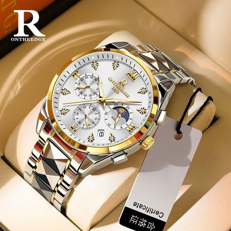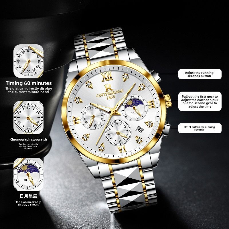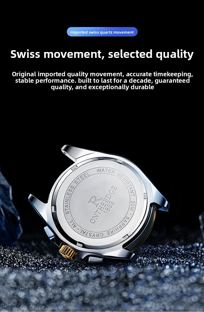 Luxury waterproof wristwatch, men's luminous quartz watch.