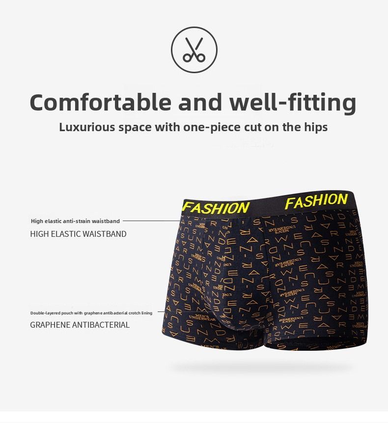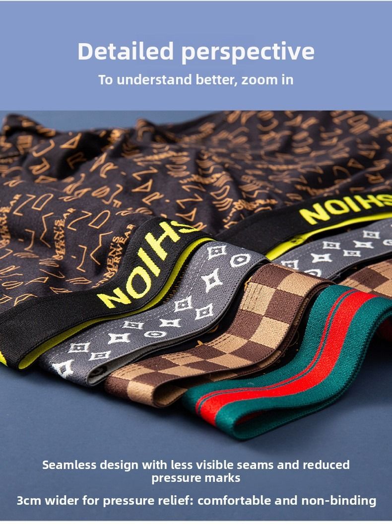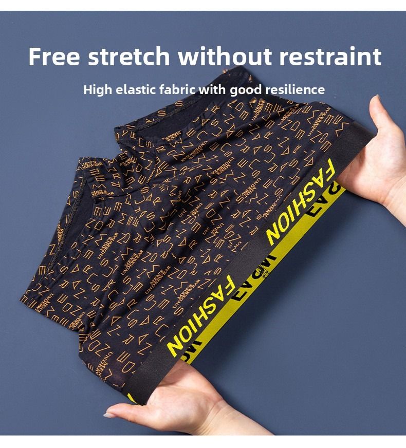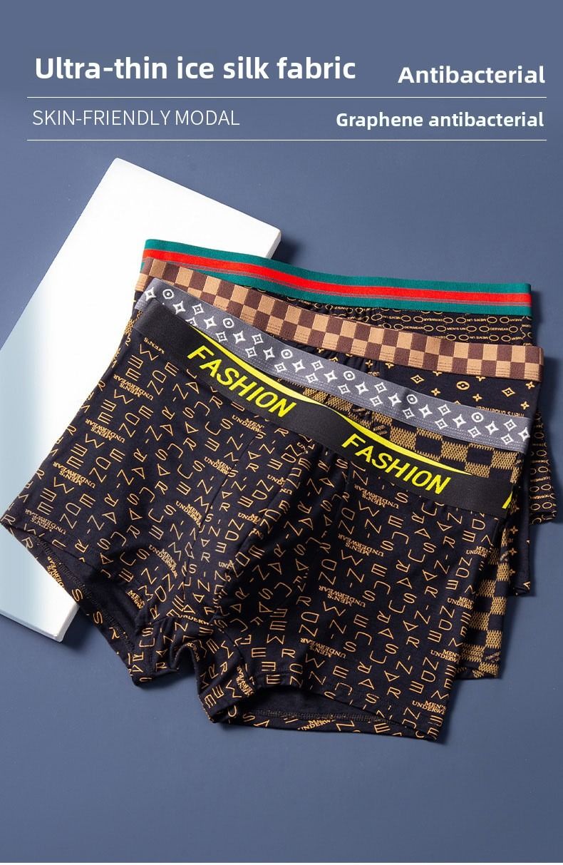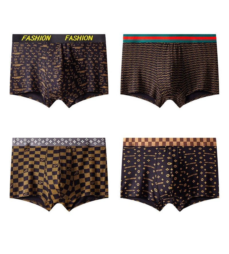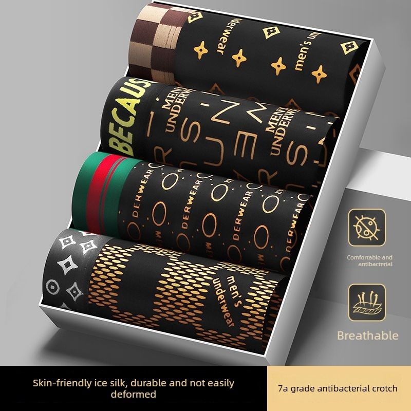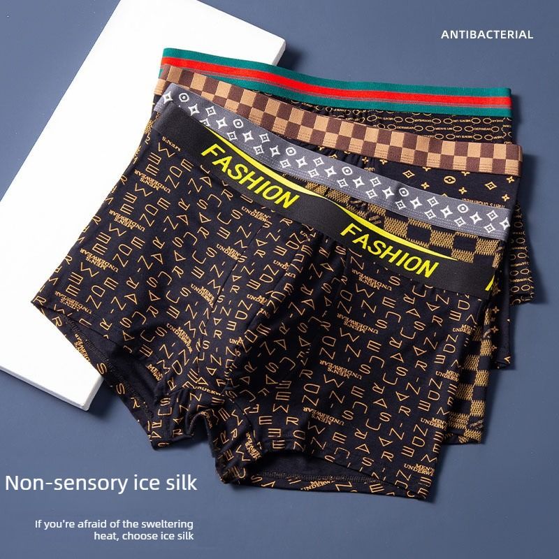 Men's Ice Silk Printed Underwear, Boxer Briefs, Breathable Thin Four-Corner Shorts for Young Men