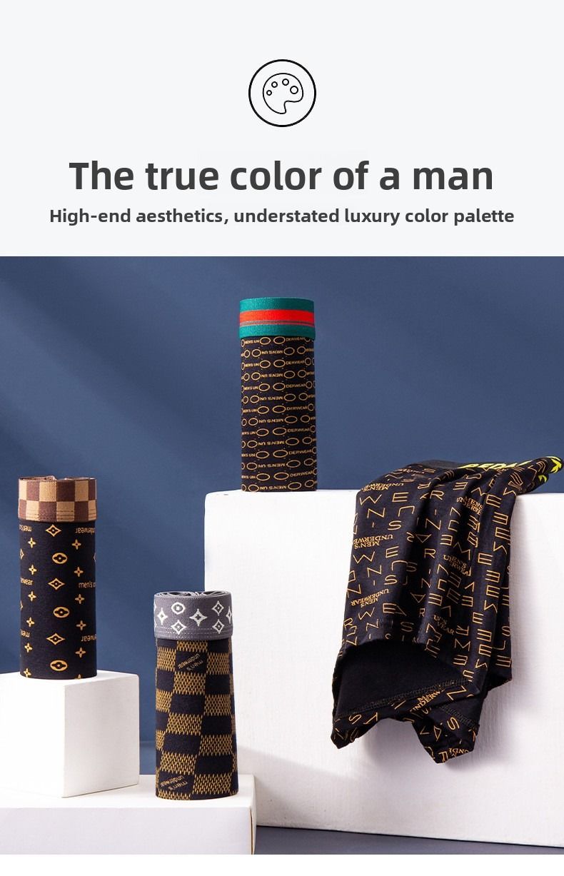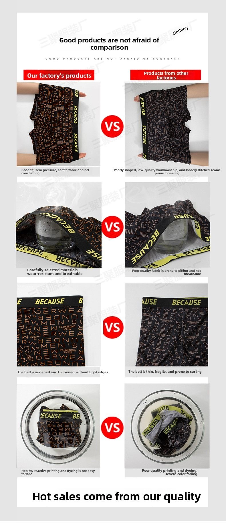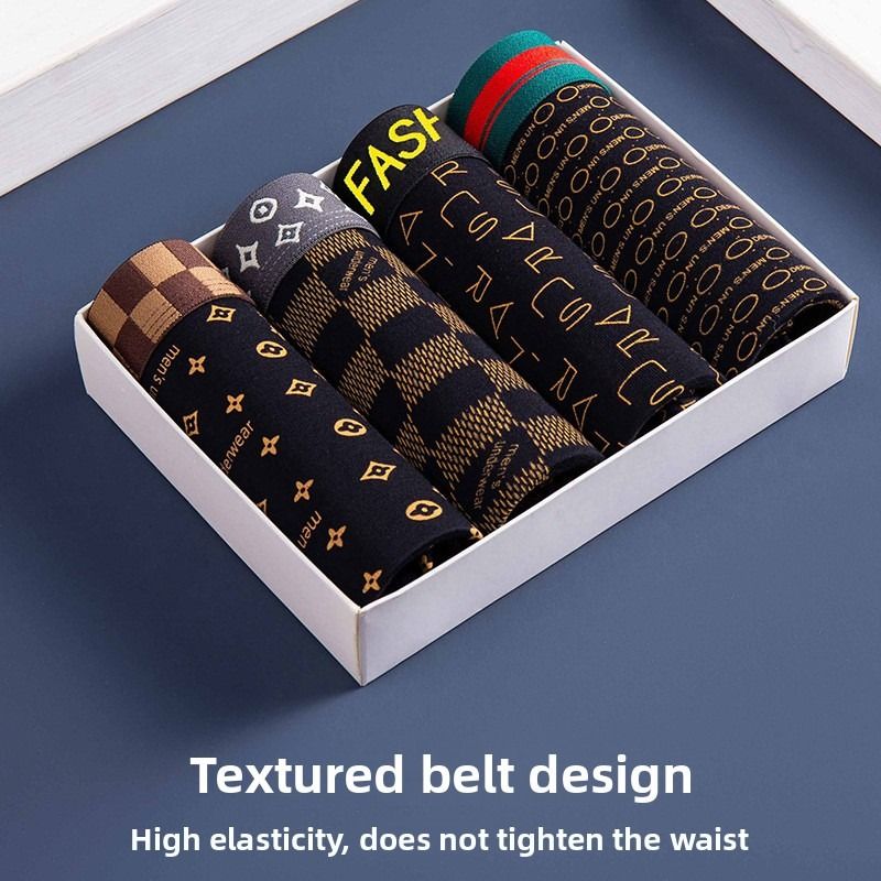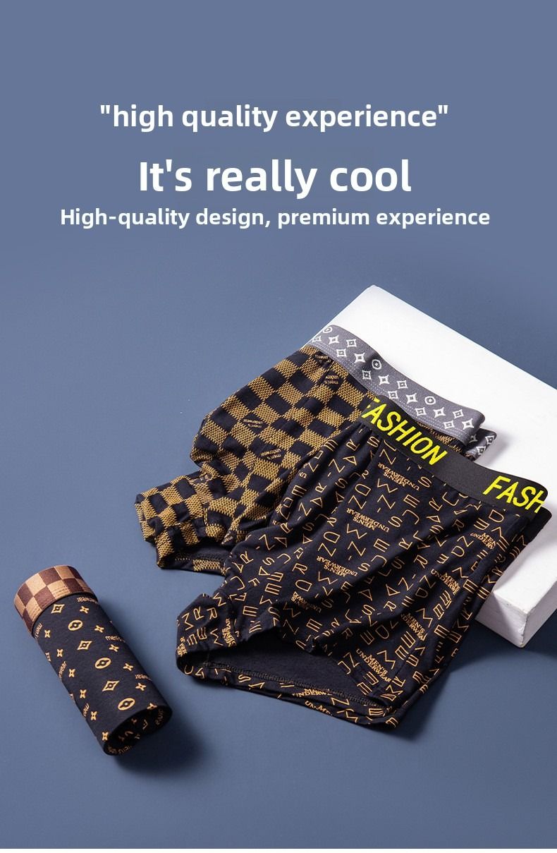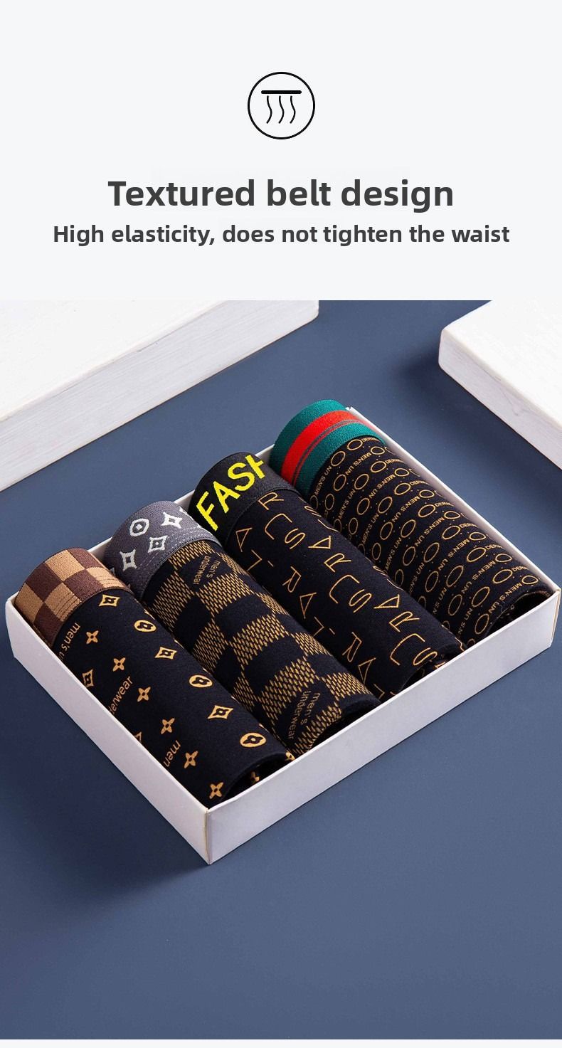 Men's Ice Silk Printed Underwear, Boxer Briefs, Breathable Thin Four-Corner Shorts for Young Men