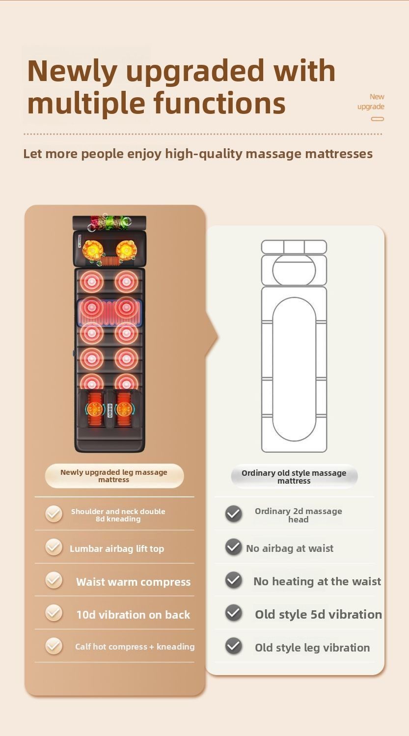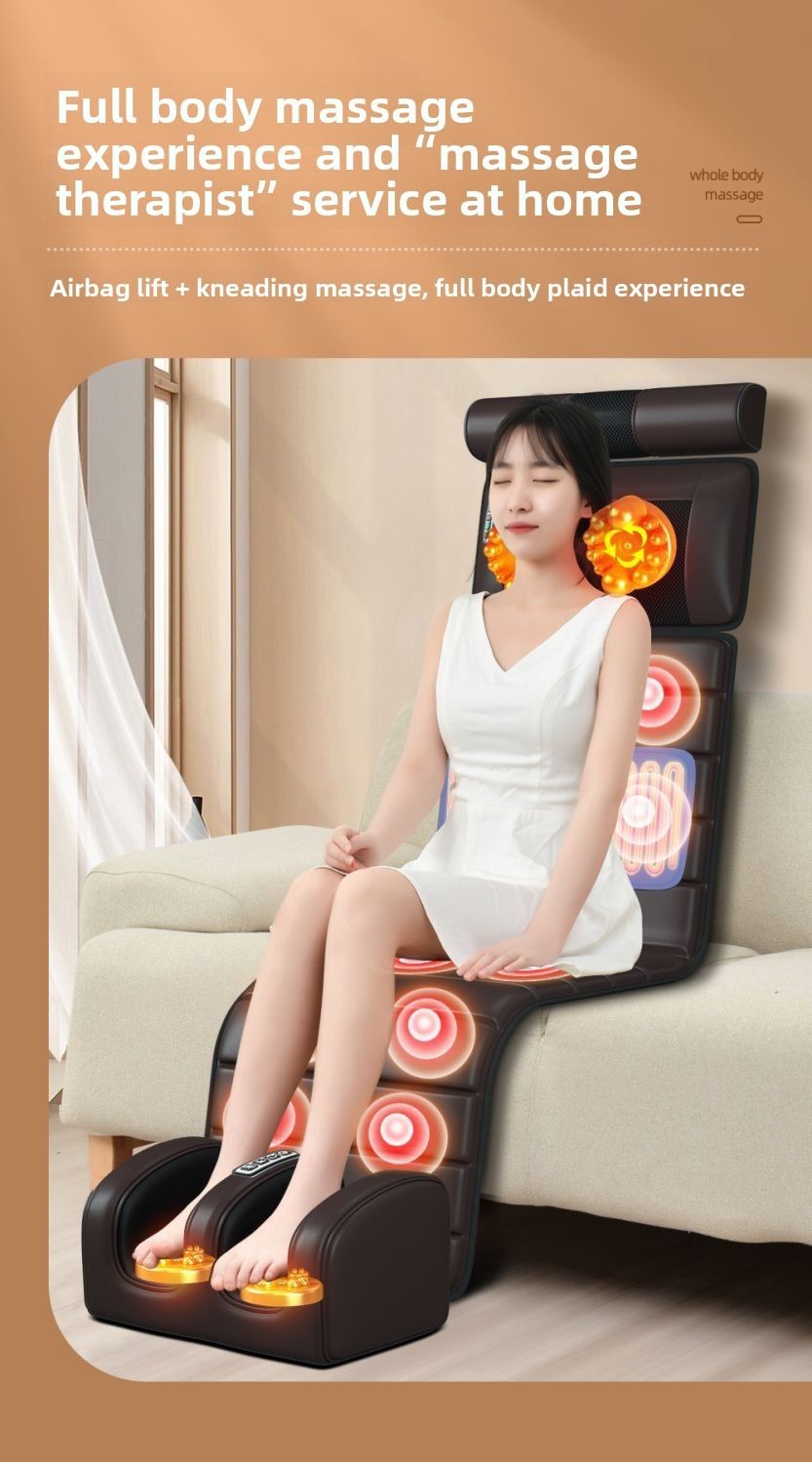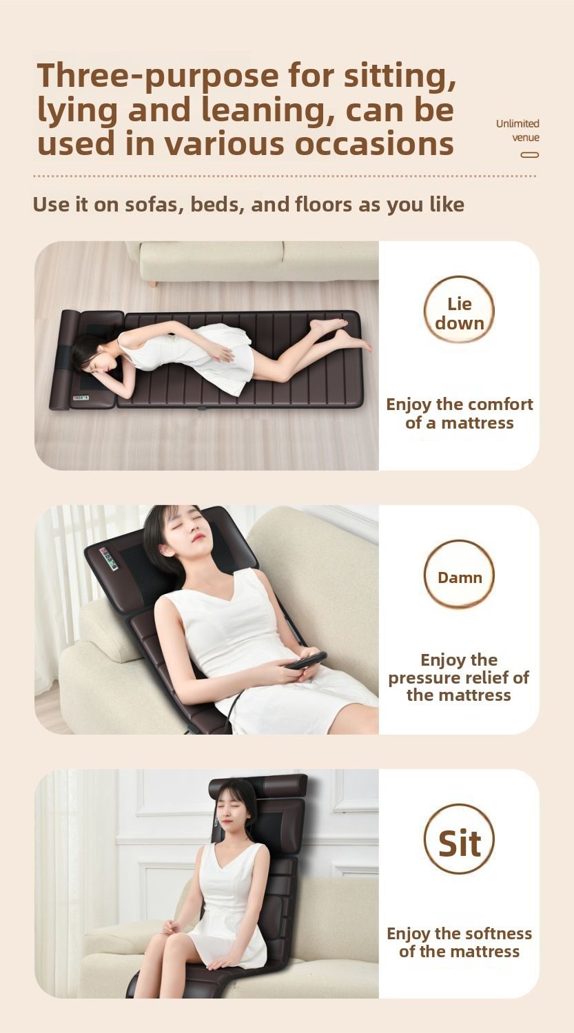 Multifunctional massage mattress with full-body kneading massager for neck, back, and waist, electric reclining cushion