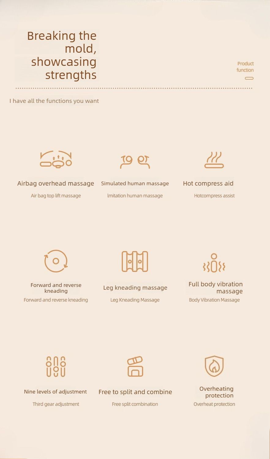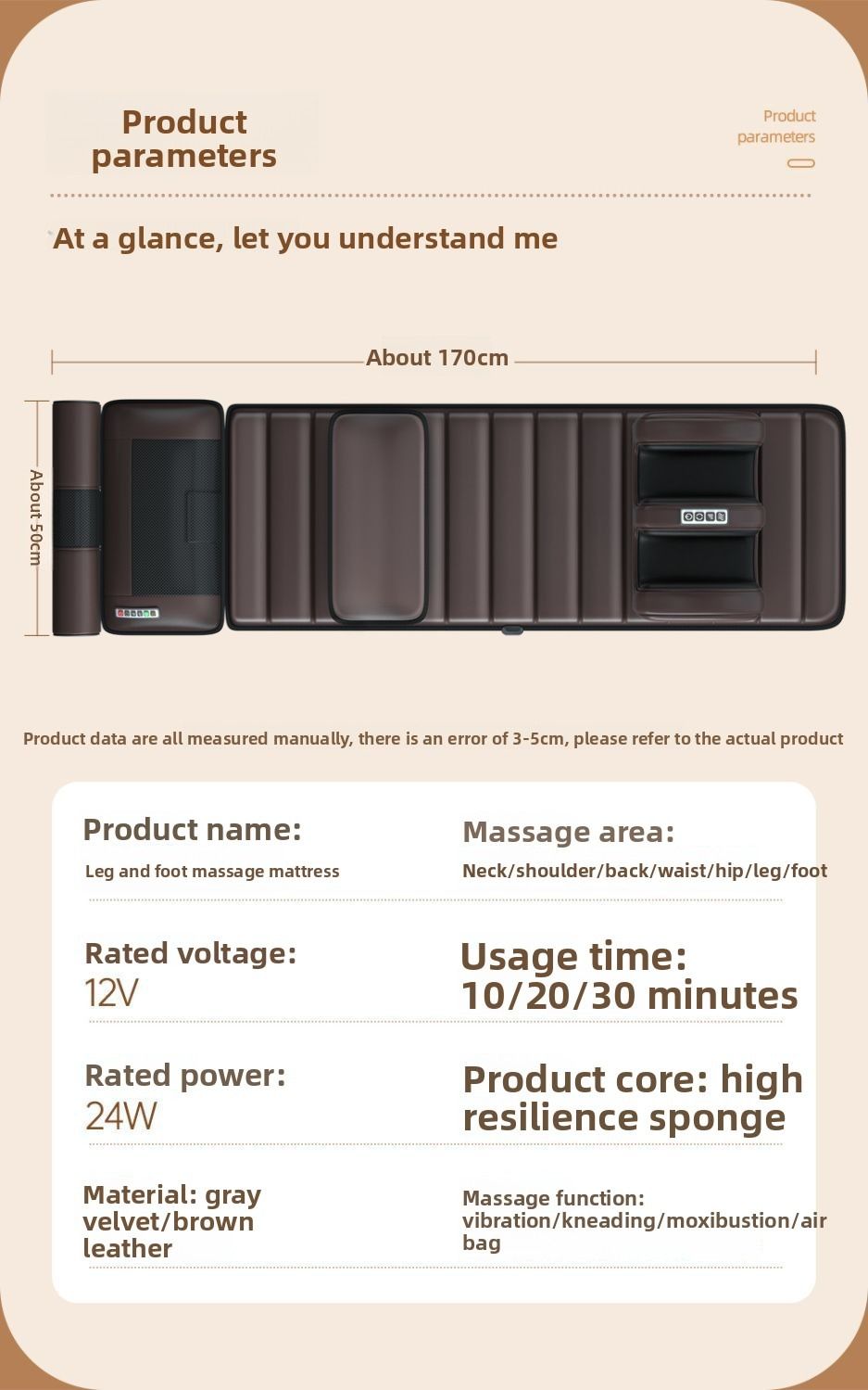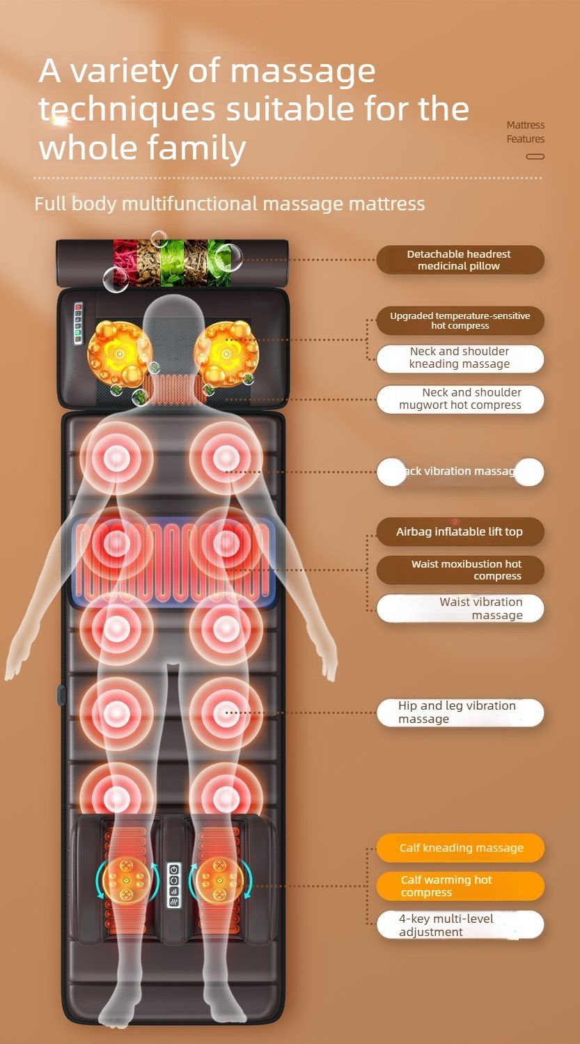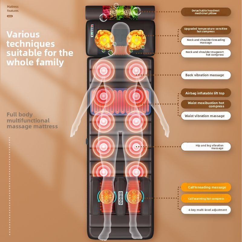 Multifunctional massage mattress with full-body kneading massager for neck, back, and waist, electric reclining cushion