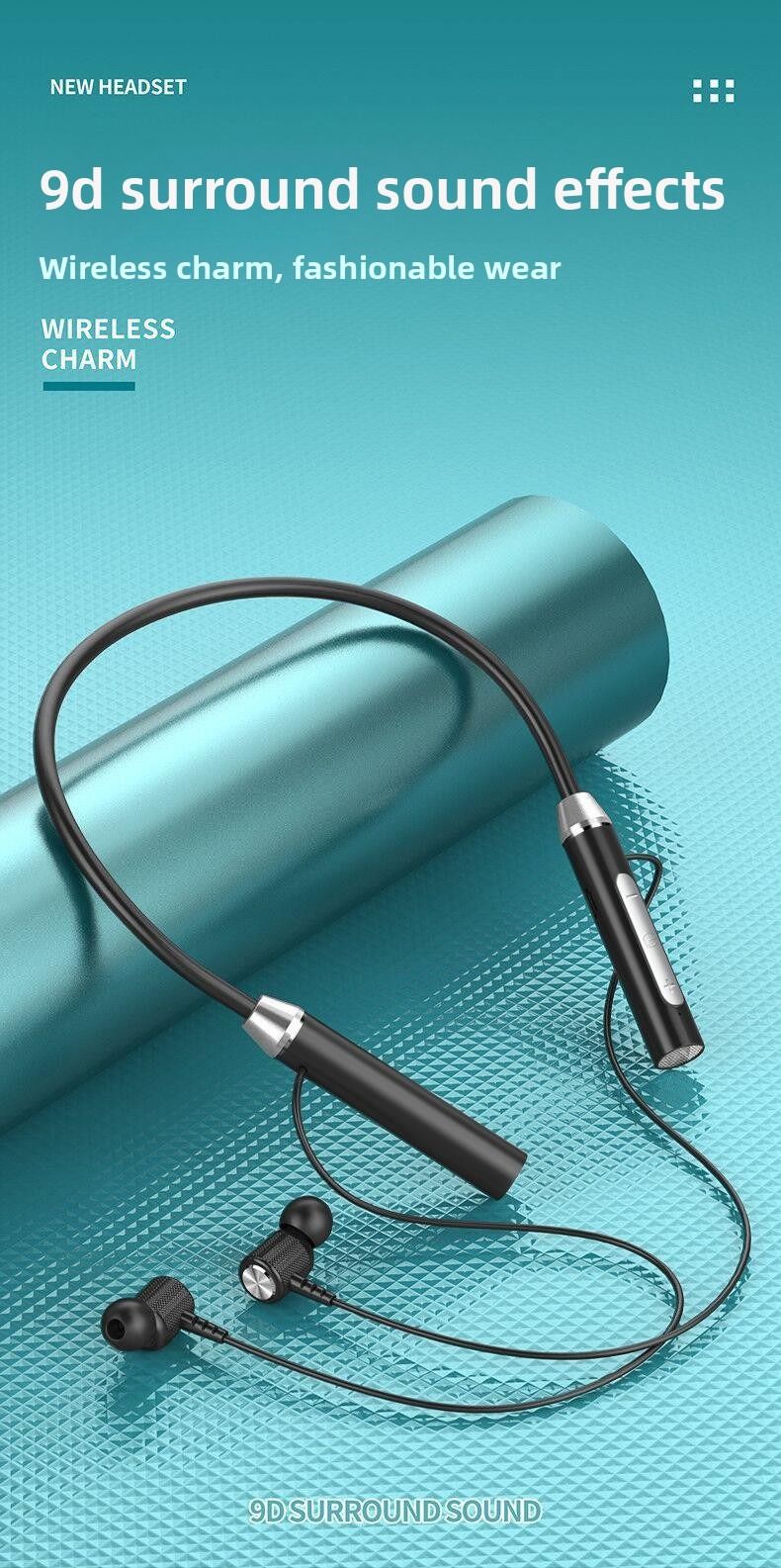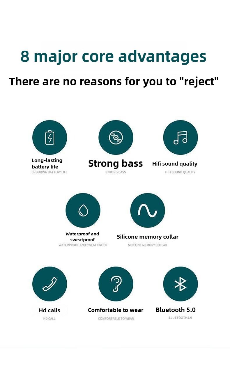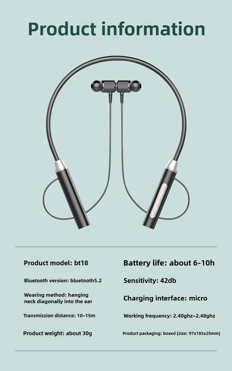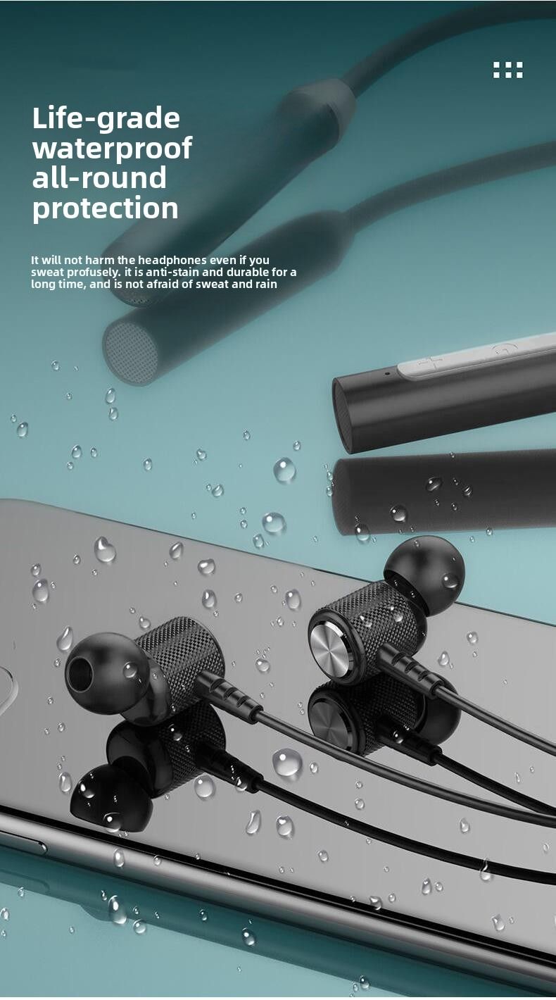 Neckband Stereo In-Ear Headphones for Sports and Running with Bluetooth and Long Standby Time