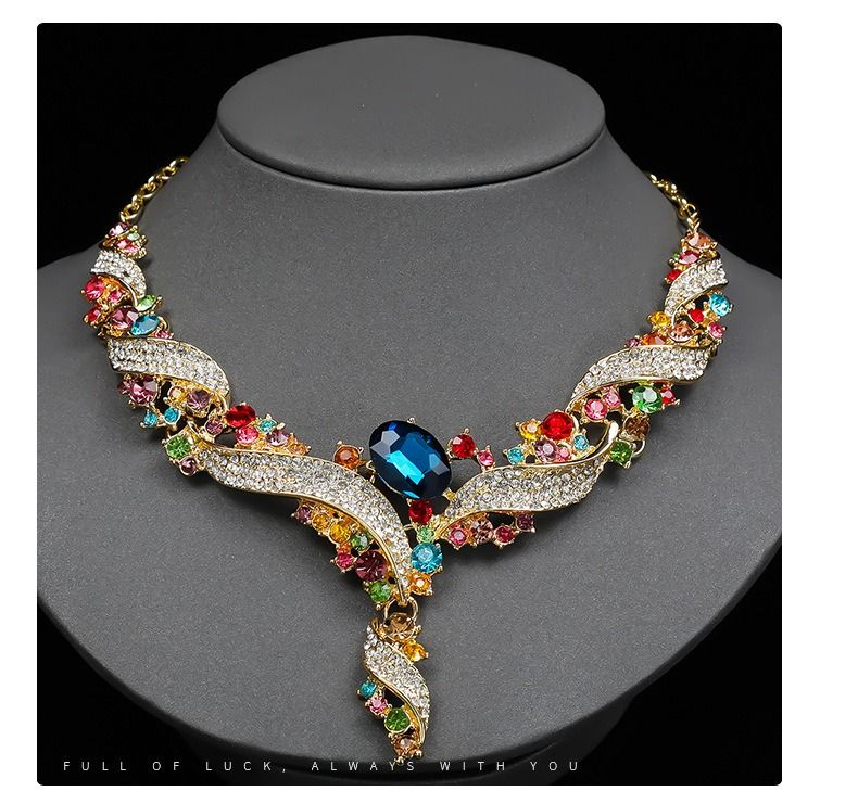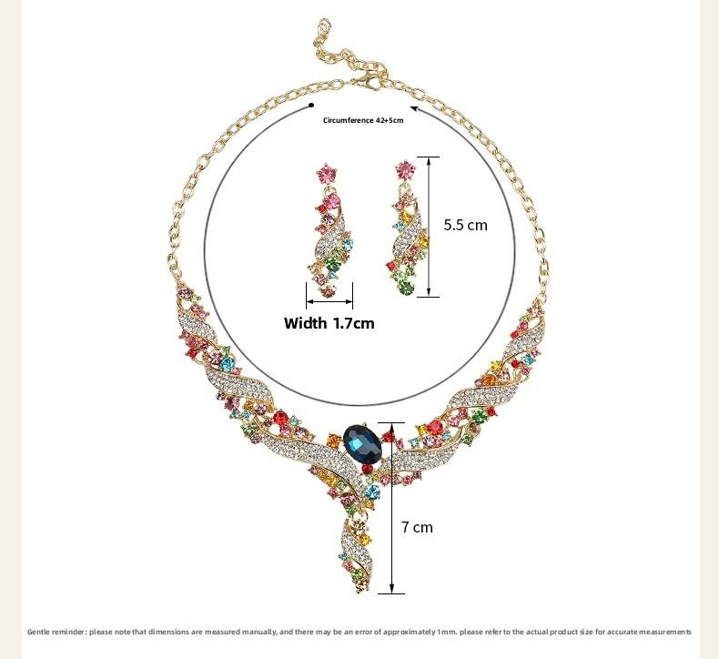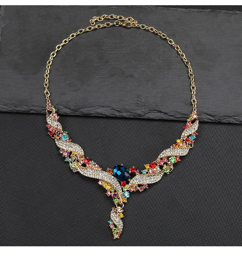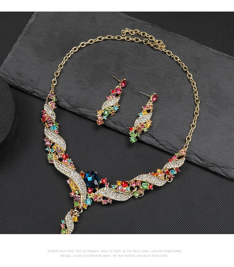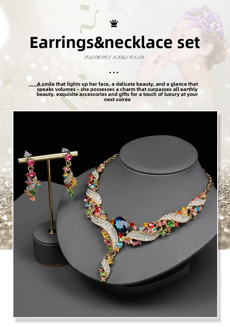 Necklace and earring set, clavicle chain, dress accessory, retro fashion, colorful jewelry