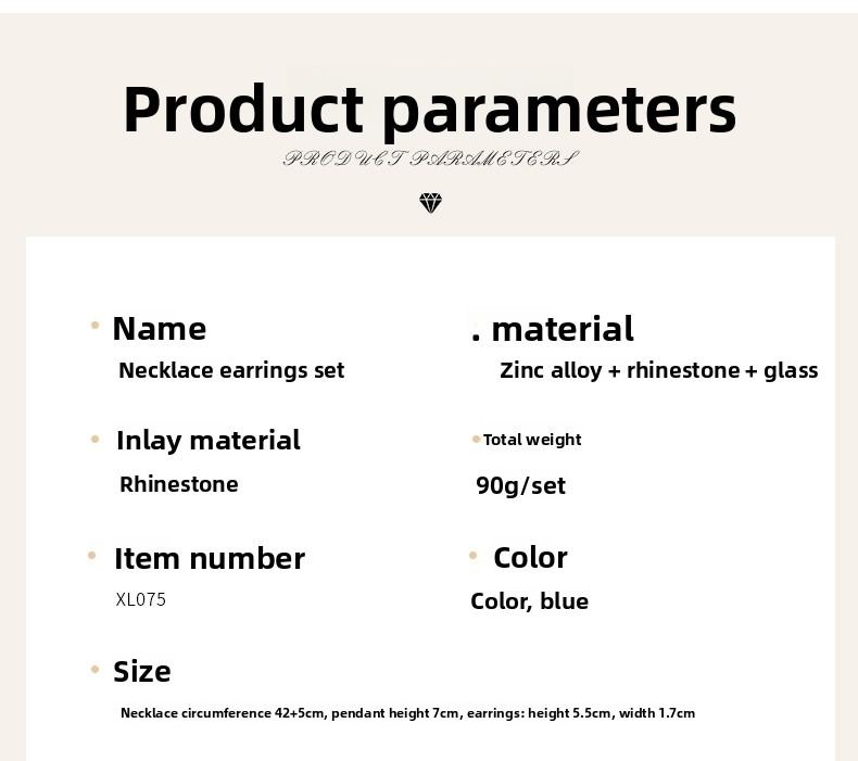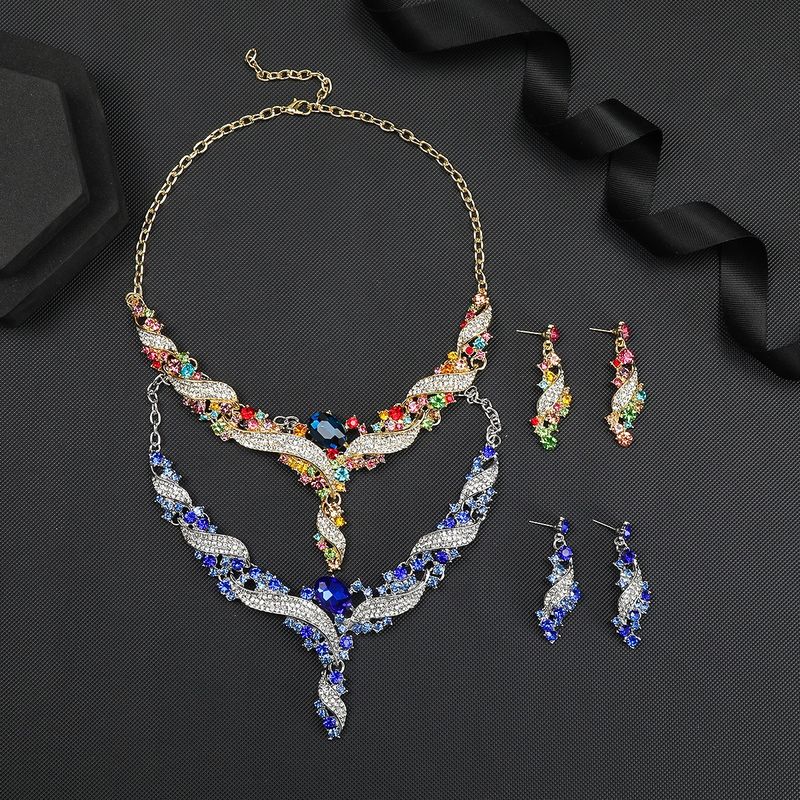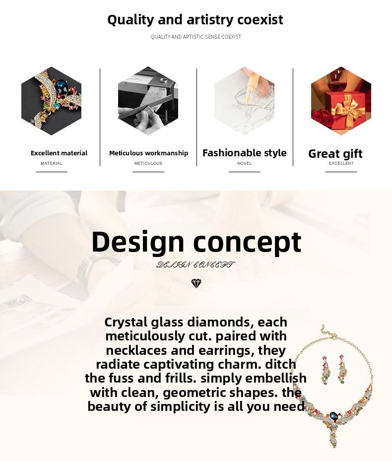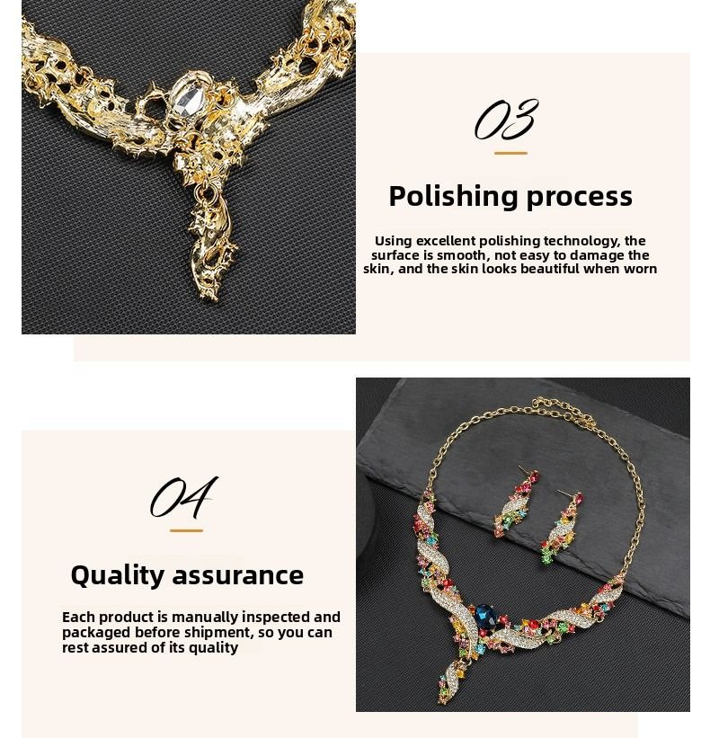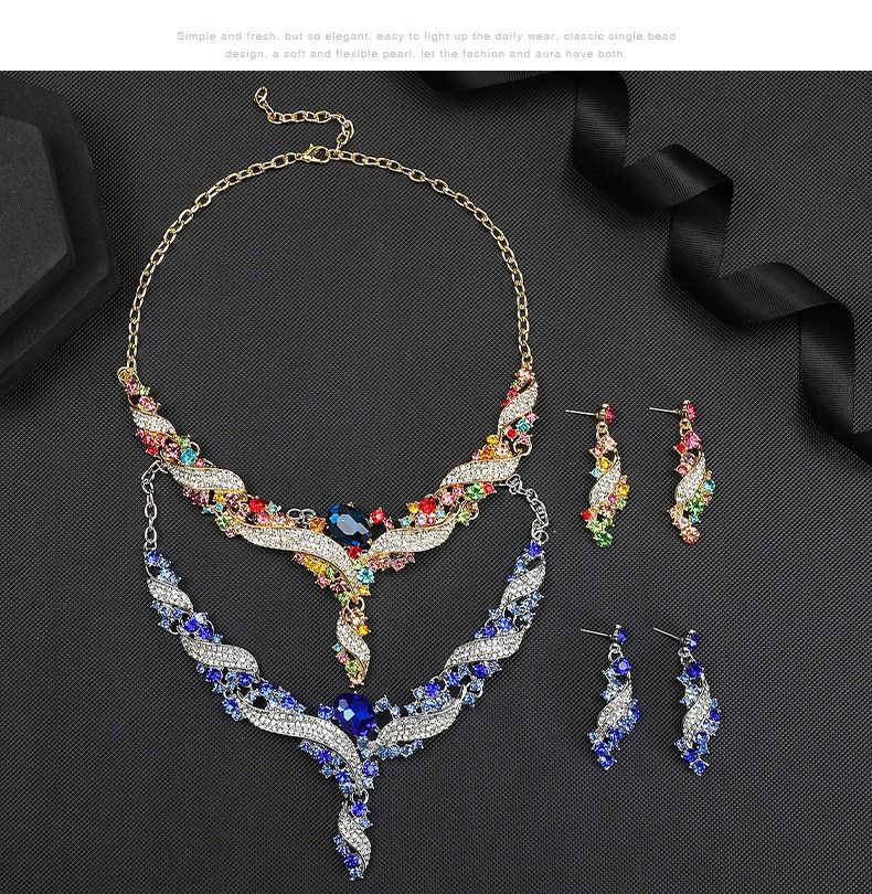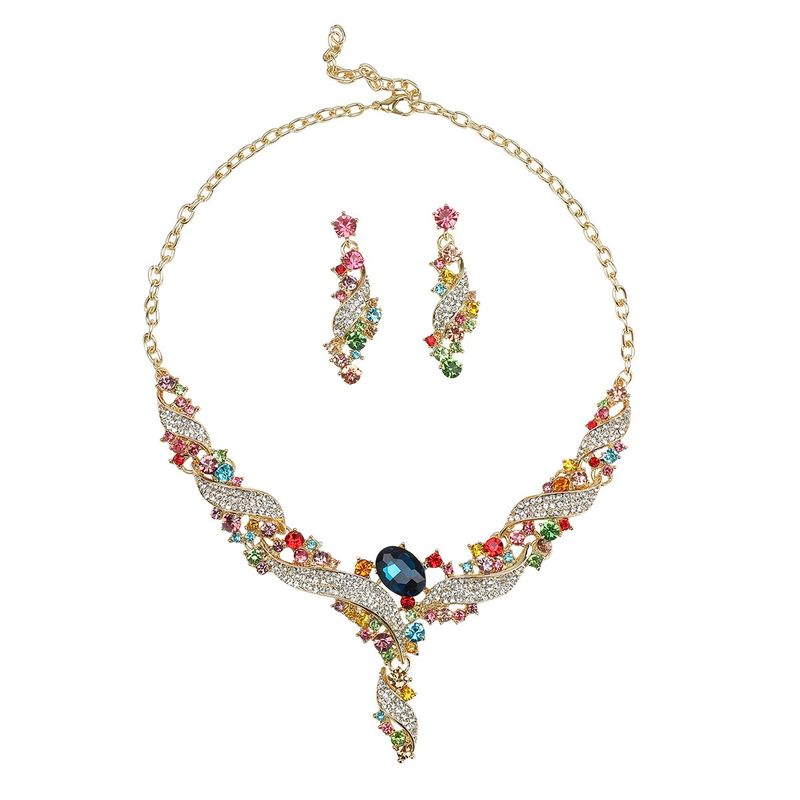 Necklace and earring set, clavicle chain, dress accessory, retro fashion, colorful jewelry