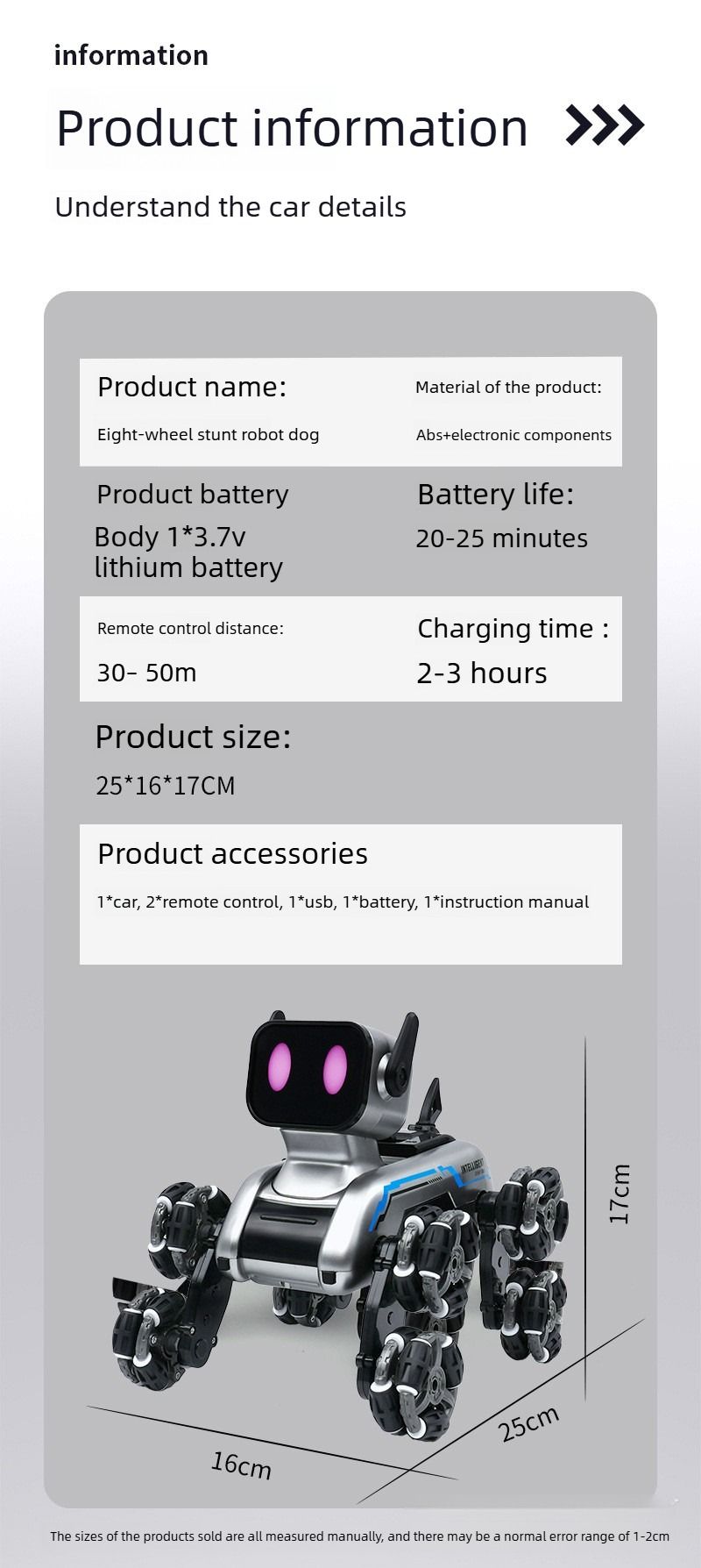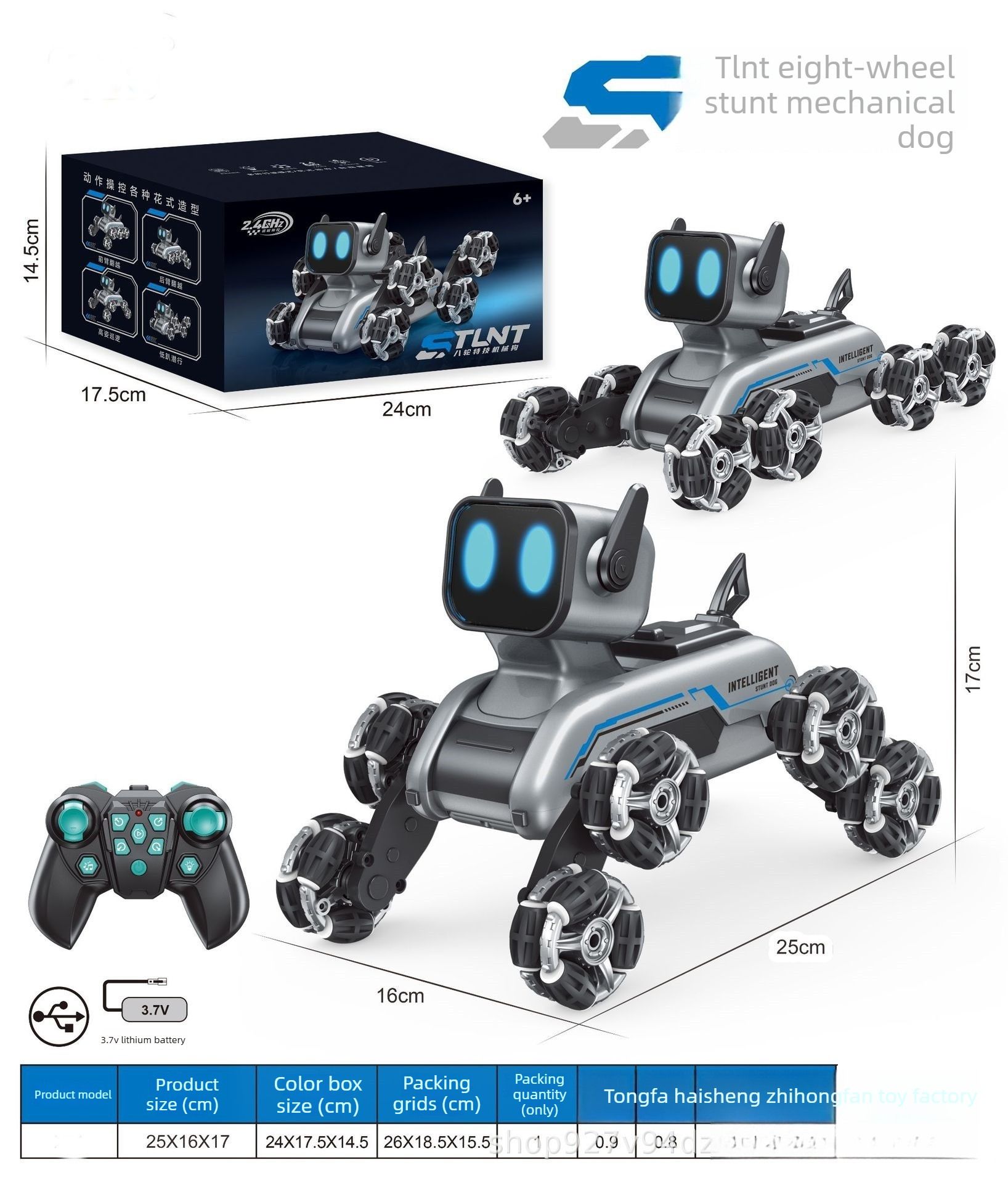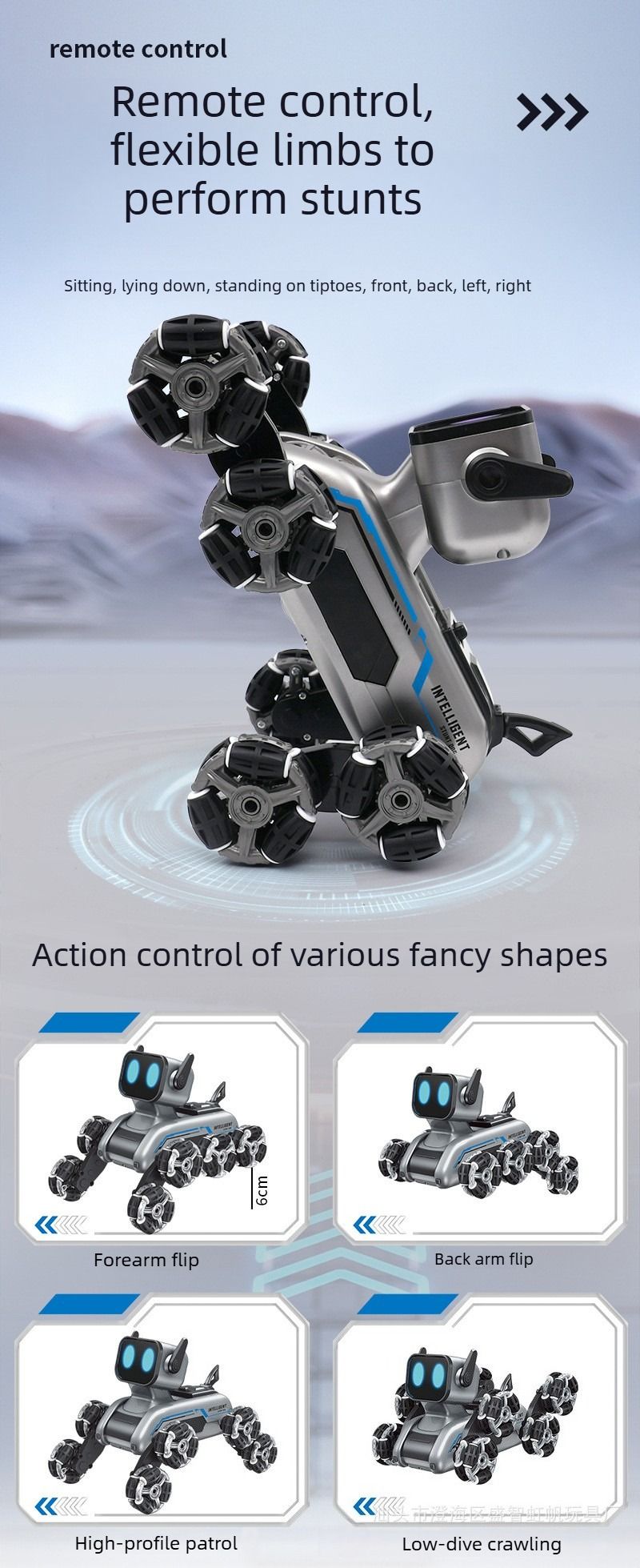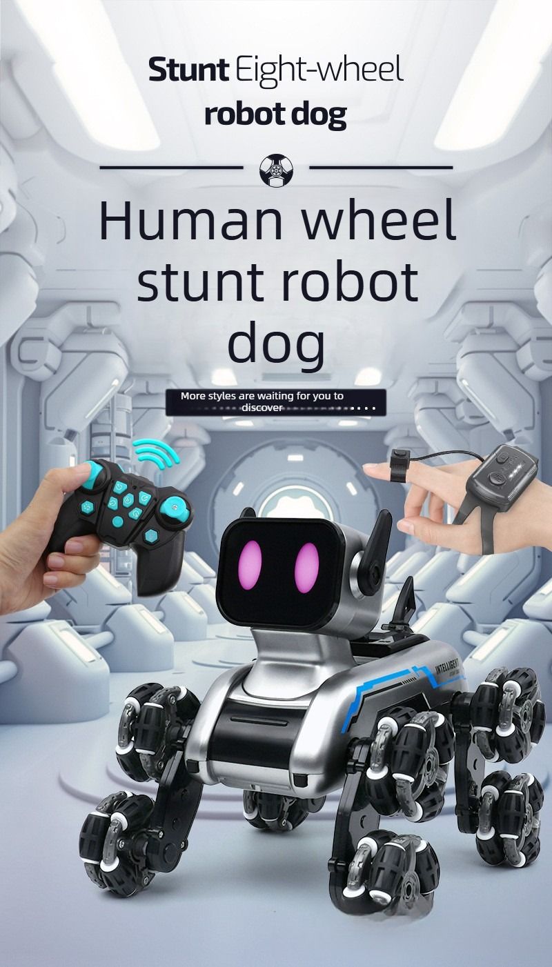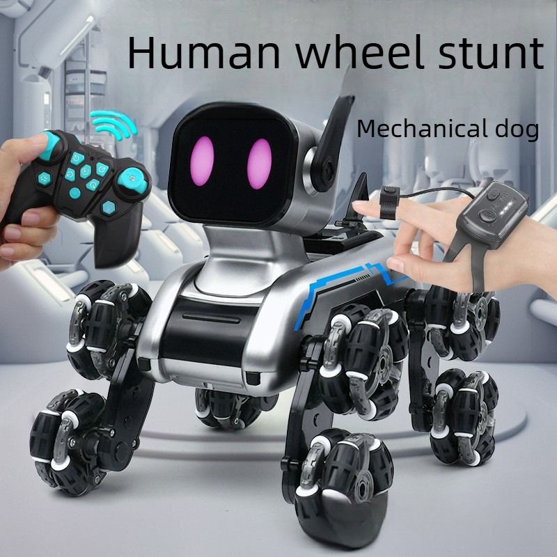 New children's remote control car, eight-wheeled stunt mechanical dog, swing arm climbing off-road vehicle, electronic music robot dog toy.