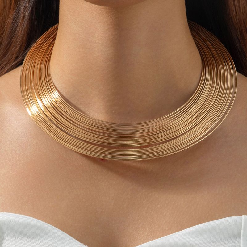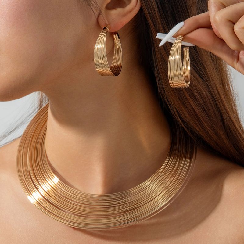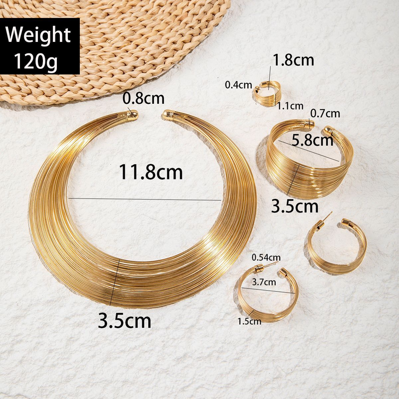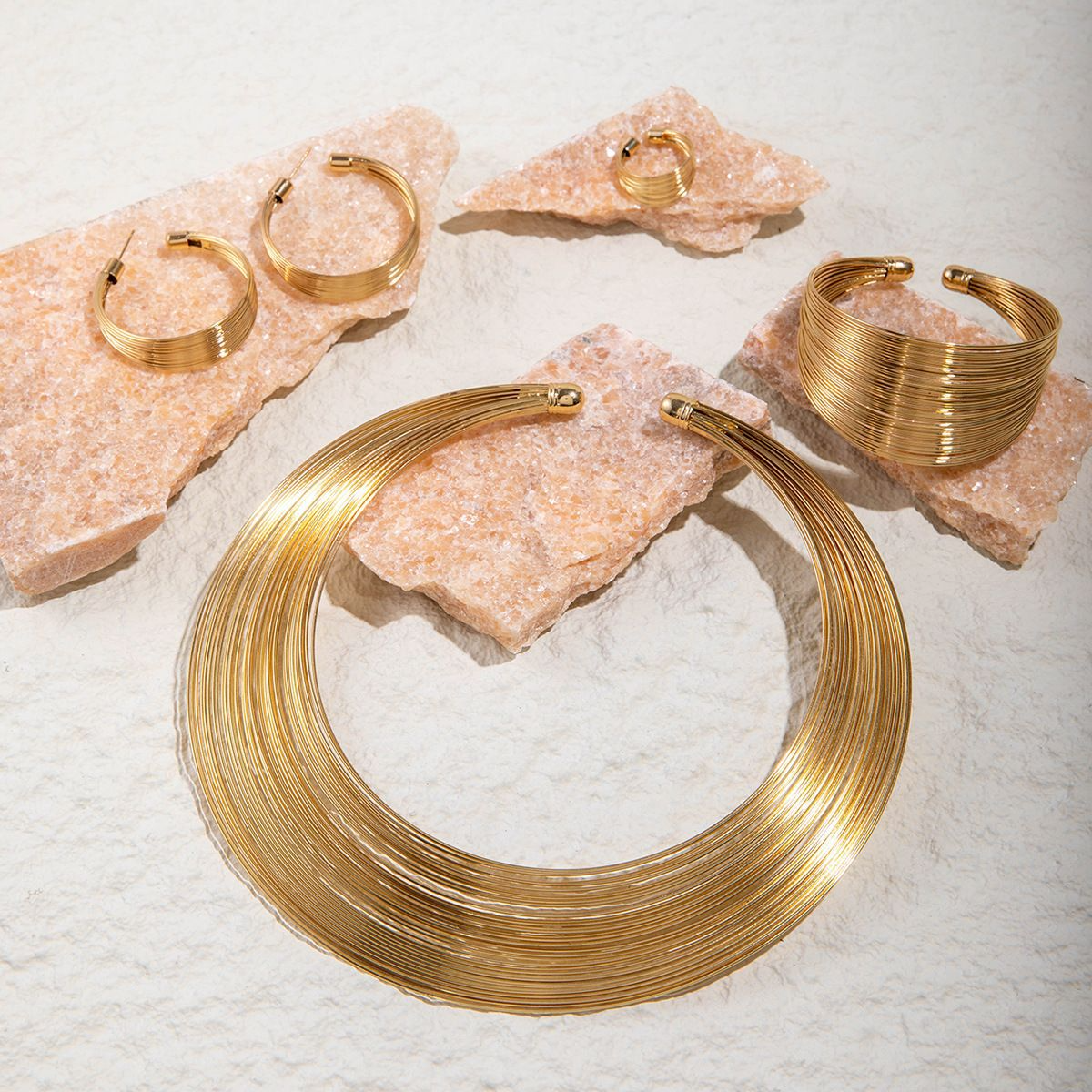 Personalized multi-layered iron elastic snake bone braided choker bracelet punk style exaggerated jewelry set for women