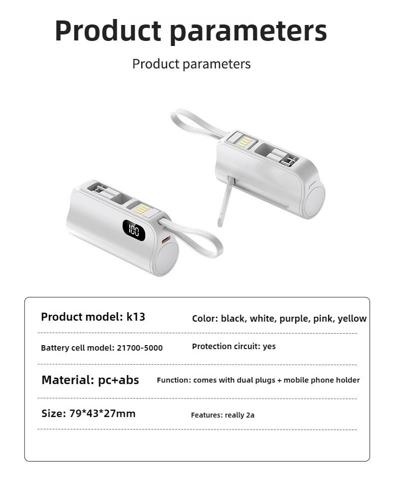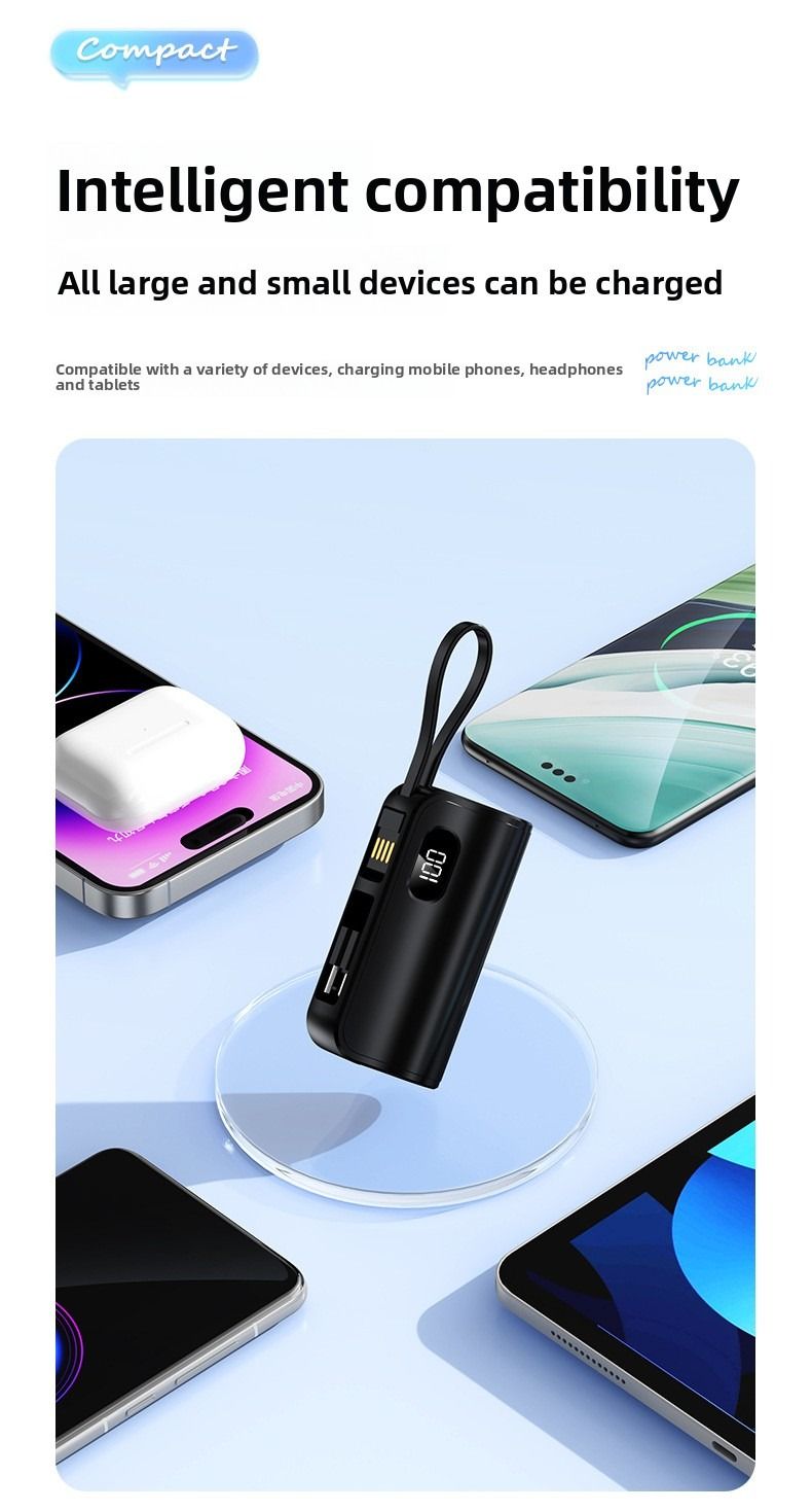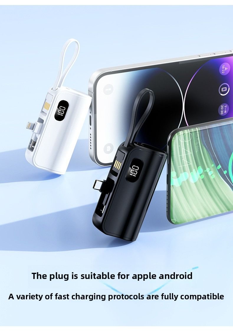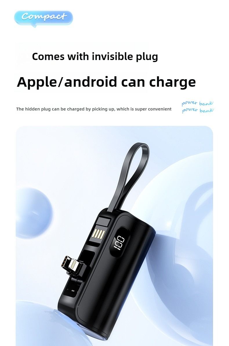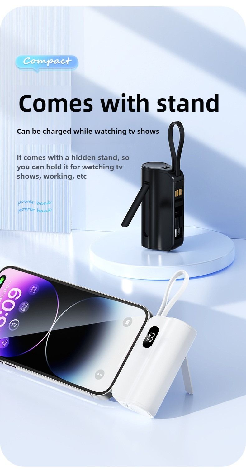 Pocket Capsule Mini Power Bank Portable Power Bank with Built-in Cable Stand