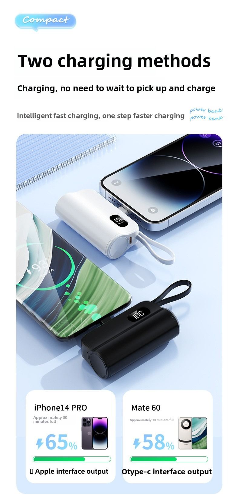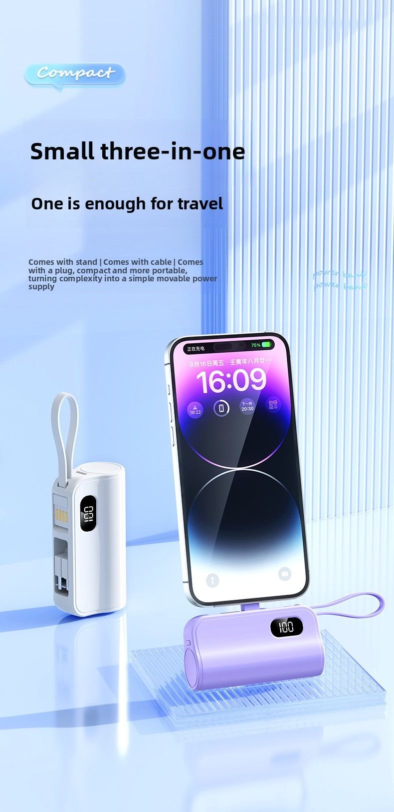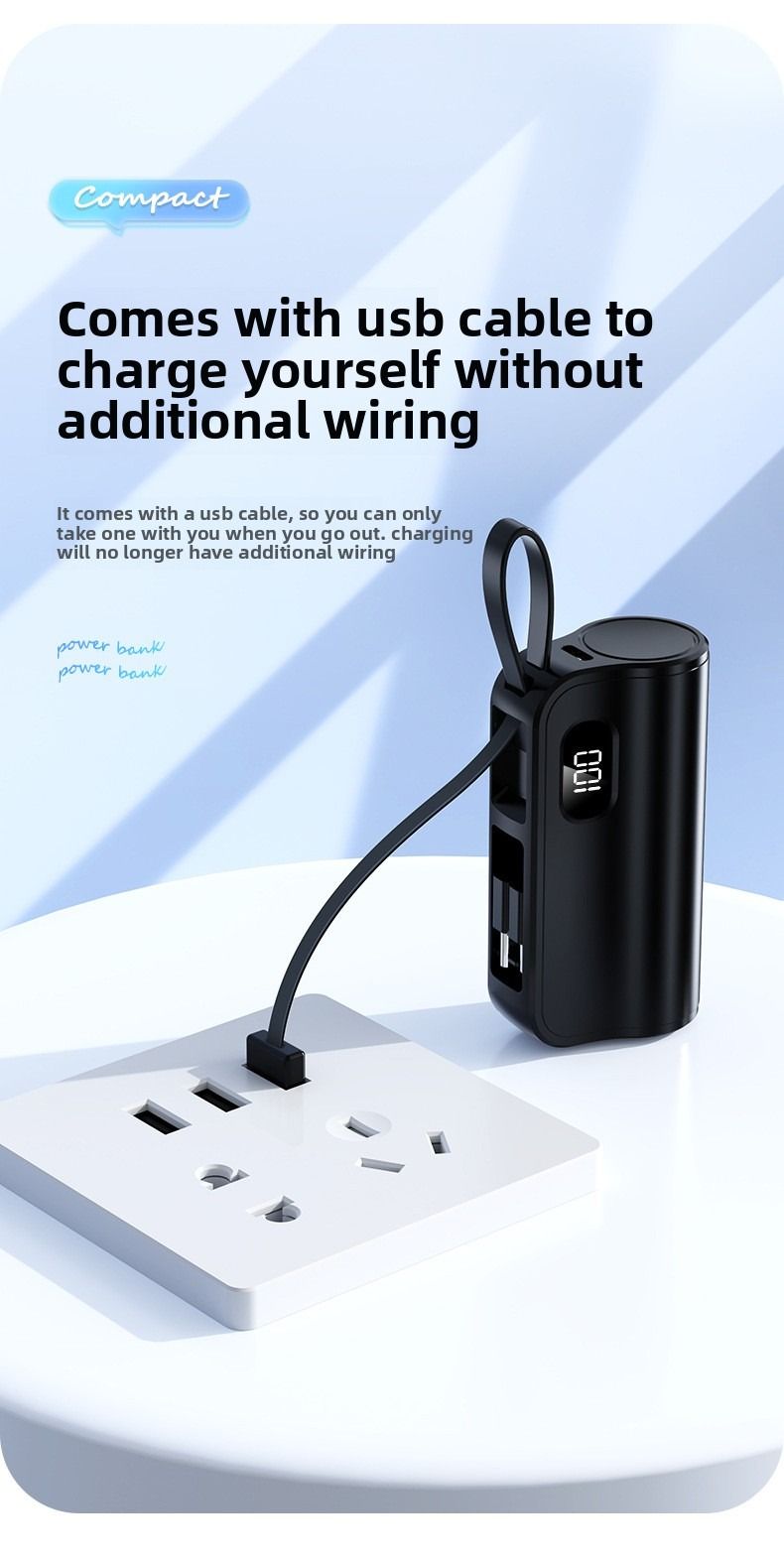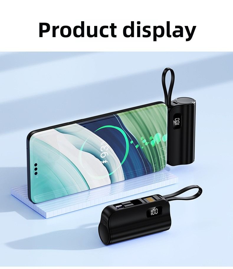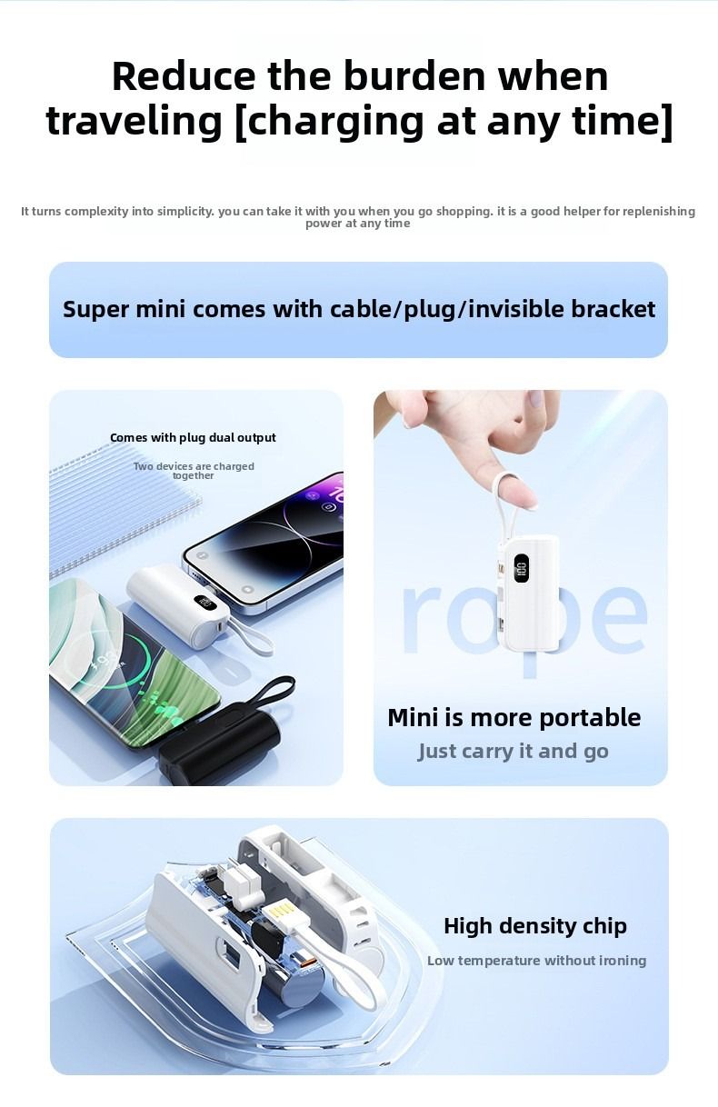 Pocket Capsule Mini Power Bank Portable Power Bank with Built-in Cable Stand