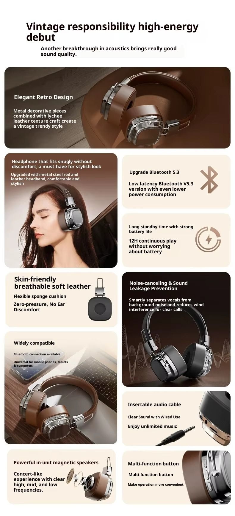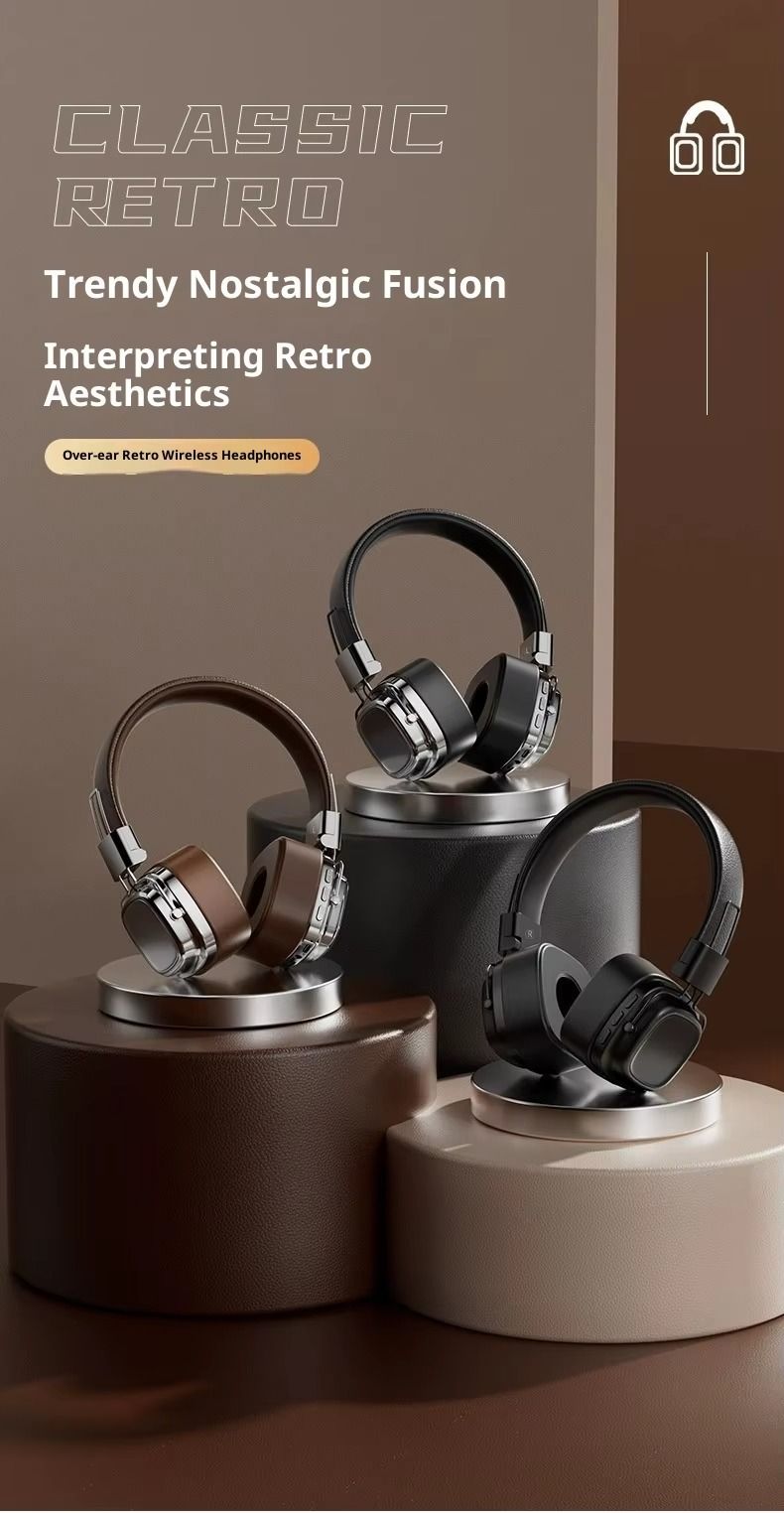 Retro-style over-ear headphones, Marshall true wireless Bluetooth headphones, heavy bass, noise cancellation, high-fidelity headset.