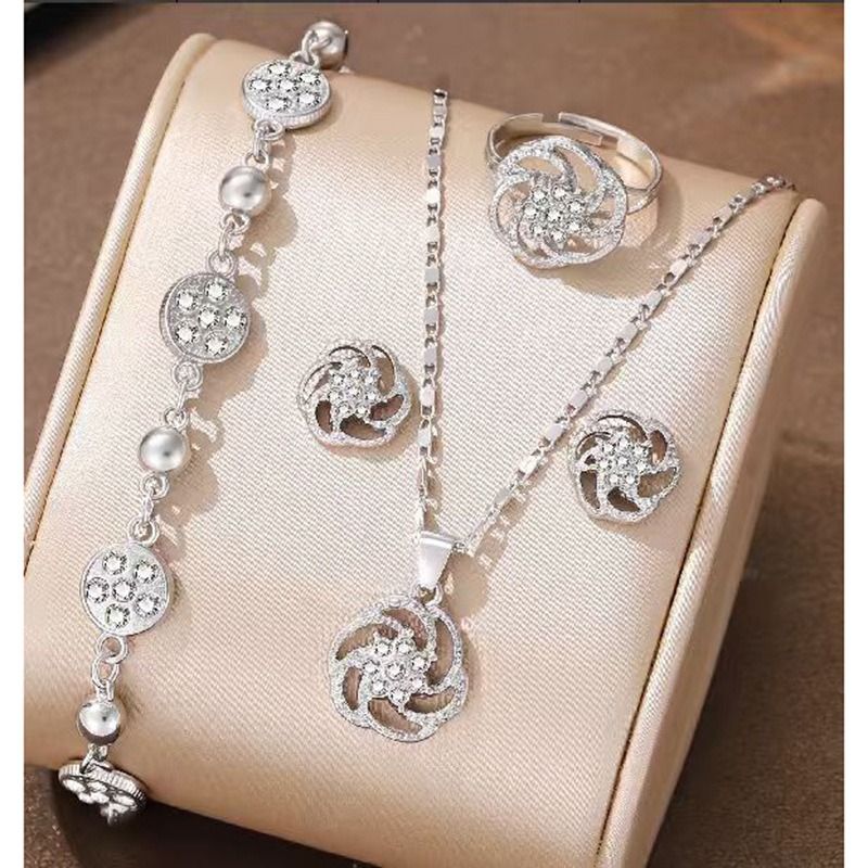 Snowflake necklace, bracelet, ring, and earring set - European and American minimalist jewelry accessories (multiple pieces)