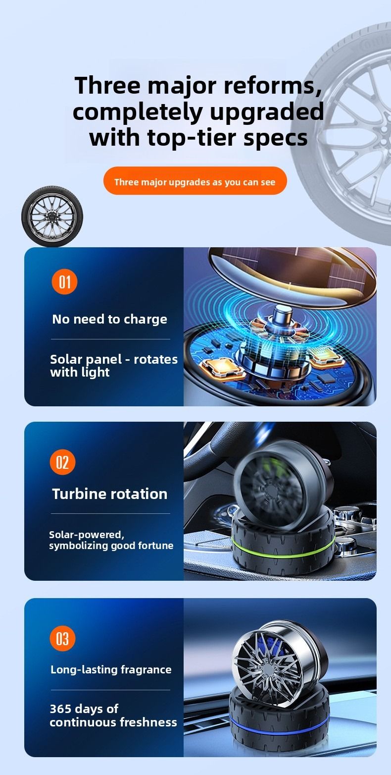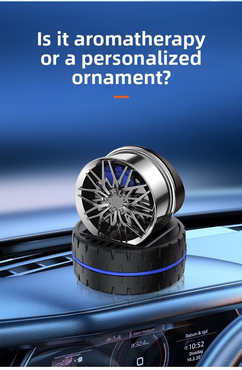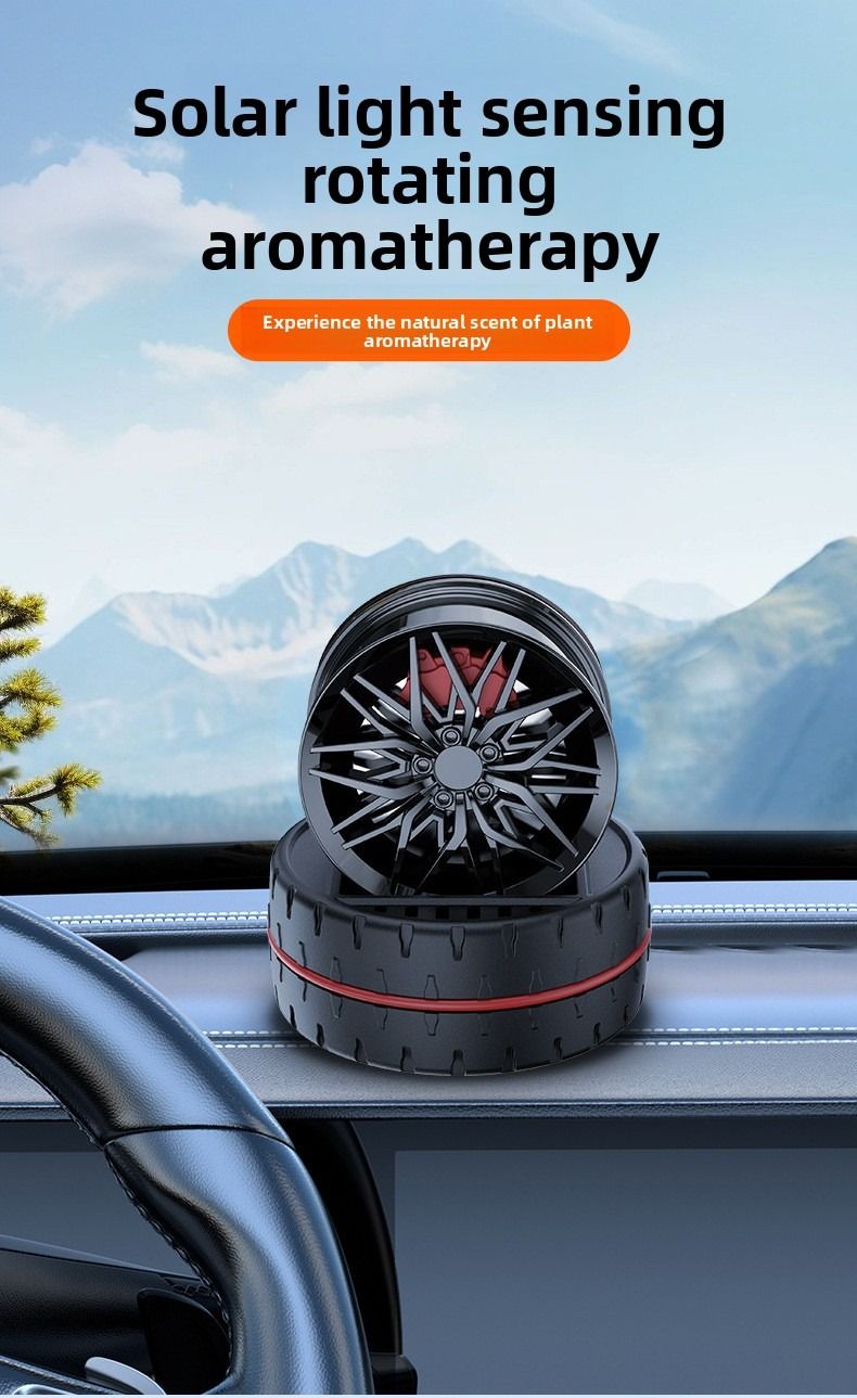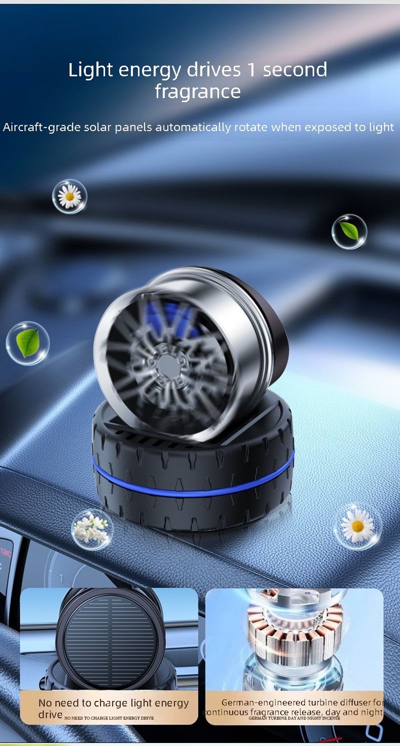 Solar-Powered Car Aromatherapy Diffuser with Rotating Hubcap, Fragrant Car Decor for Men, High-End Center Console Decoration