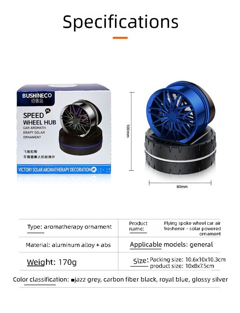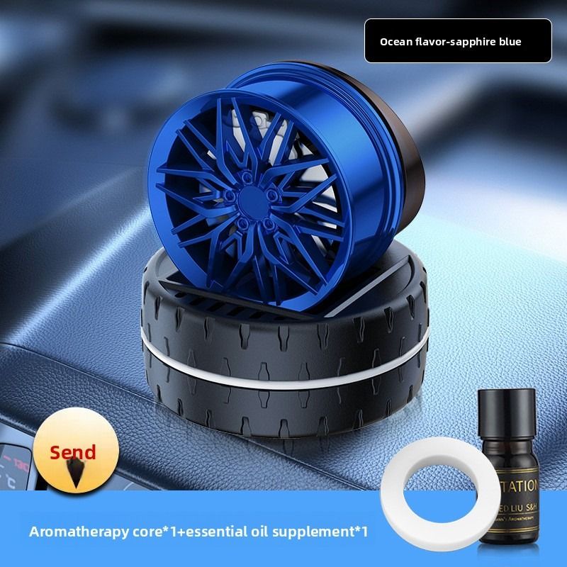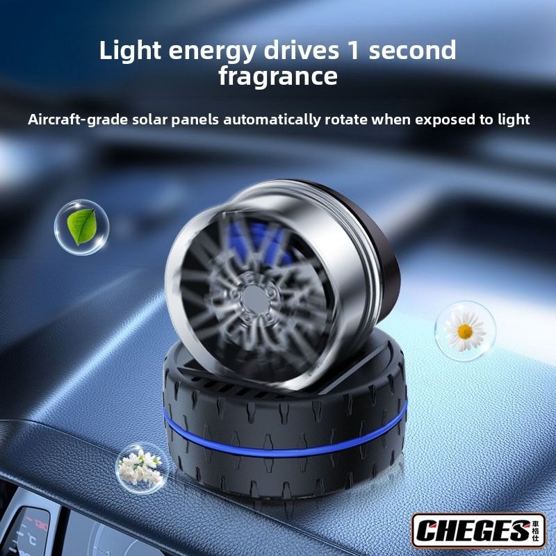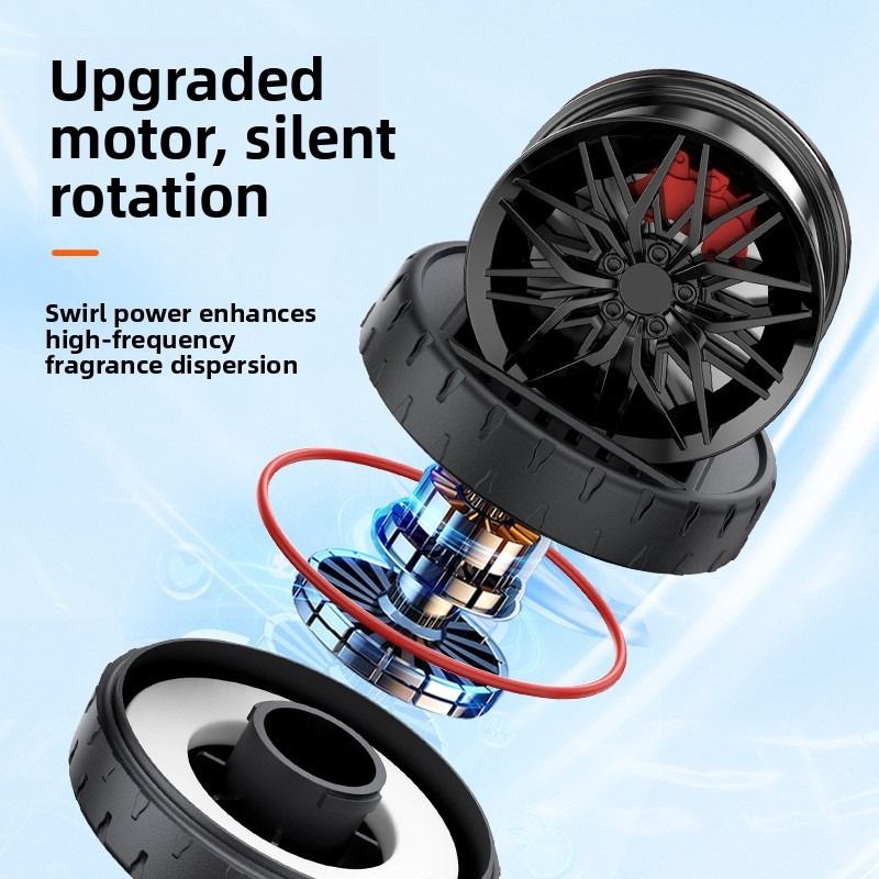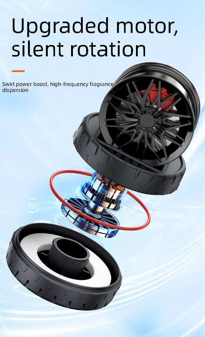 Solar-Powered Car Aromatherapy Diffuser with Rotating Hubcap, Fragrant Car Decor for Men, High-End Center Console Decoration