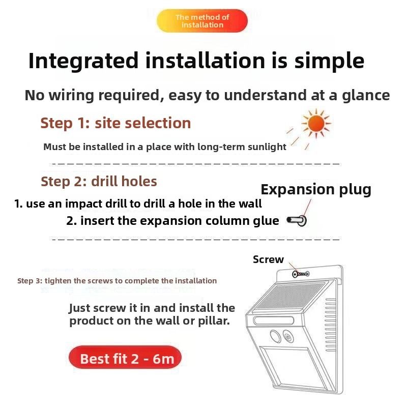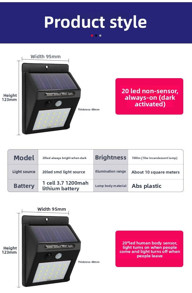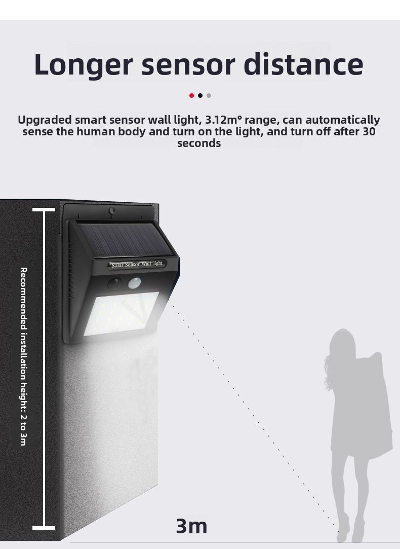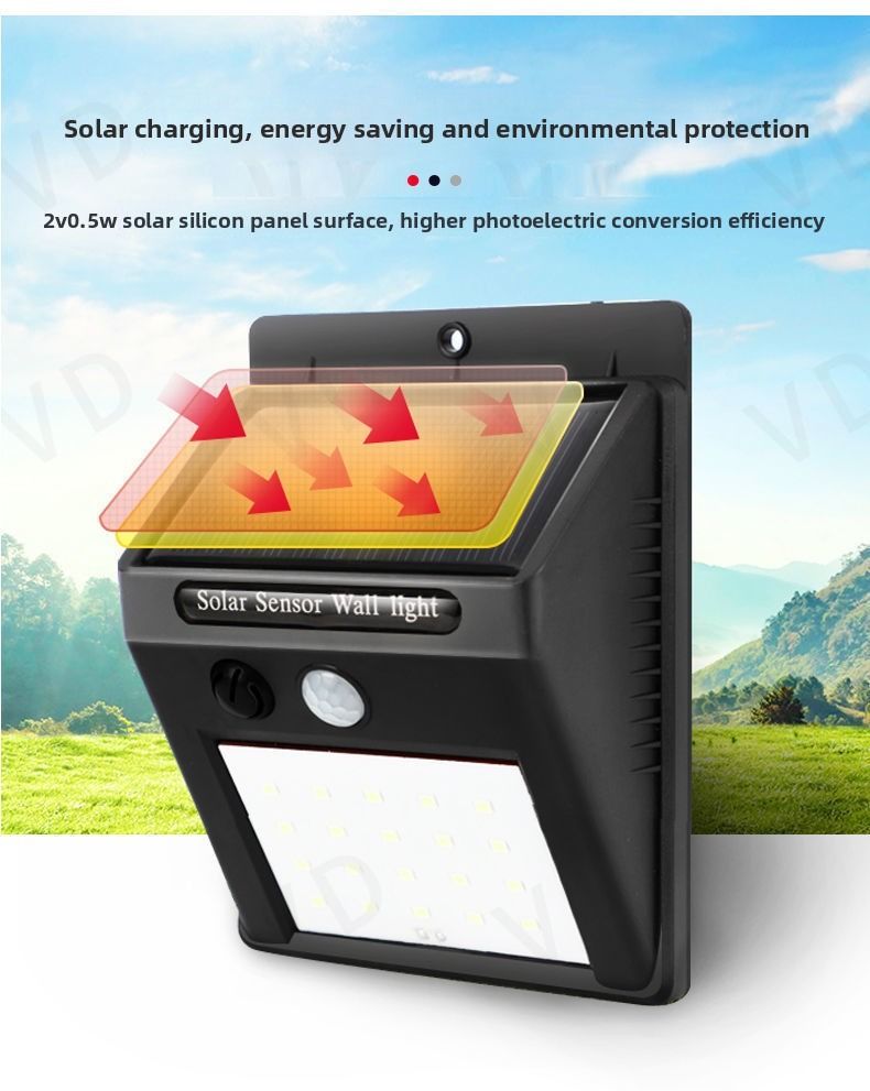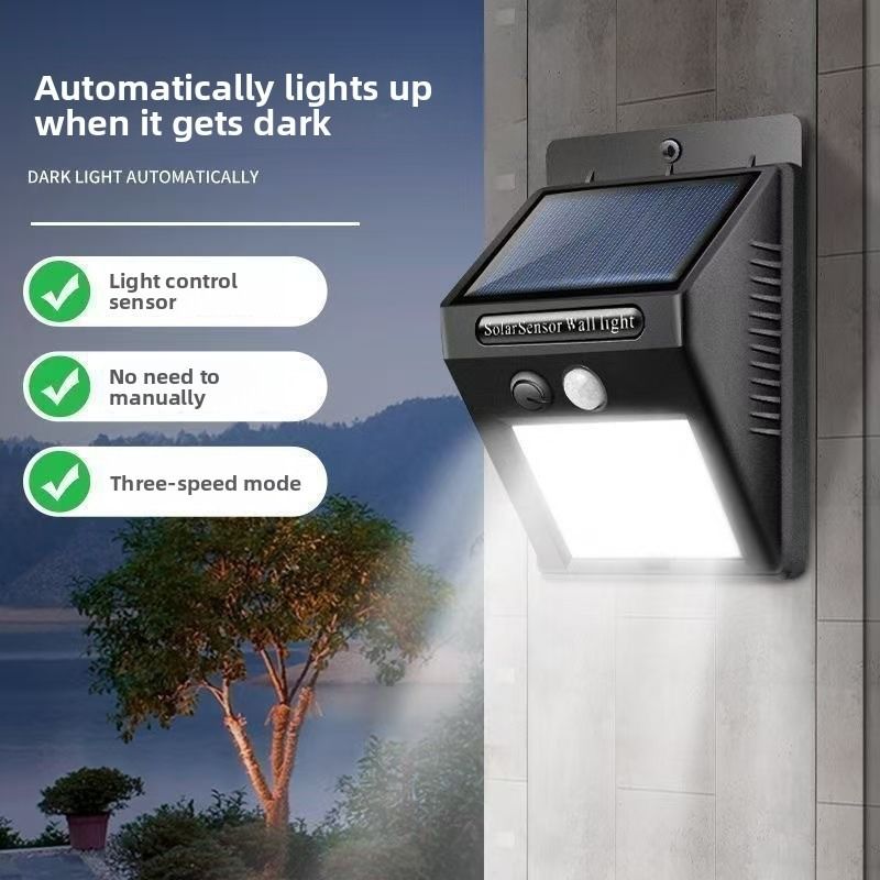 Solar wall light for home and yard use, motion-sensor lighting, outdoor waterproof LED high-intensity wall street light