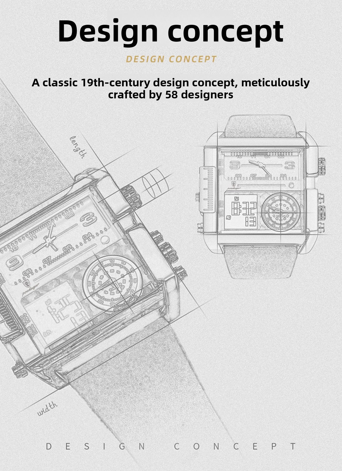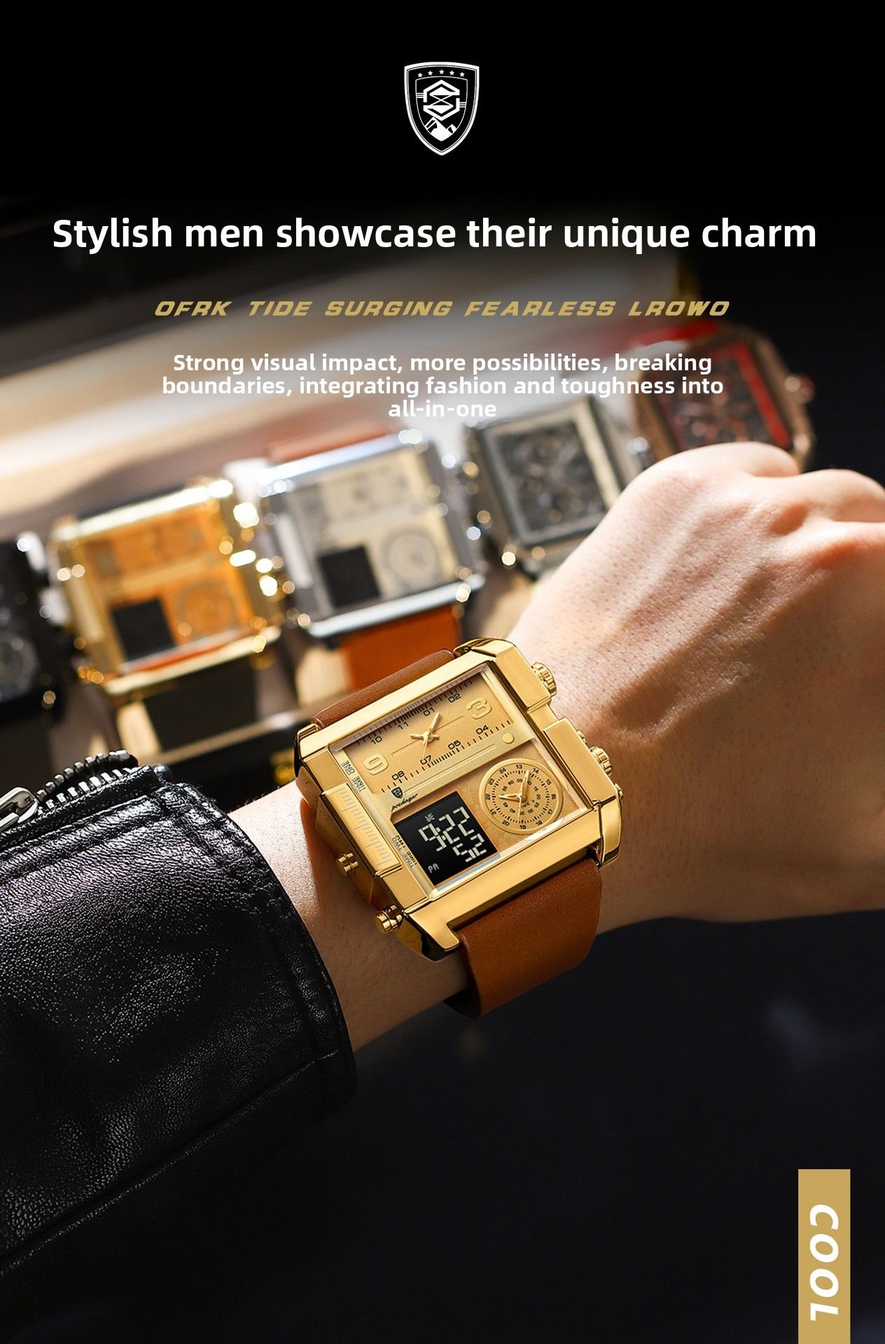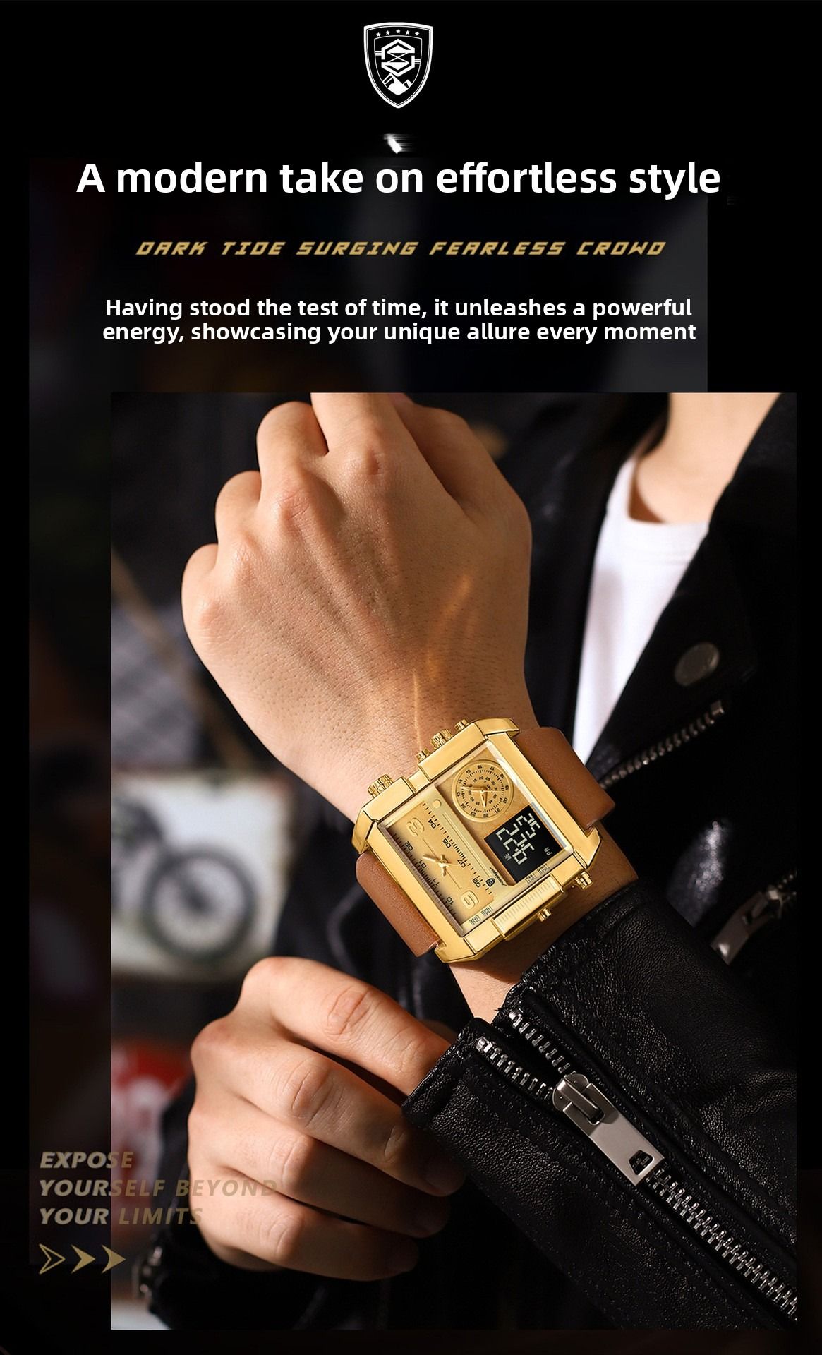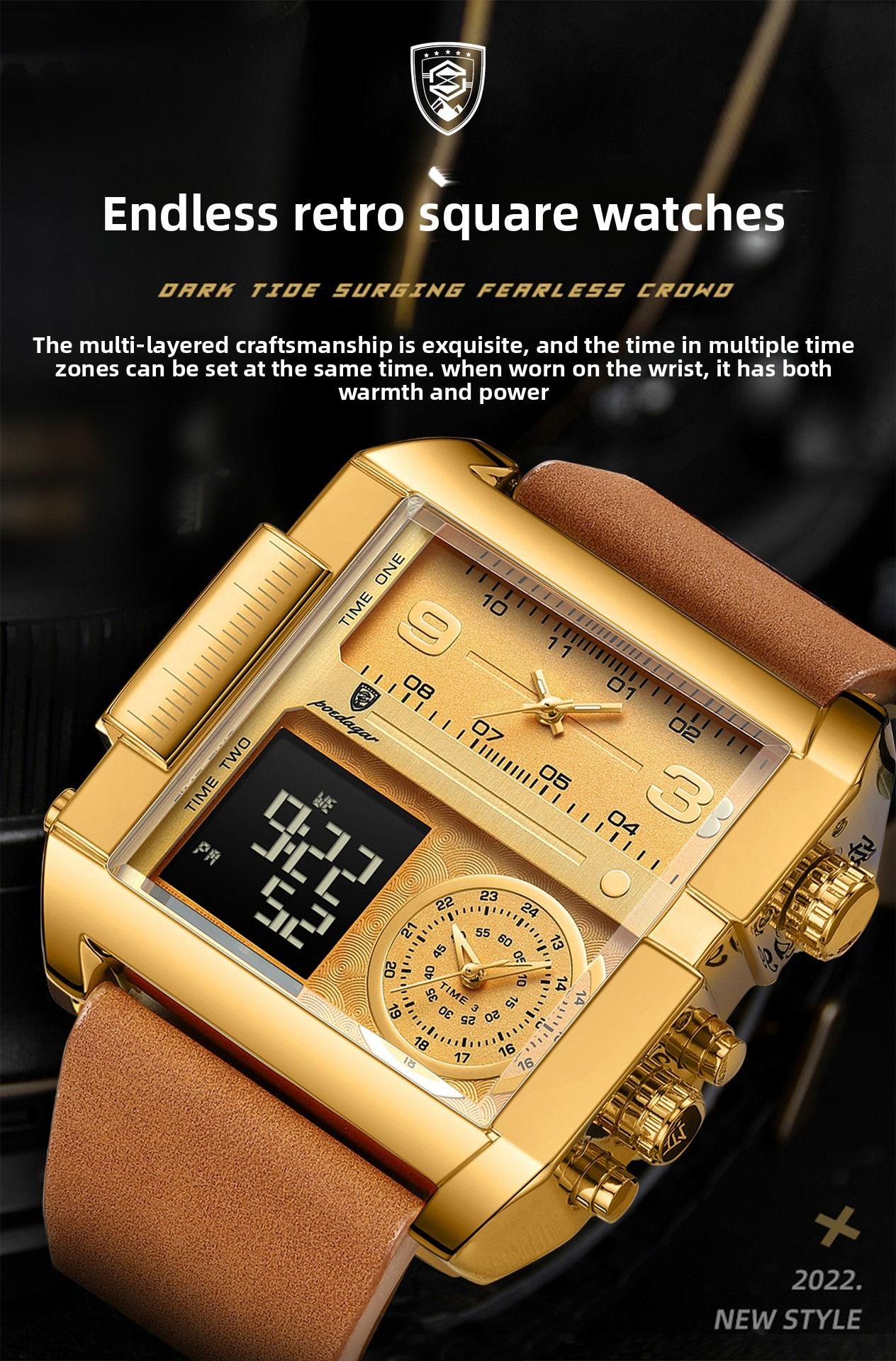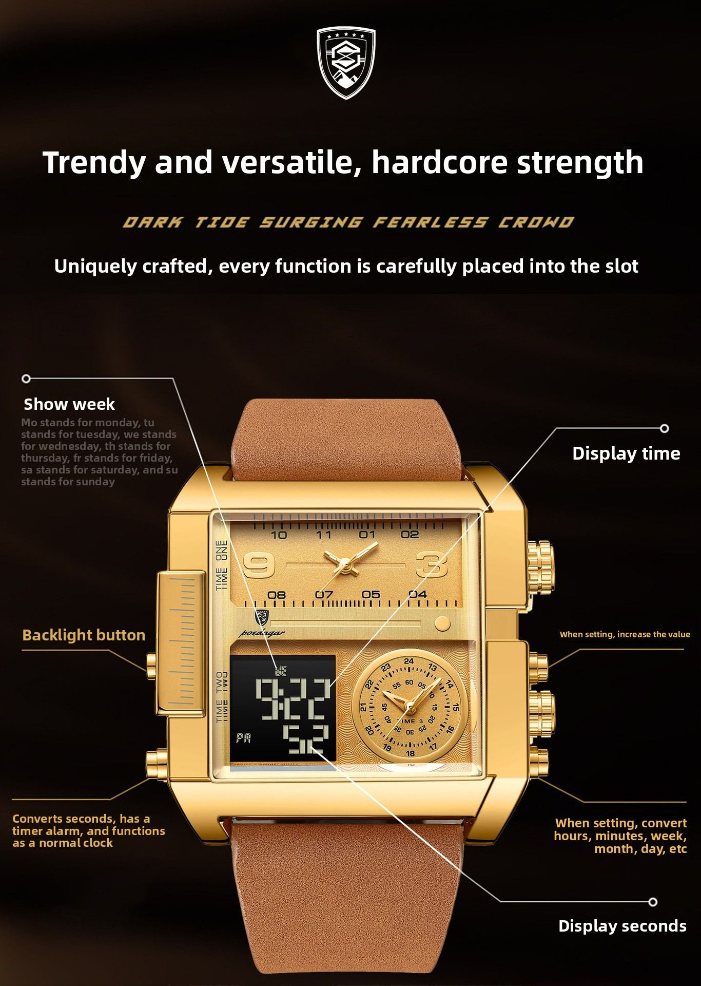 Stylish square digital watch with dual display, waterproof quartz wristwatch for men, featuring personalized waterproof luminous design.