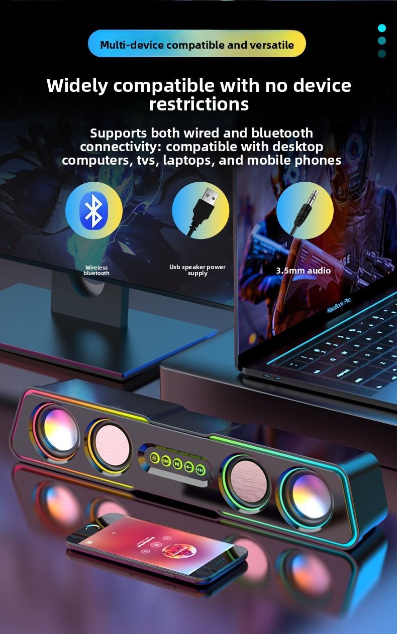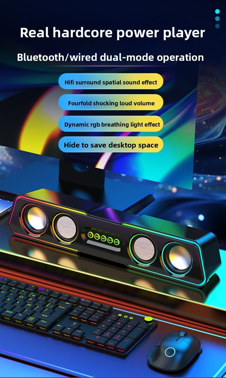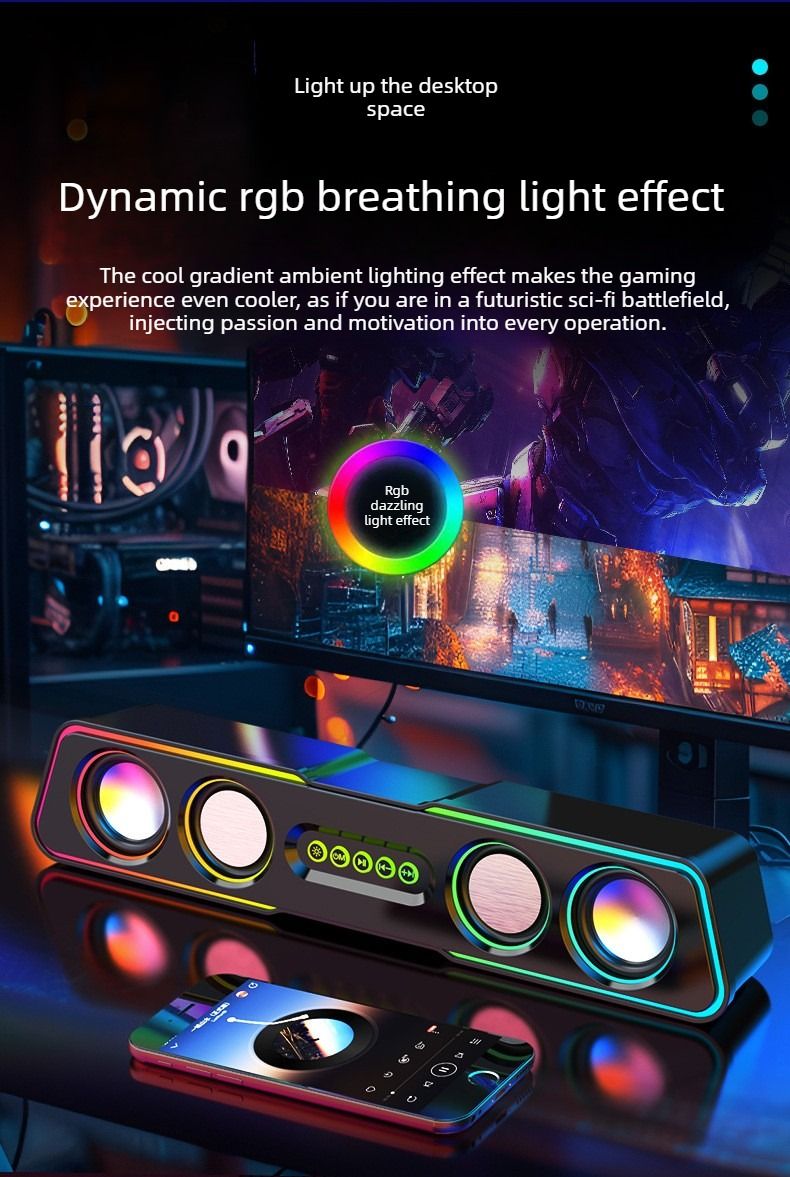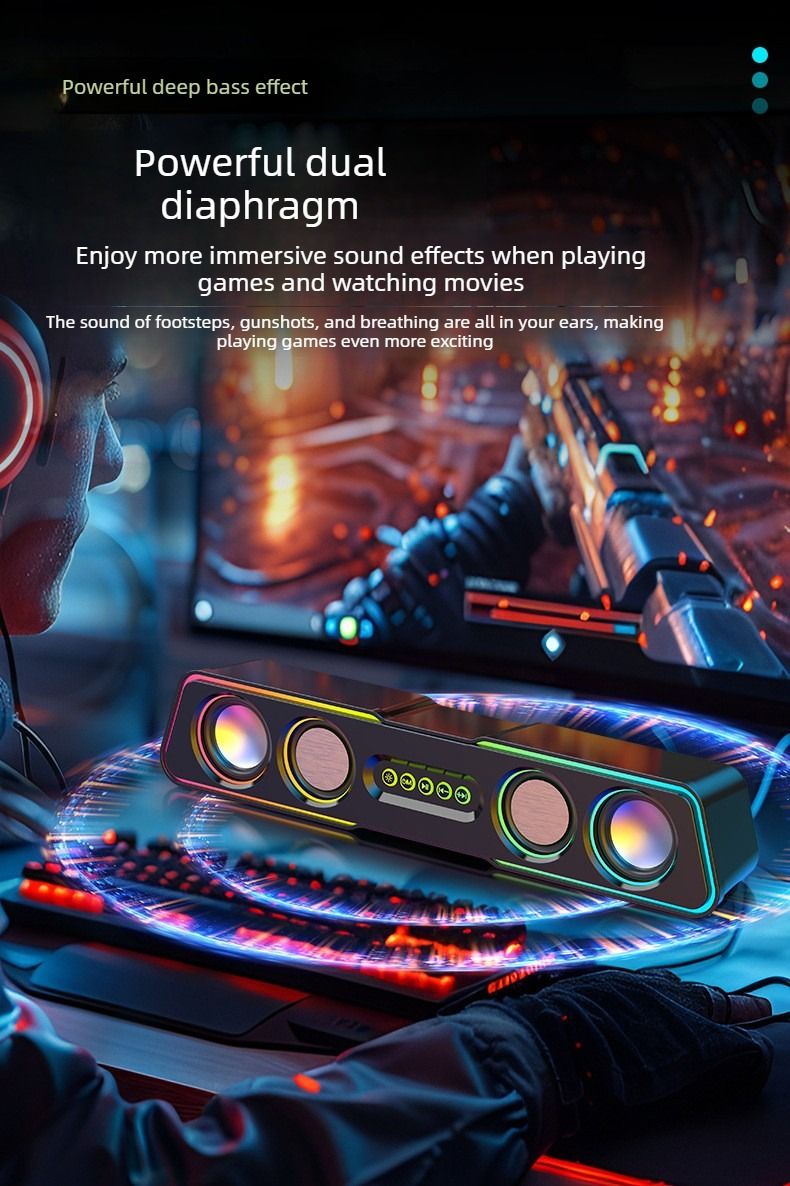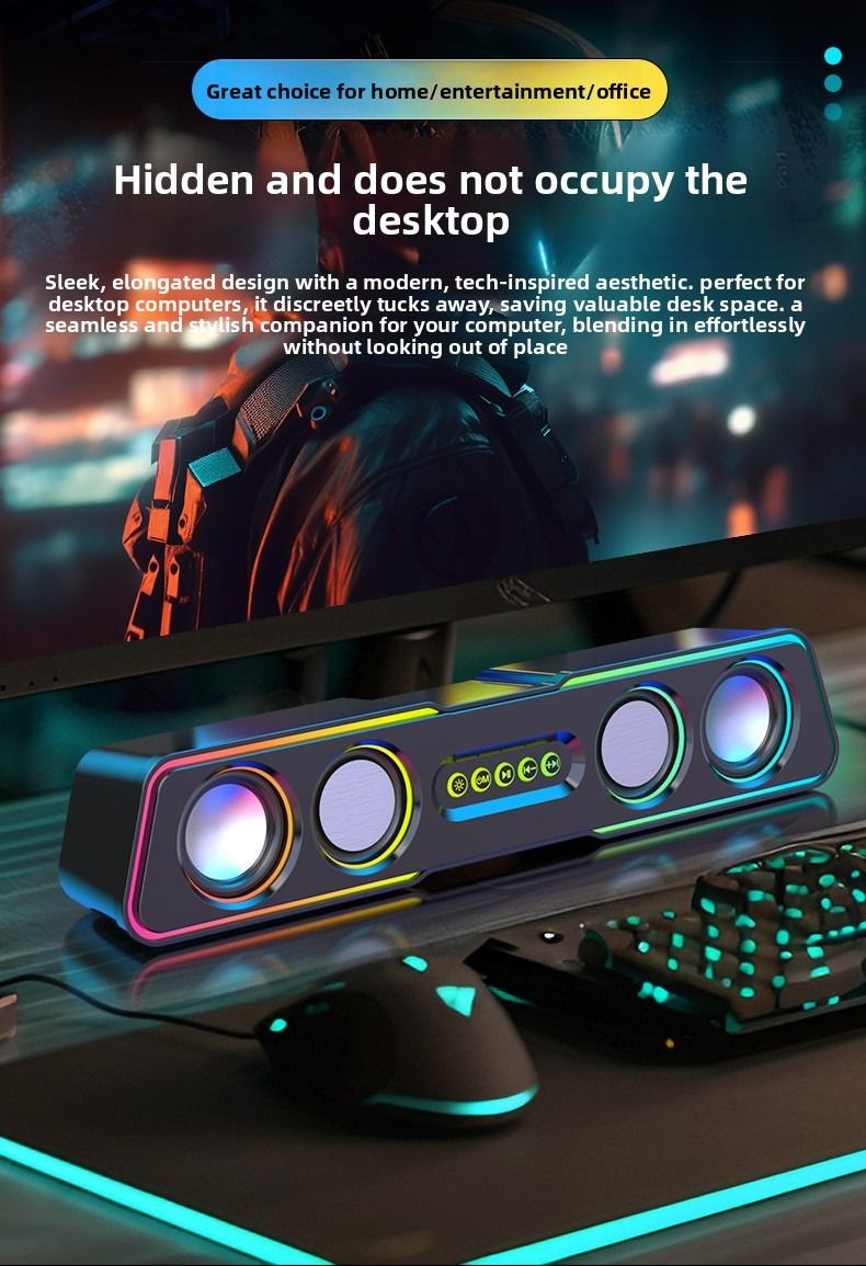 Top-of-the-line computer speakers with dazzling lighting effects, desktop and home use, mini subwoofer, wired.