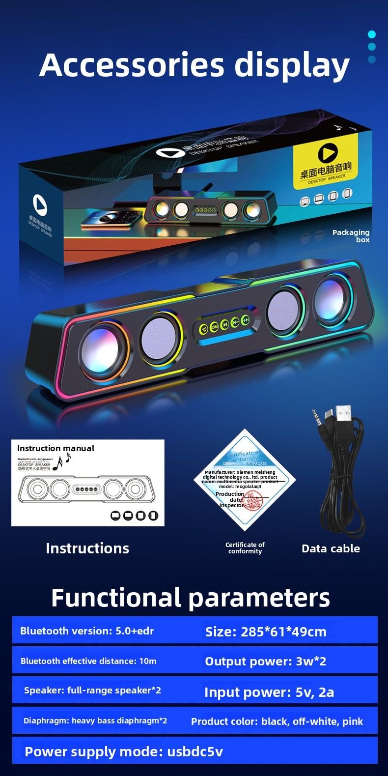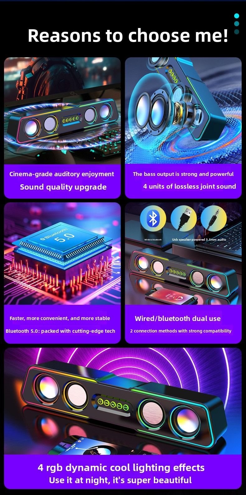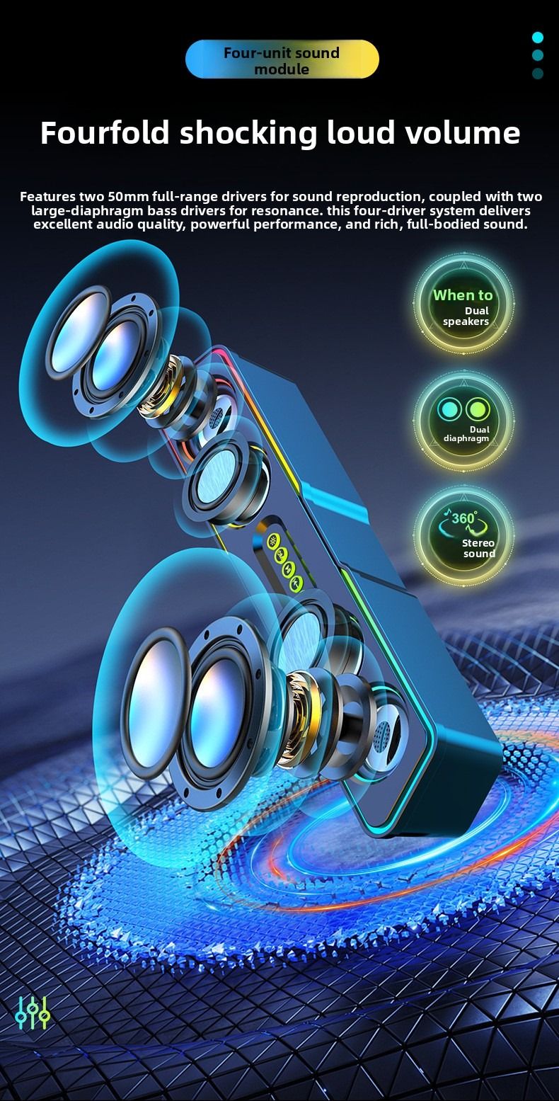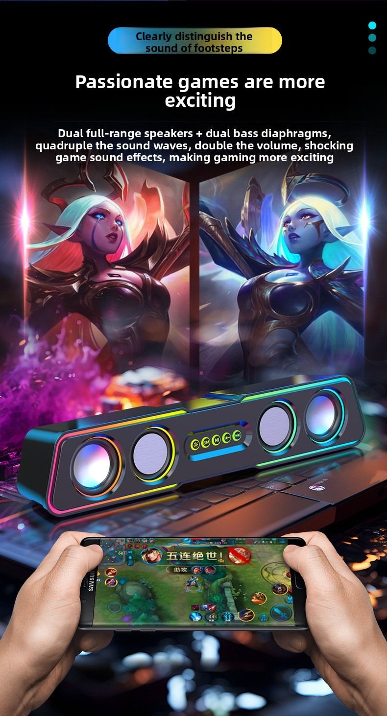 Top-of-the-line computer speakers with dazzling lighting effects, desktop and home use, mini subwoofer, wired.