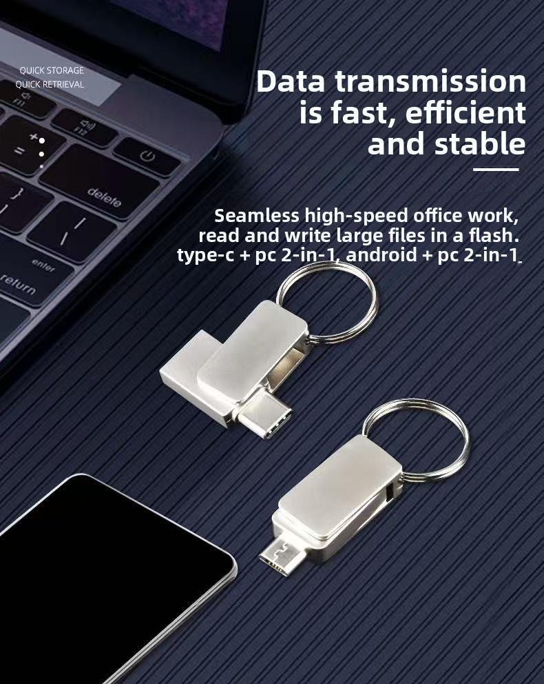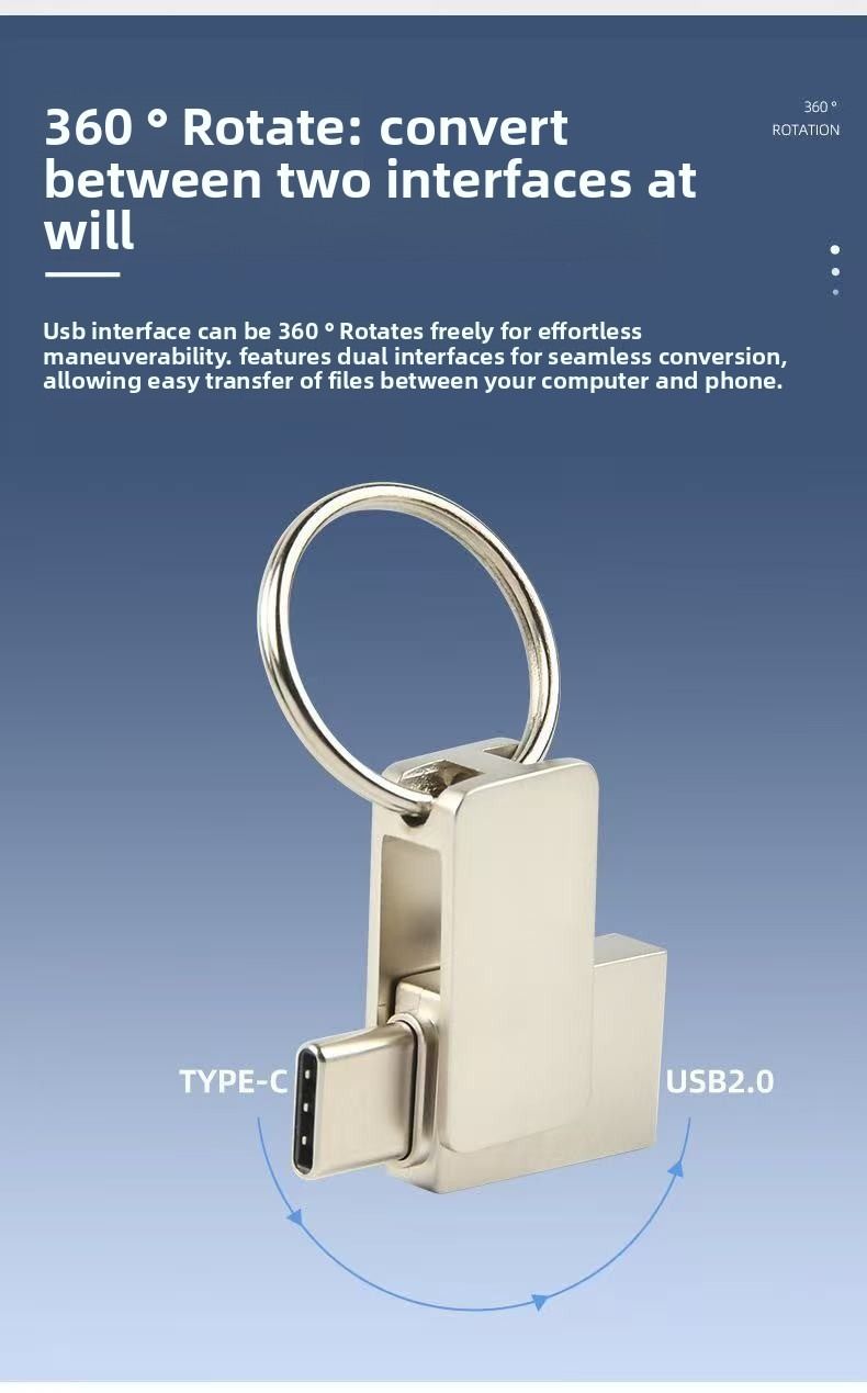 Type-C USB flash drive, 360-degree rotating, dual-use (phone-OTG-computer), 1TB-2TB large storage, cross-border USB flash drive 3.0.