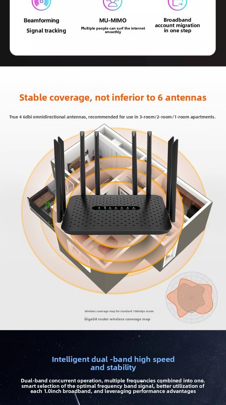 WiFi 6 Router Home WiFi High-Speed Wall Penetration Gigabit 5G Dual-Band